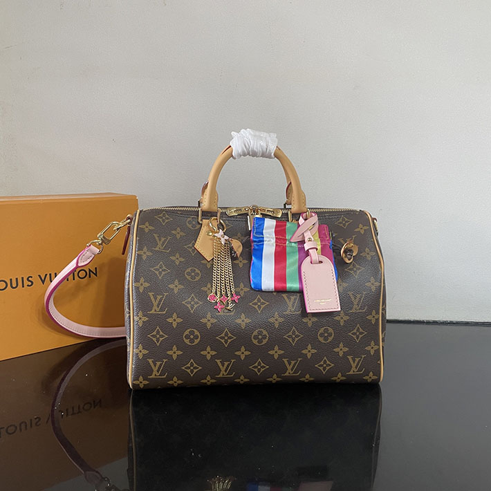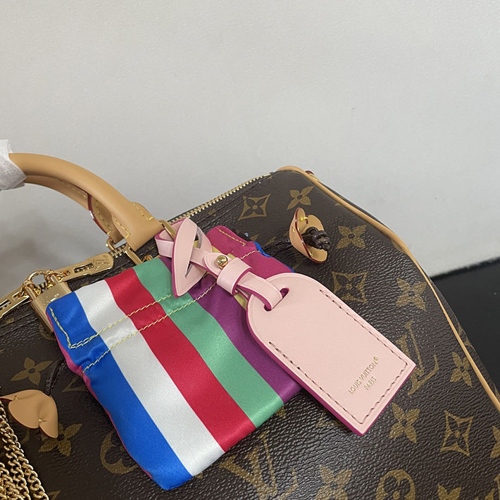 Designed exclusively for the Shinsegae store opening, this Speedy Soft Bandoulière 30 reimagines the iconic style, blending playfulness with traditional influences. It is crafted from signature Monogram canvas with a colorful leather strap, and is embelli