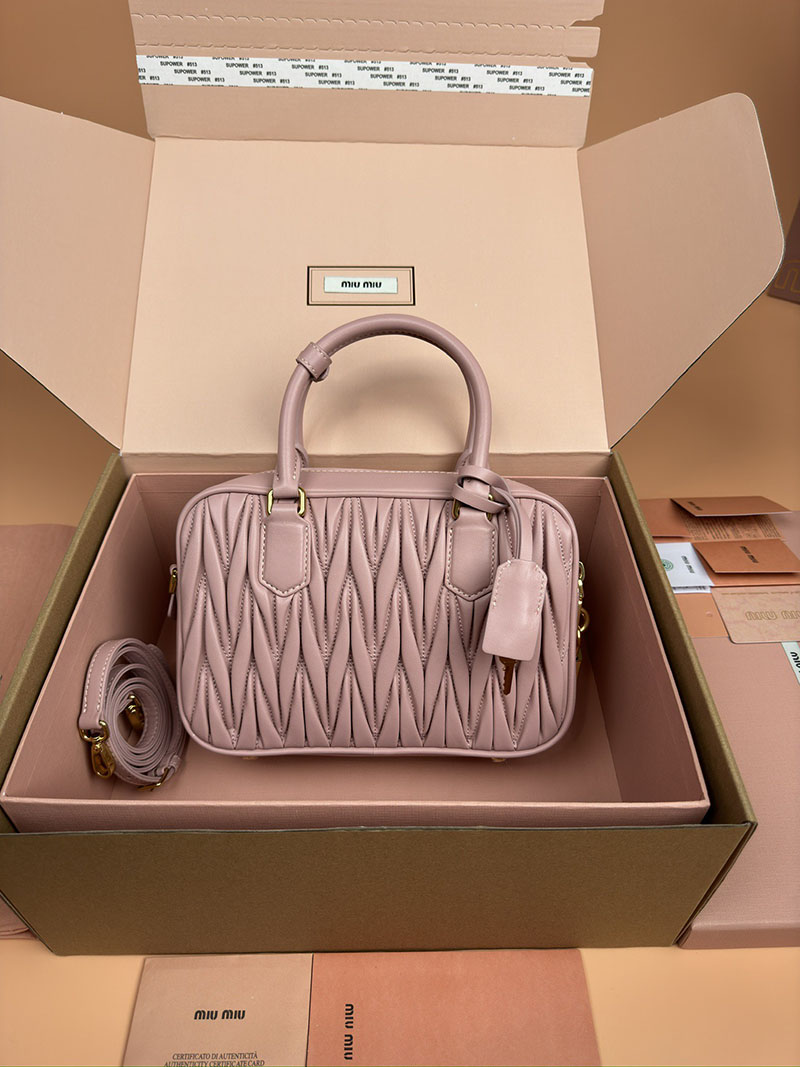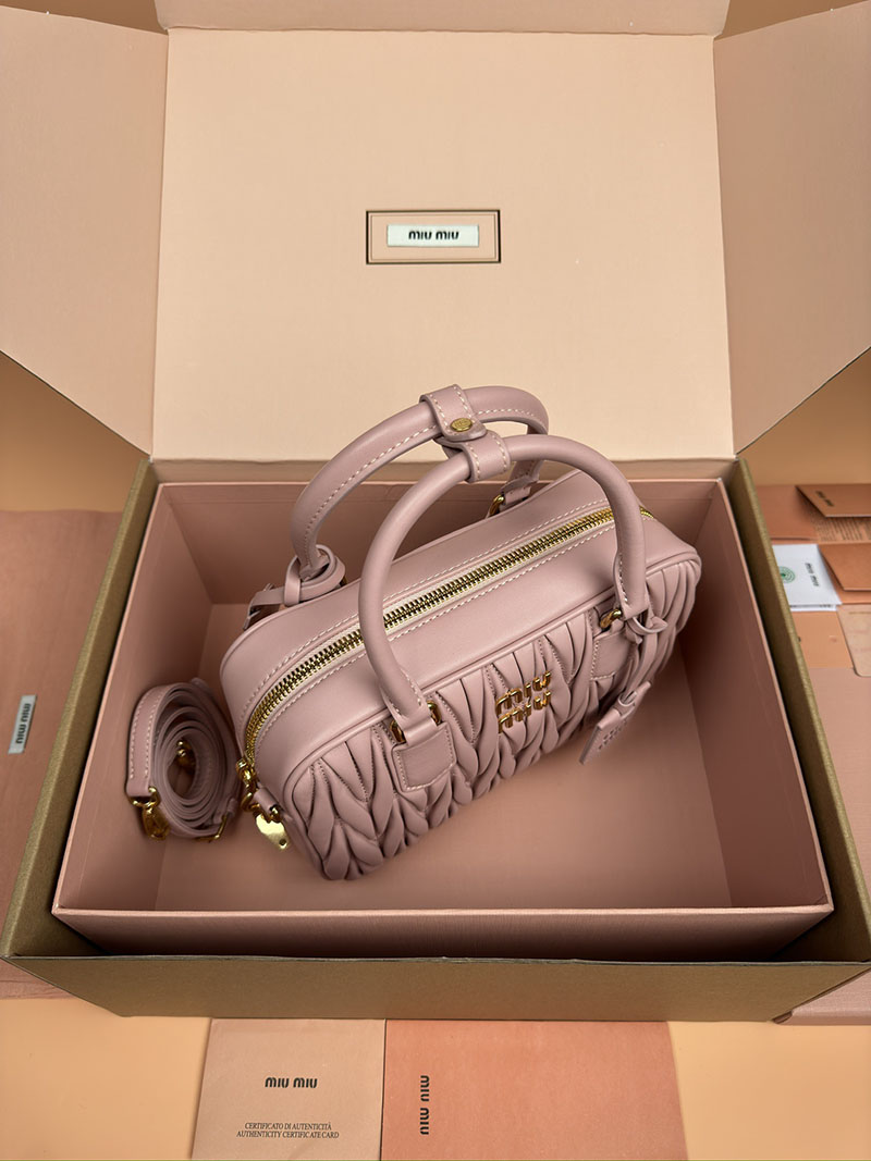 MiuMiu アルカディ マテラッセレザー バッグ ピンク 2515186 ゴールド金具 ミュウミュウ バッグ 人気