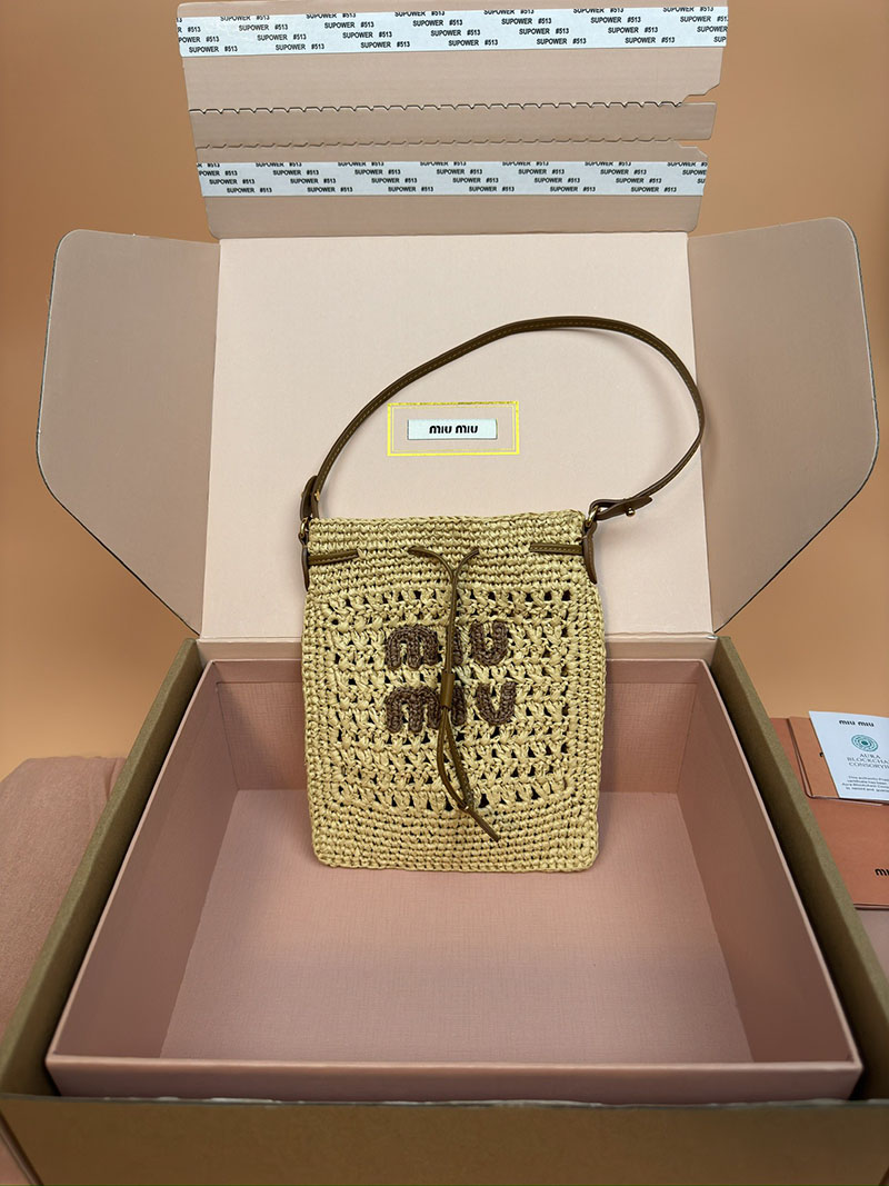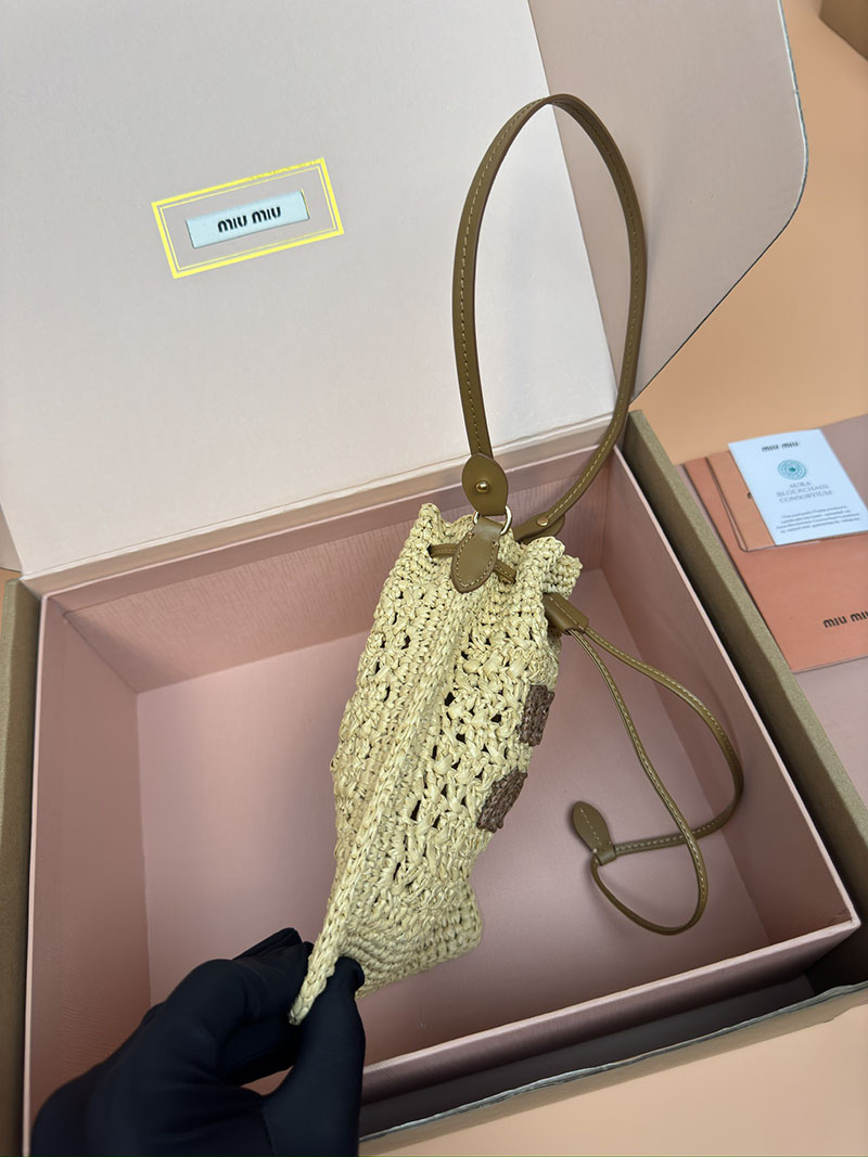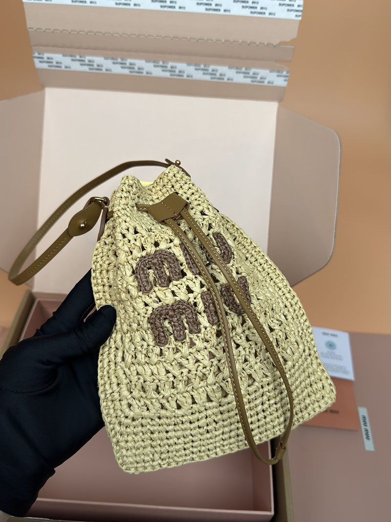 MiuMiu レザー バケットバッグ ベージュ 2515214 ゴールド金具 miumiu 安いプレゼント