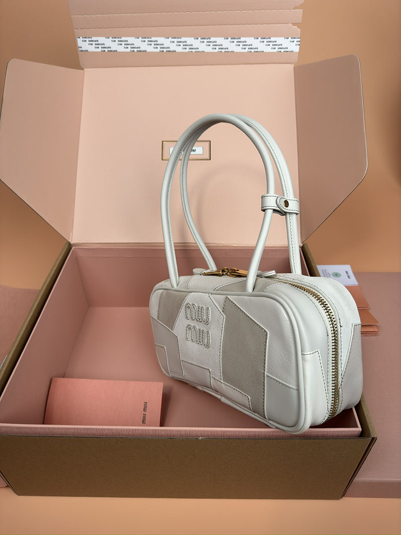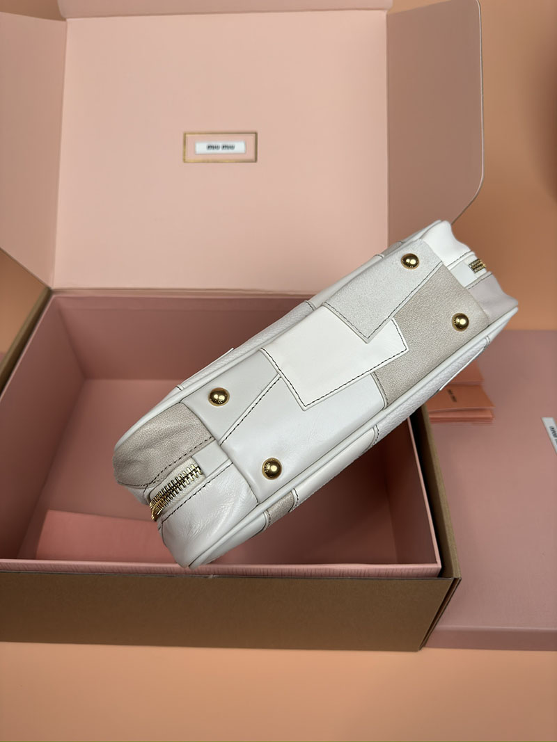 MiuMiu ボー ナプラックパテントレザー バッグ ホワイト 2515228 ゴールド金具 韓国バッグ ブランド 安い