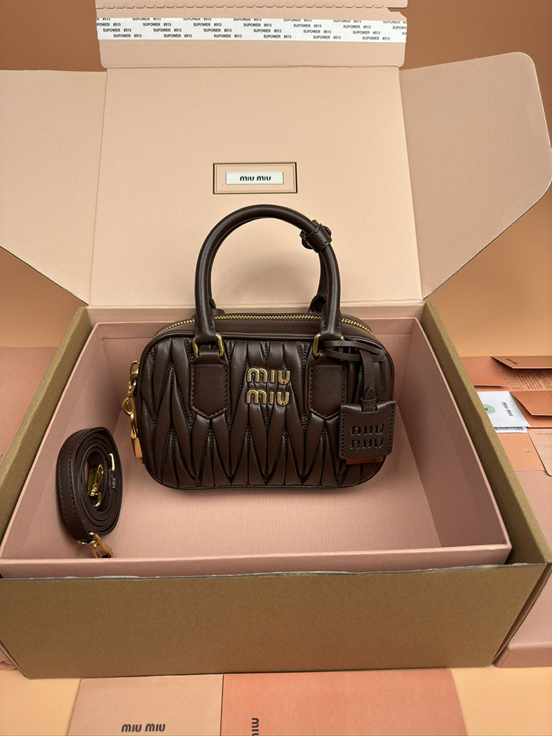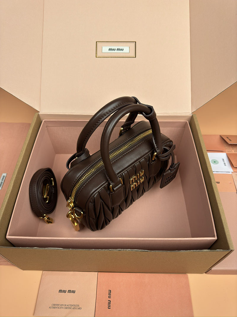 MiuMiu アルカディ マテラッセレザー バッグ ブラウン 5BB123_N88_F0NBL_V_YON ゴールド金具 ミュウミュウ 持ってる 女