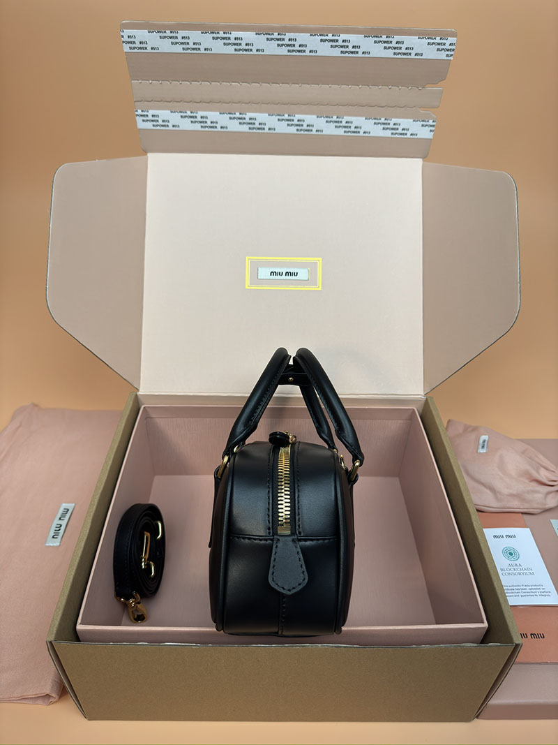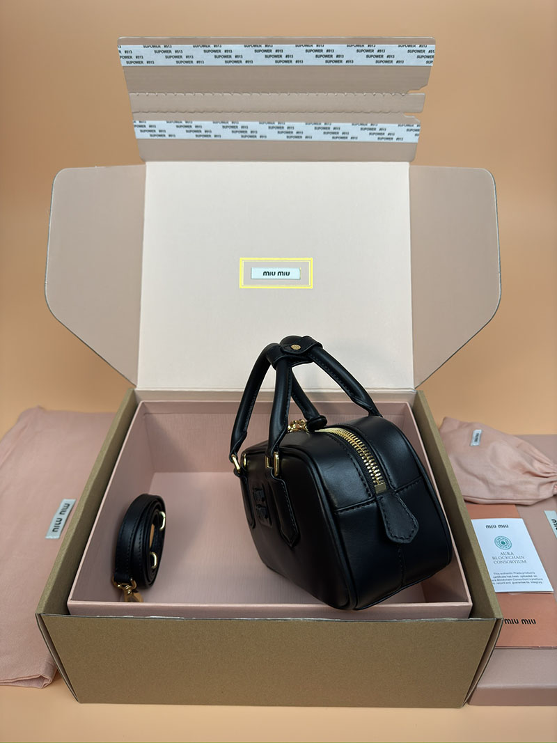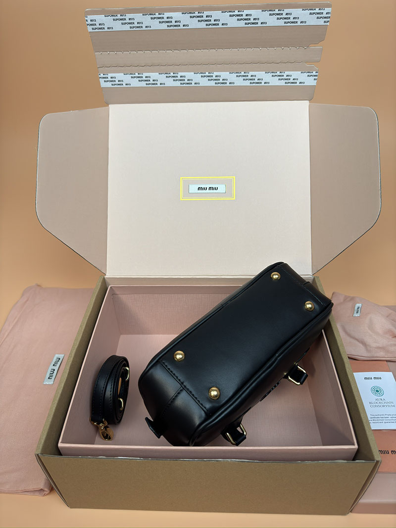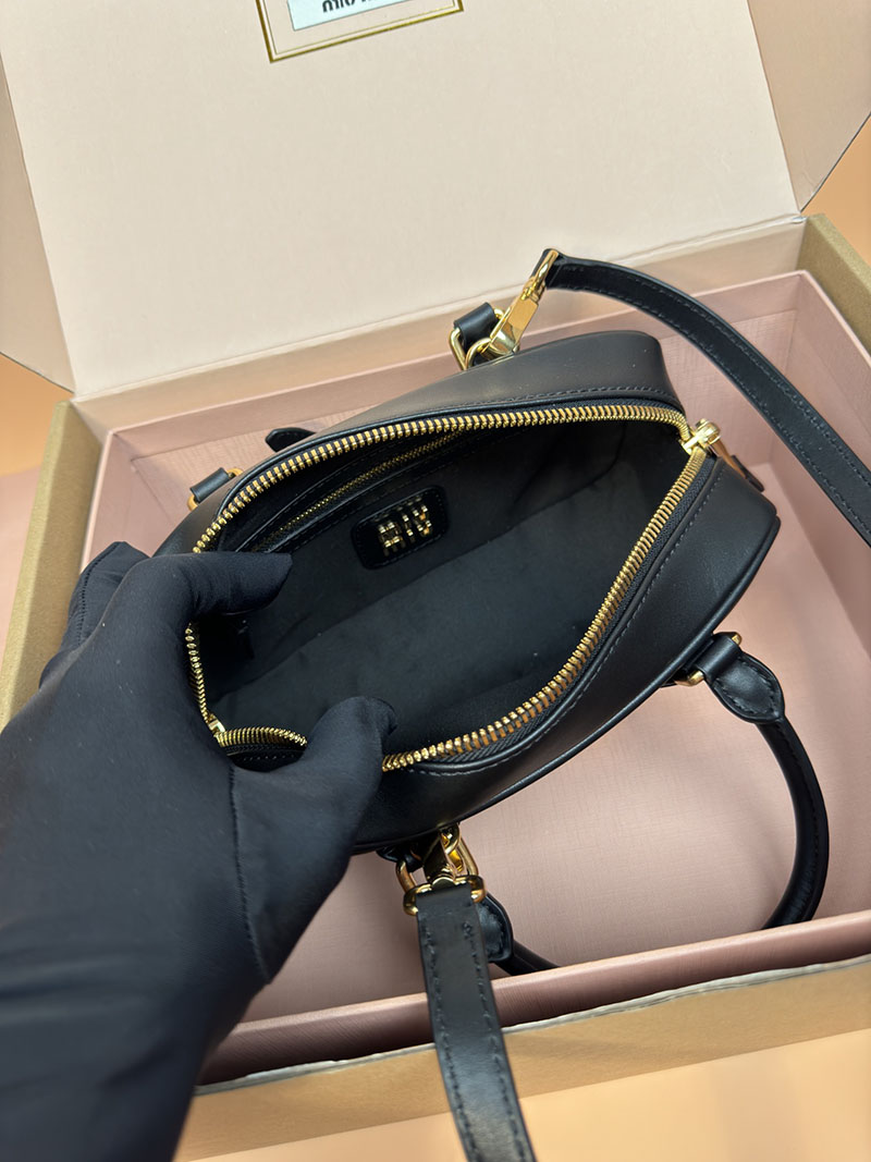 MiuMiu アルカディ レザー バッグ ブラック 5BB142_2CR3_F0002_V_OON ゴールド金具 大人可愛いバッグ40代