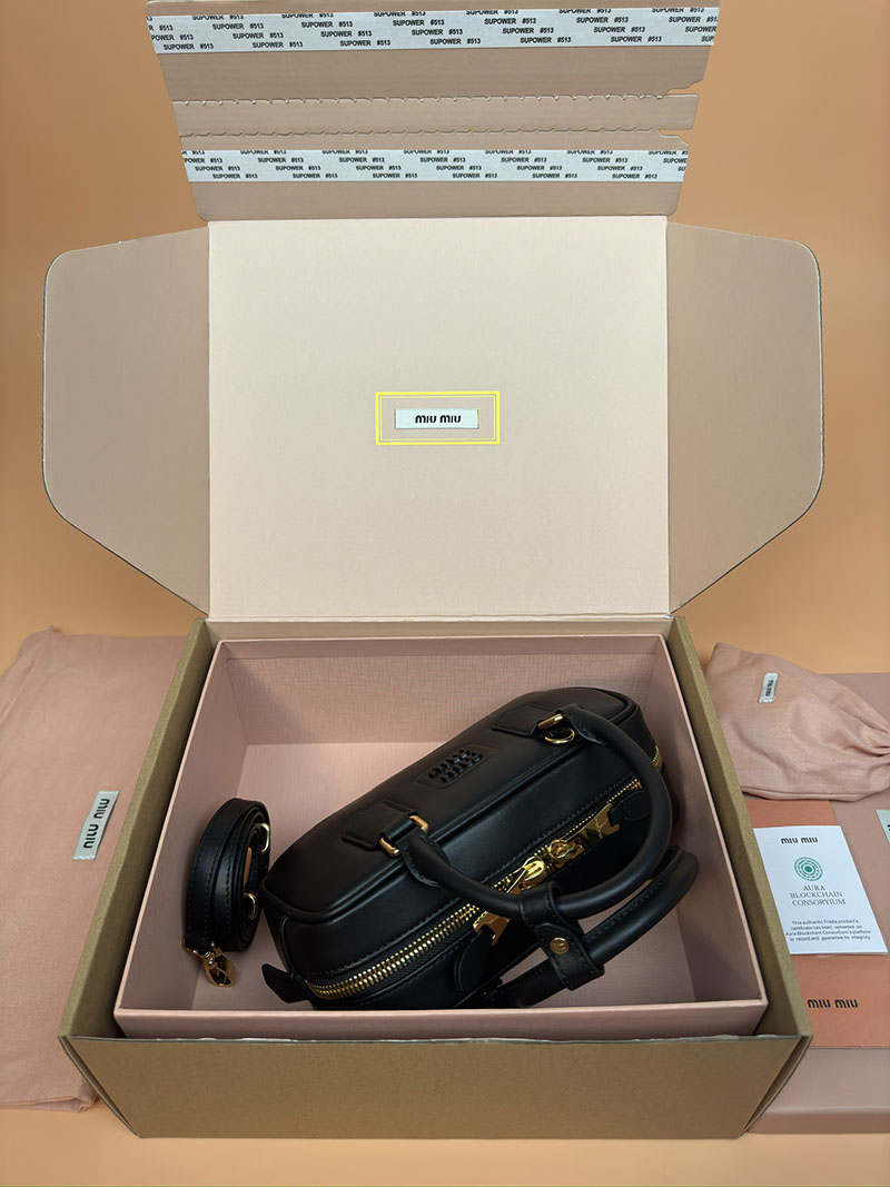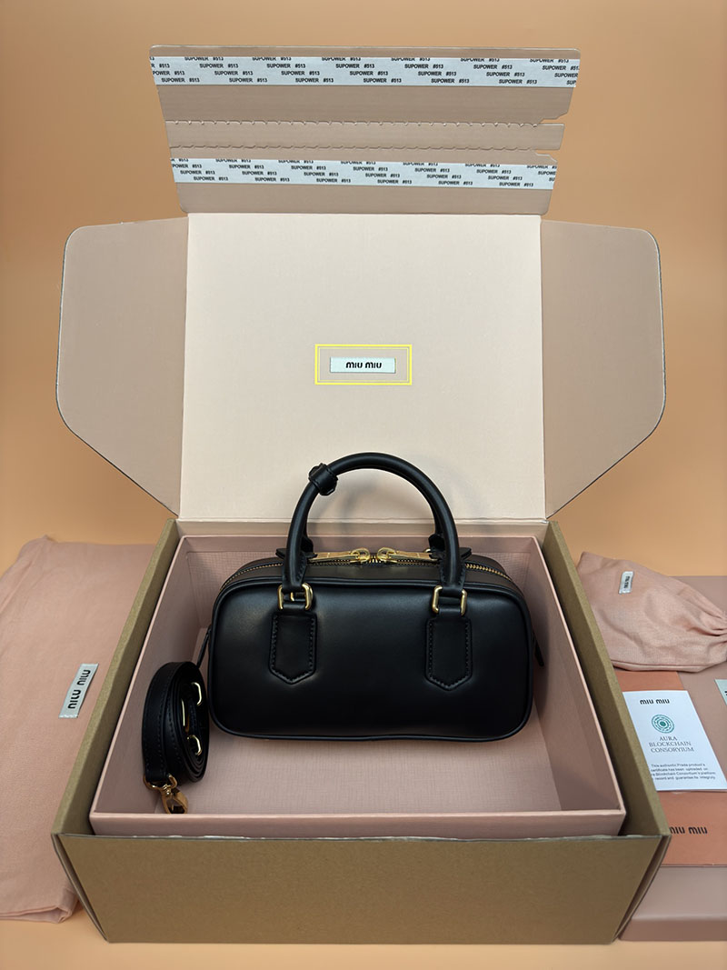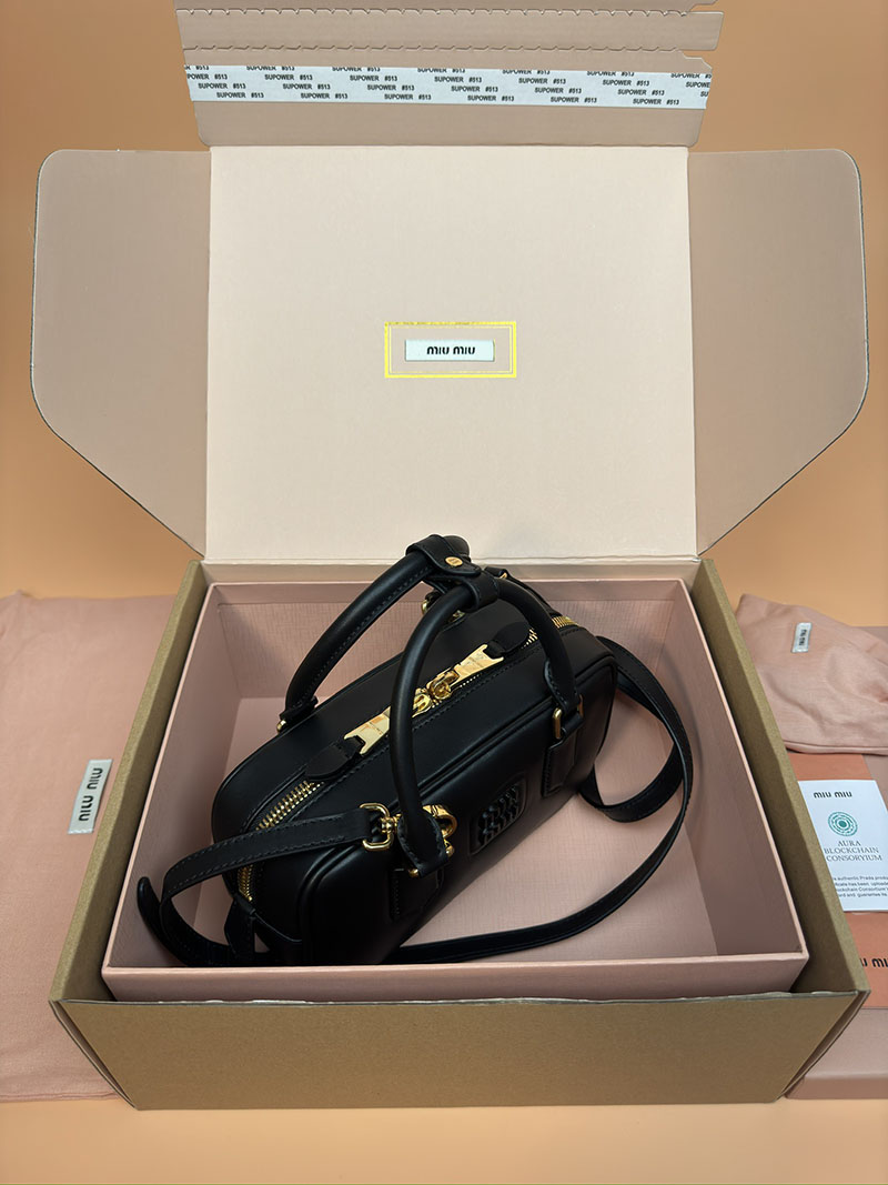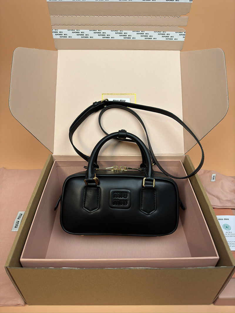 MiuMiu アルカディ レザー バッグ ブラック 5BB142_2CR3_F0002_V_OON ゴールド金具 大人可愛いバッグ40代