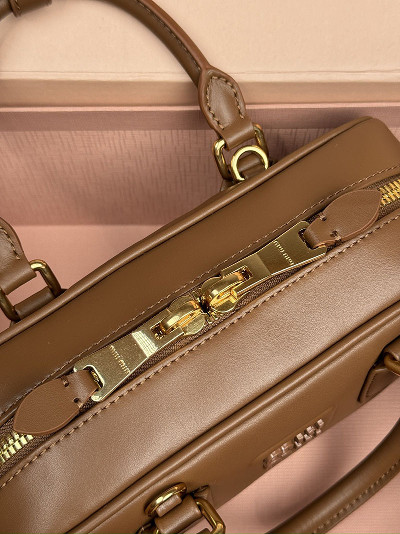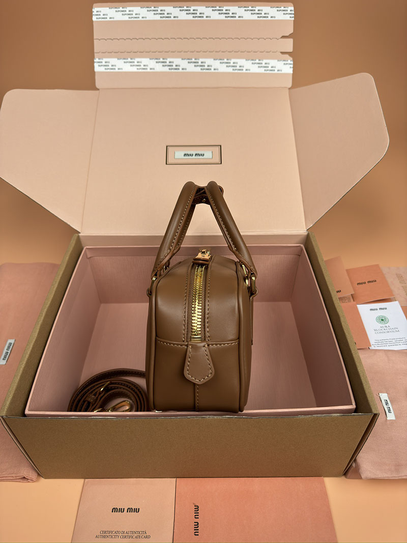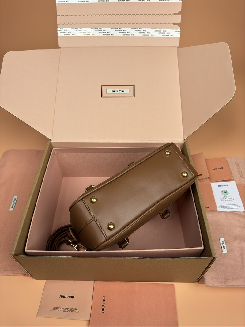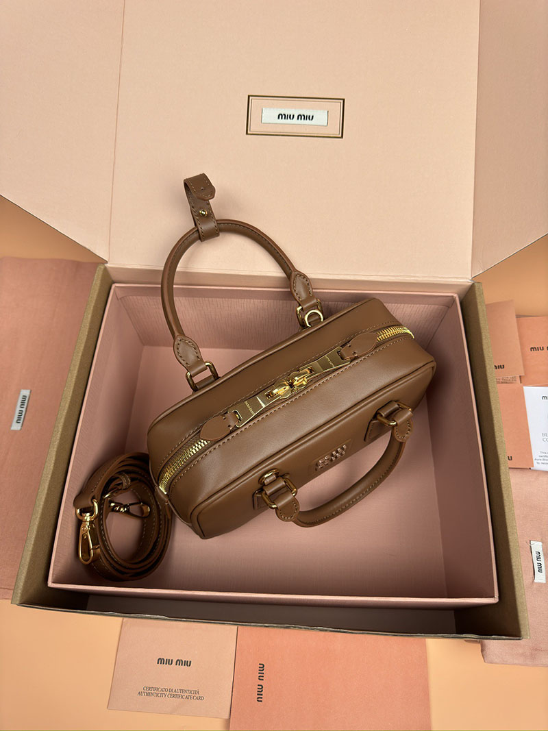 MiuMiu アルカディ レザー バッグ ブラウン 5BB142_2CR3_F0316_V_OON ゴールド金具 買って よかった ハイブランドバッグ