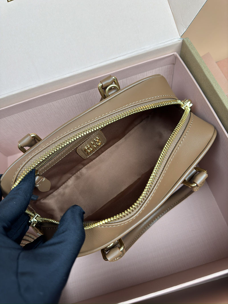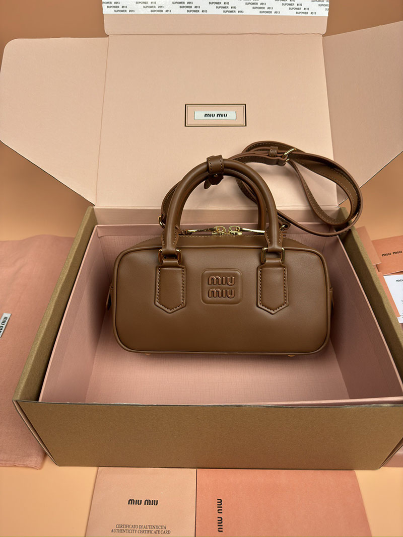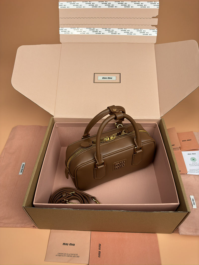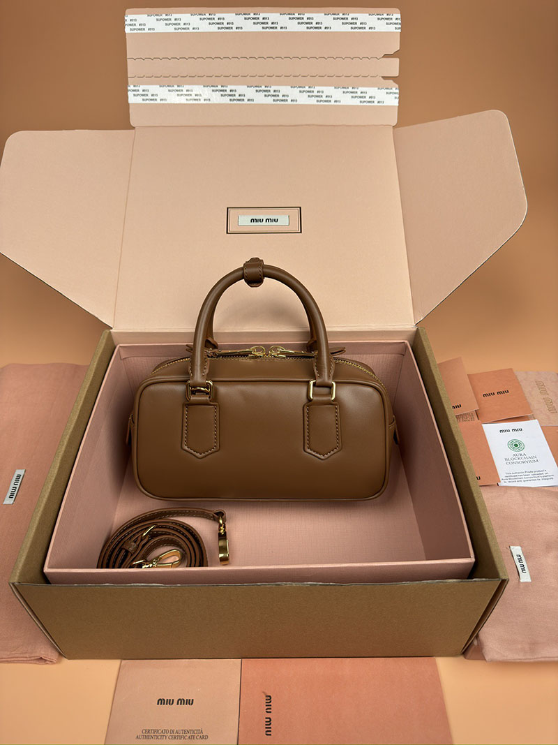 MiuMiu アルカディ レザー バッグ ブラウン 5BB142_2CR3_F0316_V_OON ゴールド金具 買って よかった ハイブランドバッグ