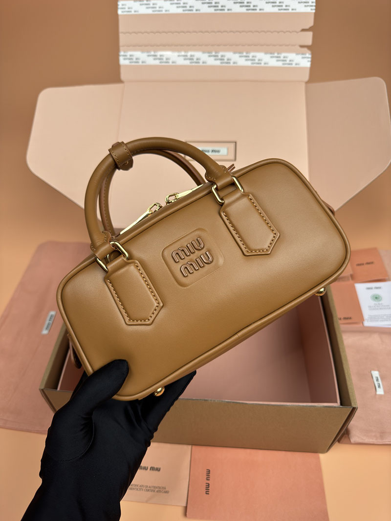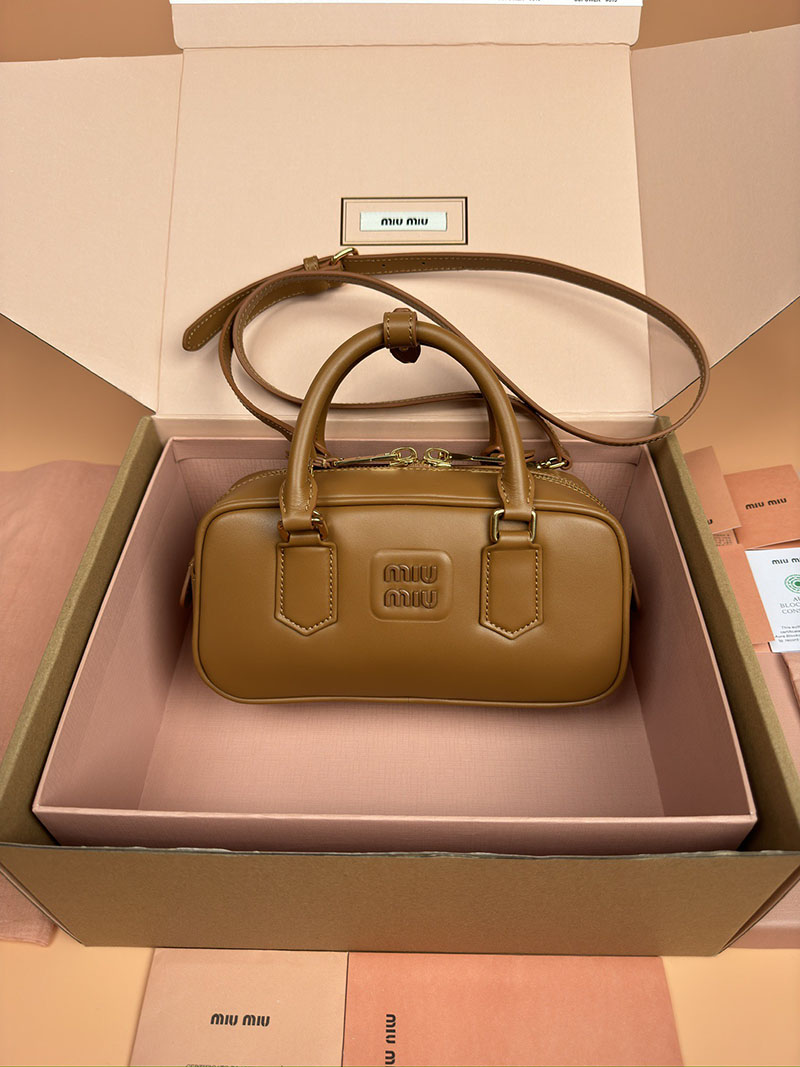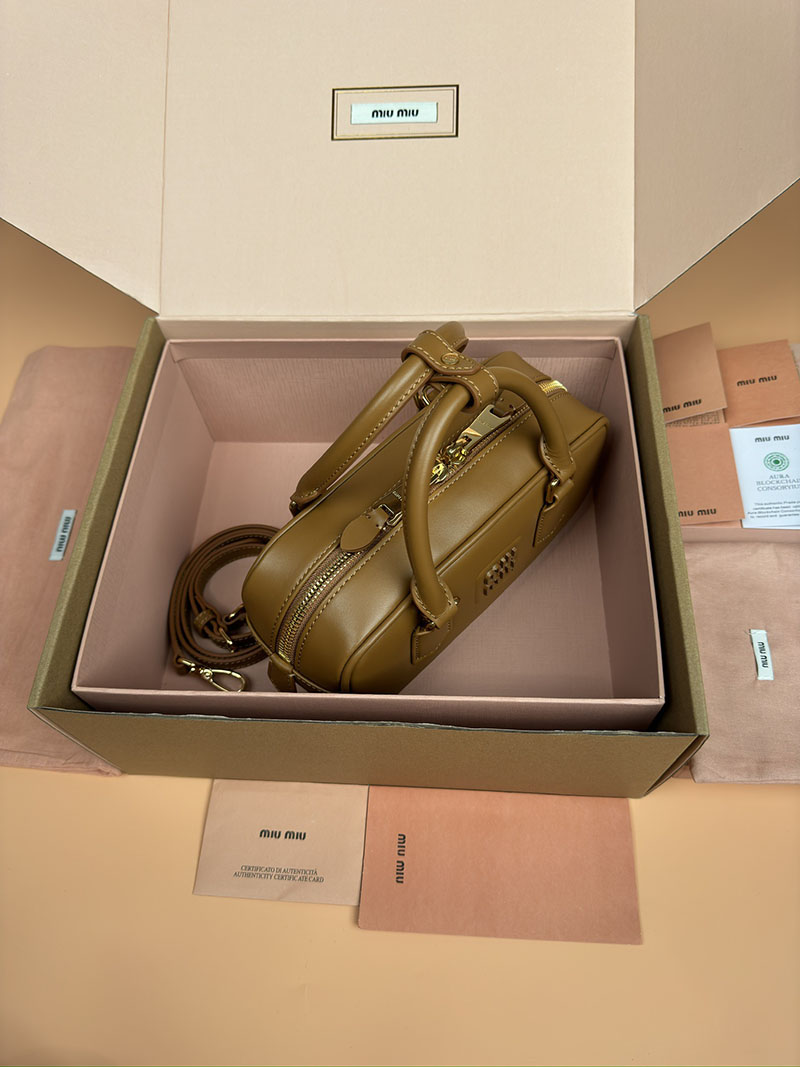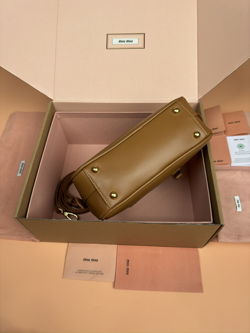 MiuMiu アルカディ レザー バッグ キャメル 5BB142_2CR3_F098L_V_OON ゴールド金具 買って よかった ハイブランドバッグ