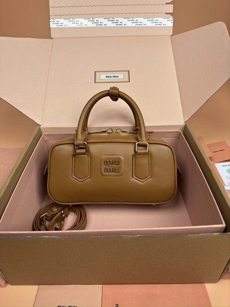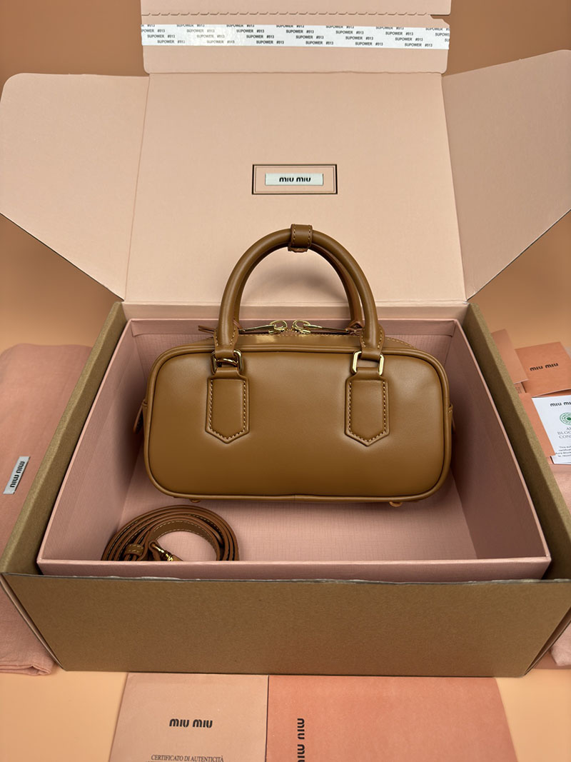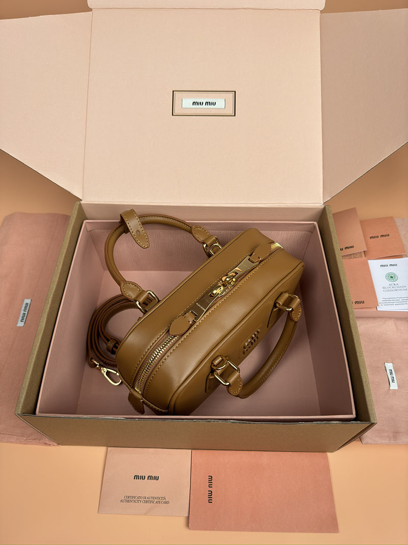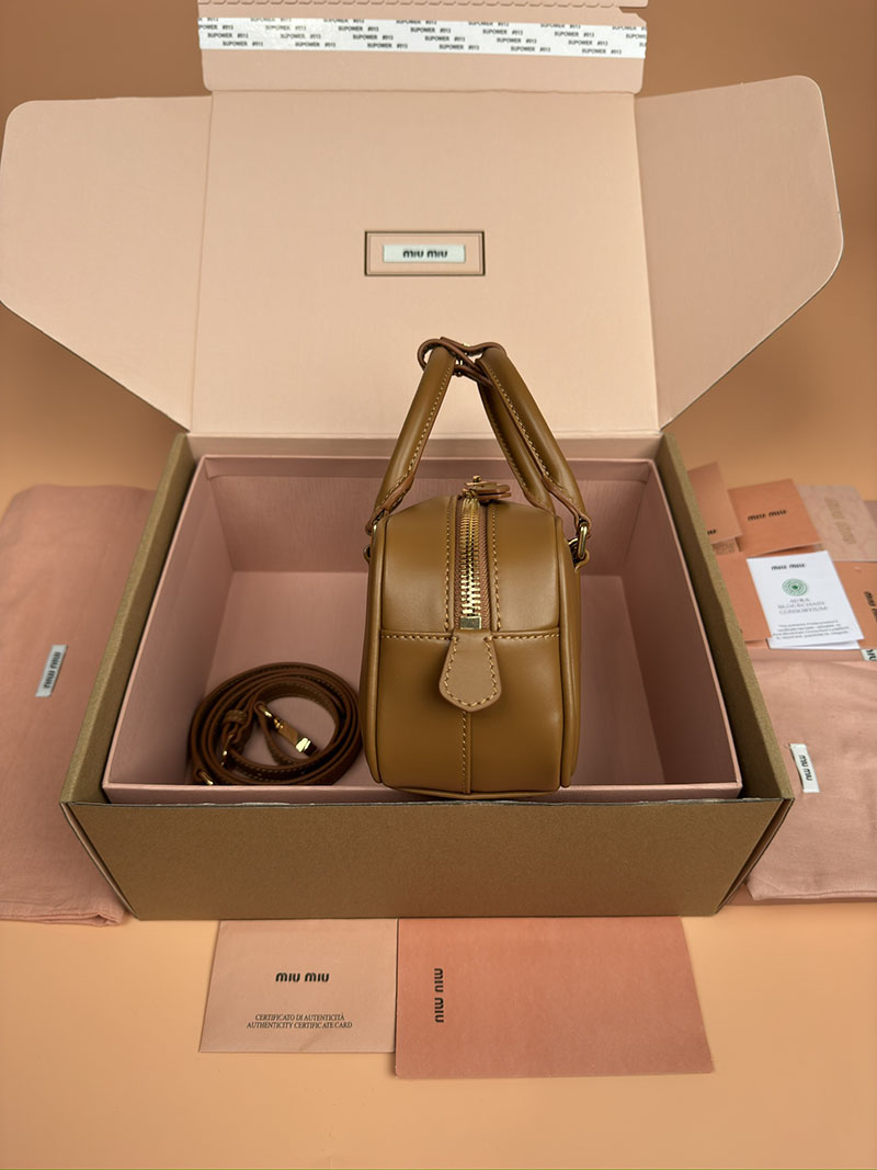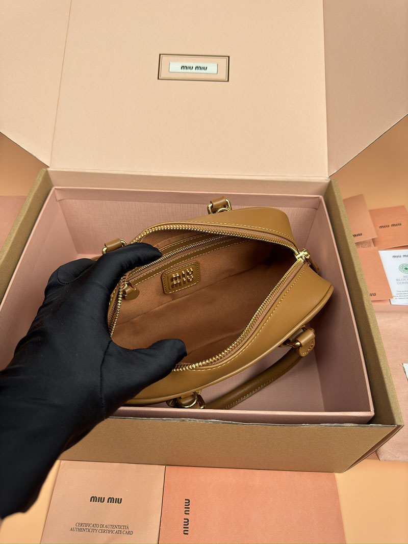 MiuMiu アルカディ レザー バッグ キャメル 5BB142_2CR3_F098L_V_OON ゴールド金具 買って よかった ハイブランドバッグ