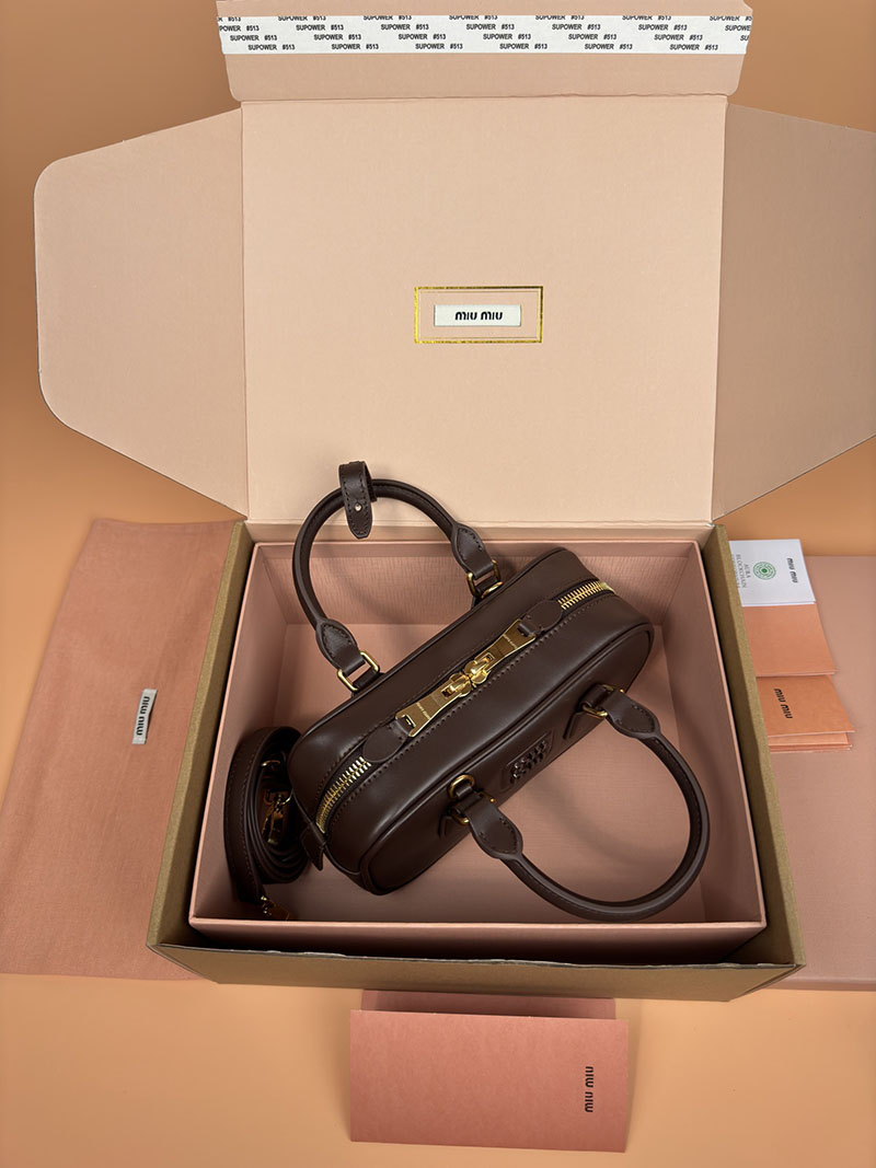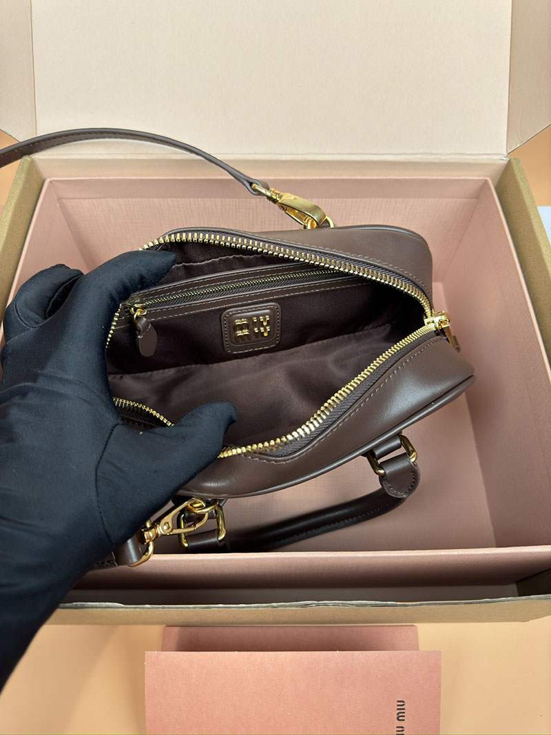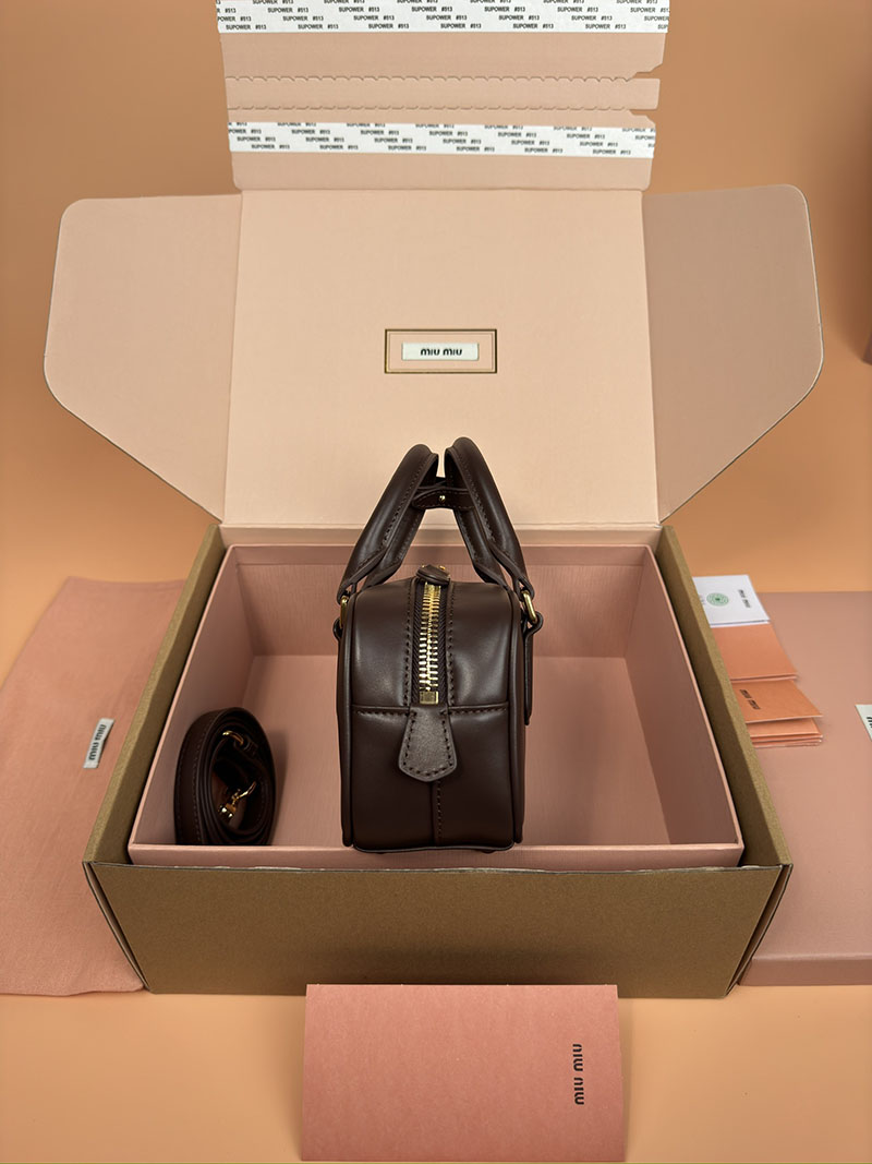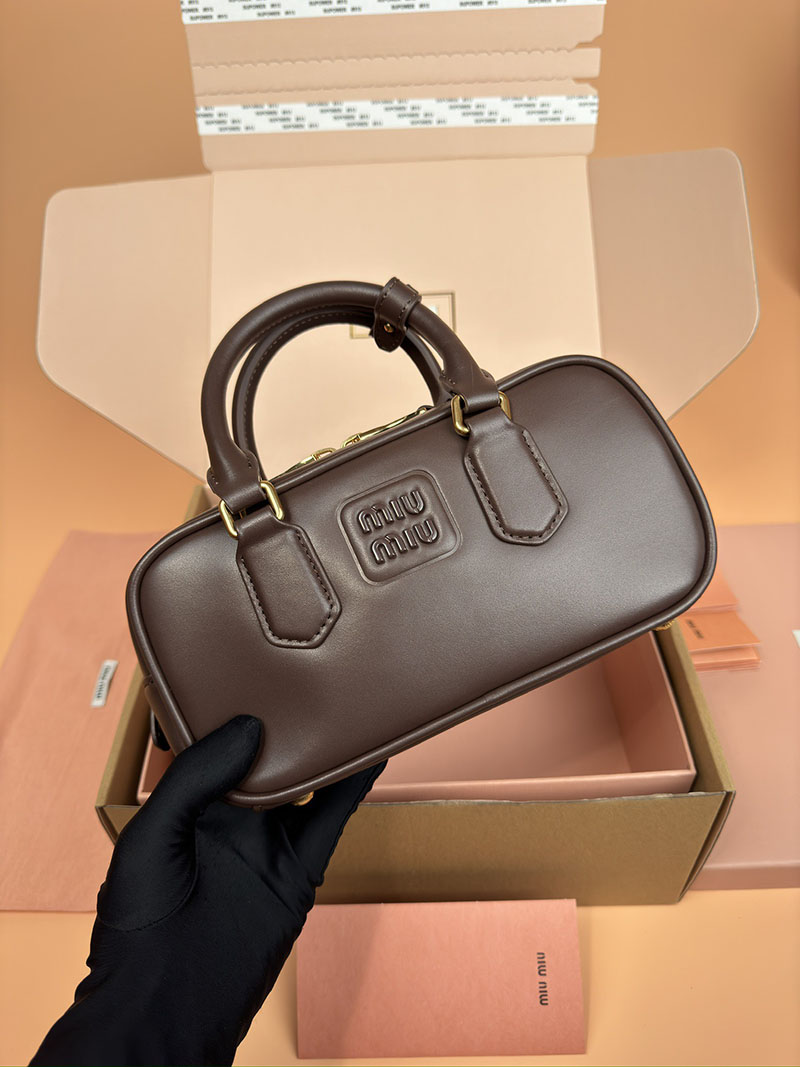 MiuMiu アルカディ レザー バッグ ブラウン 5BB142_2CR3_F0NBL_V_OON ゴールド金具 買って よかった ハイブランドバッグ