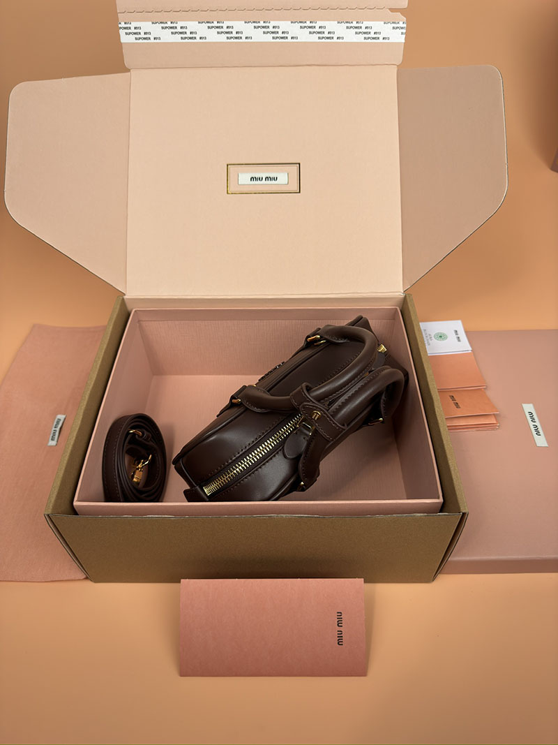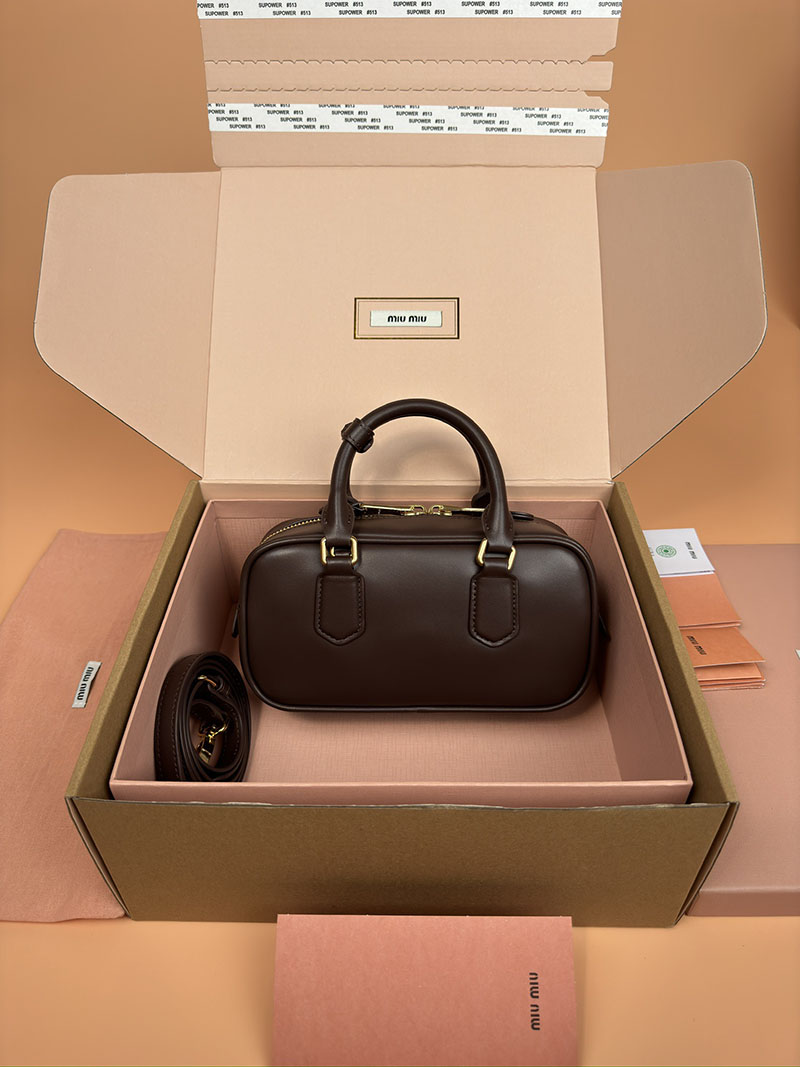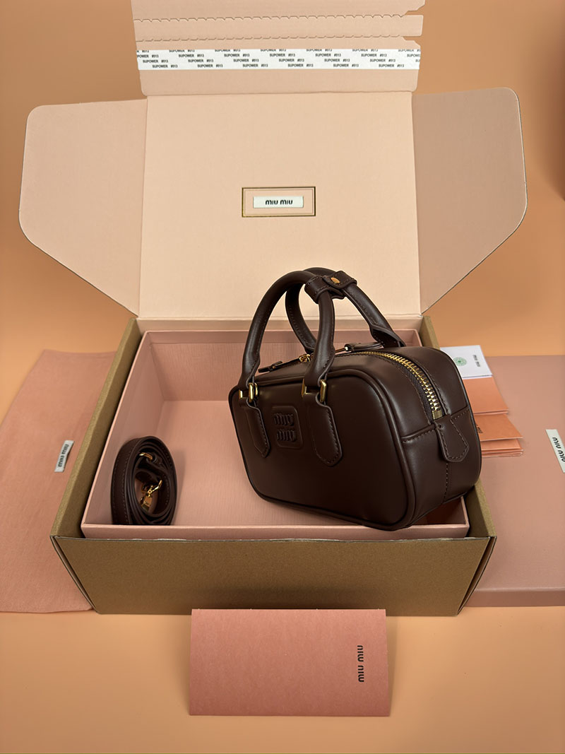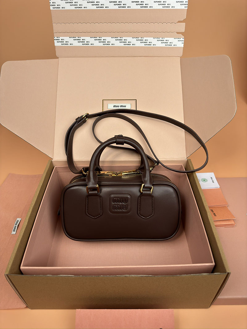 MiuMiu アルカディ レザー バッグ ブラウン 5BB142_2CR3_F0NBL_V_OON ゴールド金具 買って よかった ハイブランドバッグ