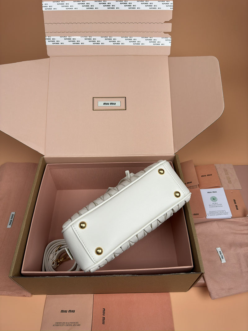 MiuMiu アルカディ マテラッセレザー バッグ ホワイト 5BB142_AN88_F0009_V_OON ゴールド金具 レディースバッグ 人気ブランド