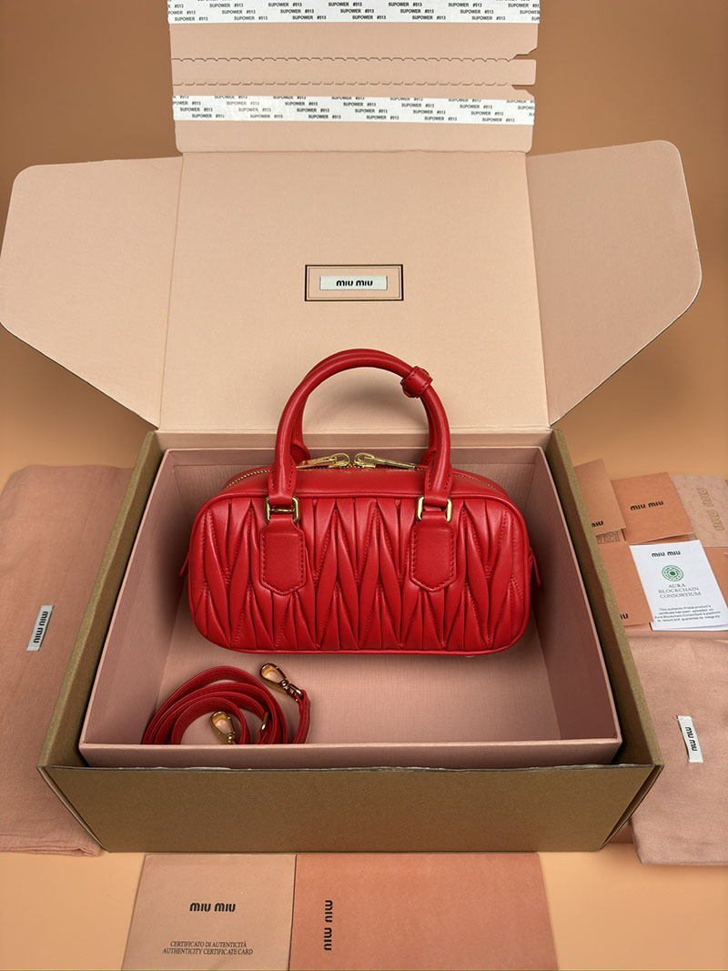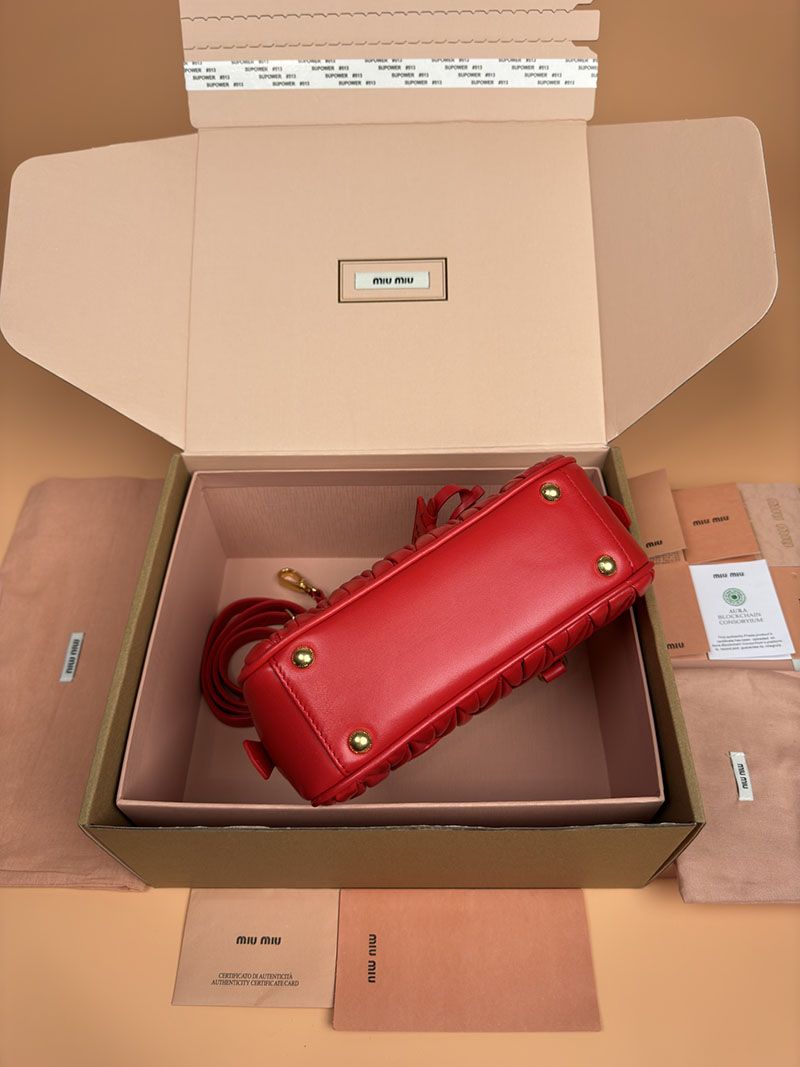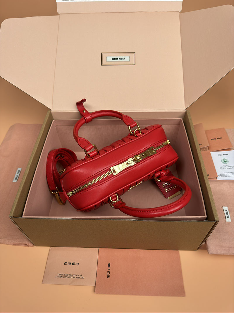 MiuMiu アルカディ マテラッセレザー バッグ レッド 5BB142_AN88_F0011_V_OON ゴールド金具 レディースバッグ 人気ブランド