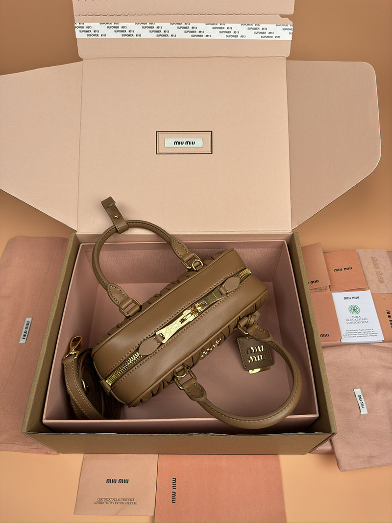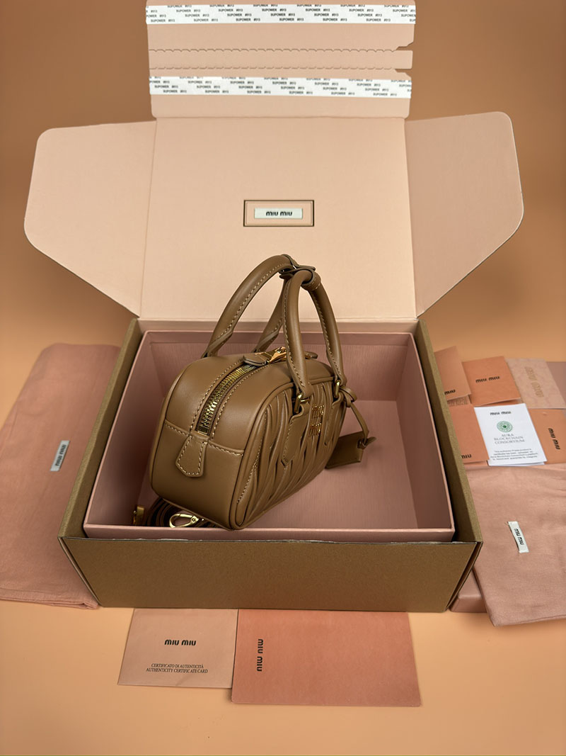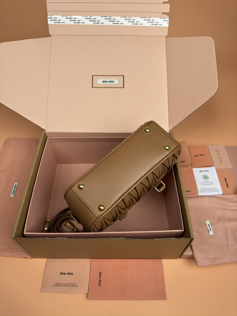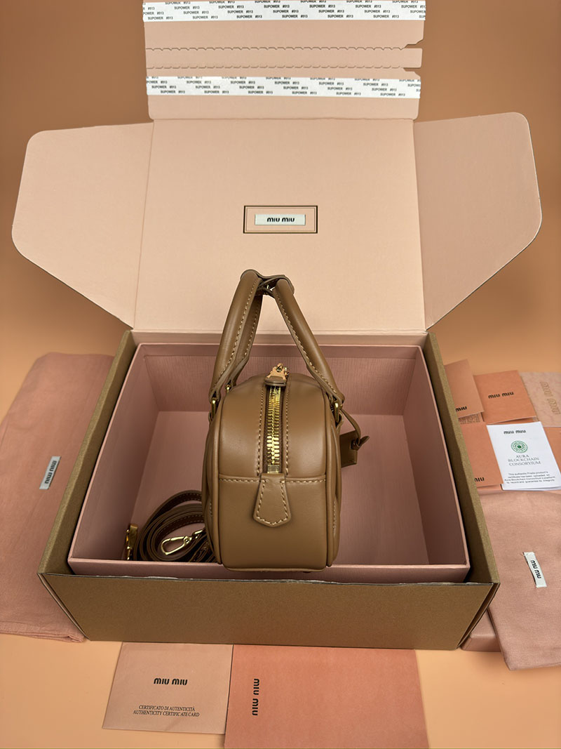 MiuMiu アルカディ マテラッセレザー バッグ コニャック 5BB142_AN88_F0046_V_OON ゴールド金具 レディースバッグ 人気ブランド