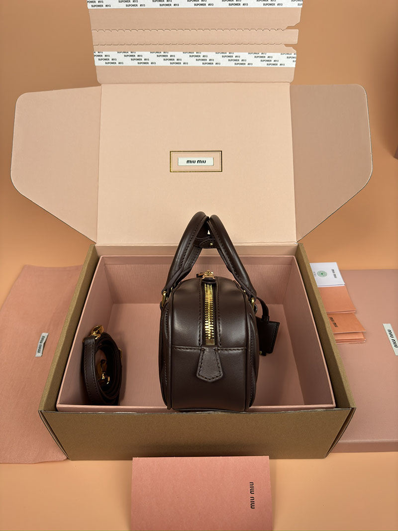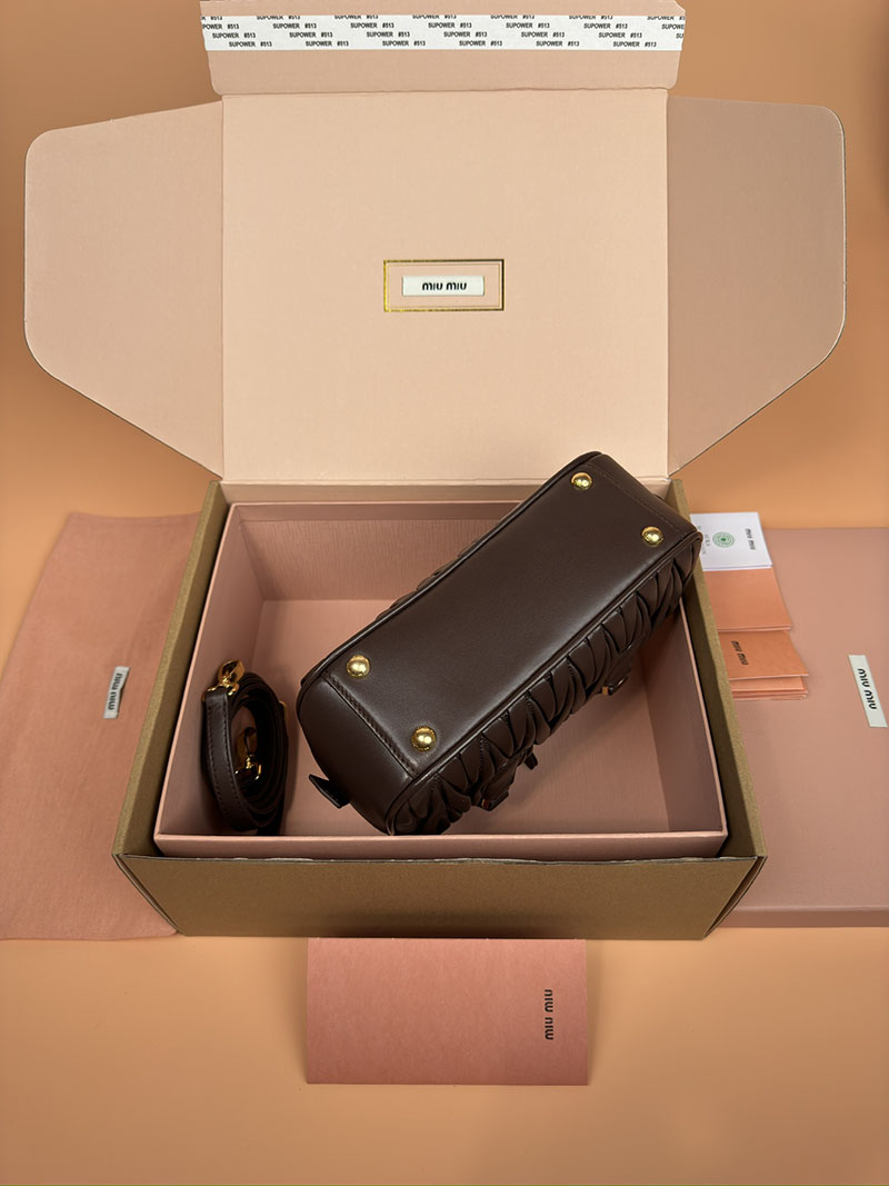 MiuMiu アルカディ マテラッセレザー バッグ ブラウン 5BB142_AN88_F0NBL_V_OON ゴールド金具 レディースバッグ 人気ブランド