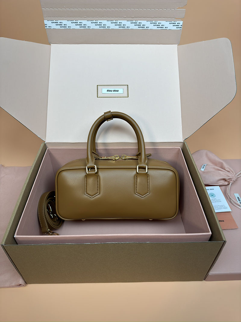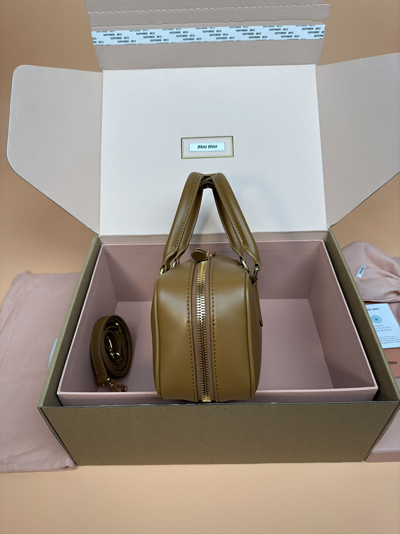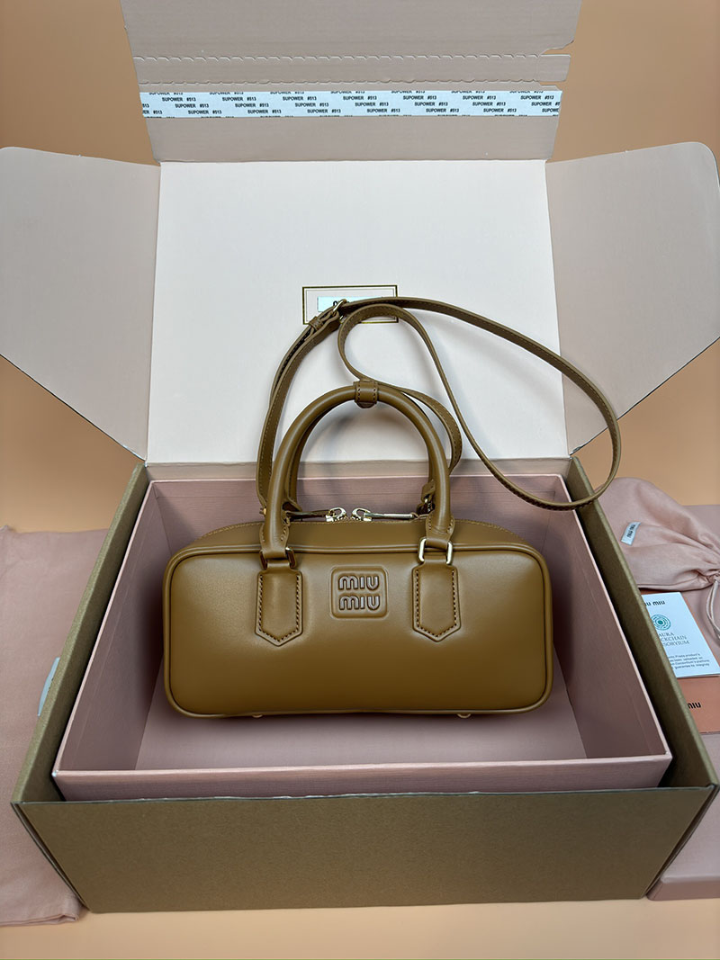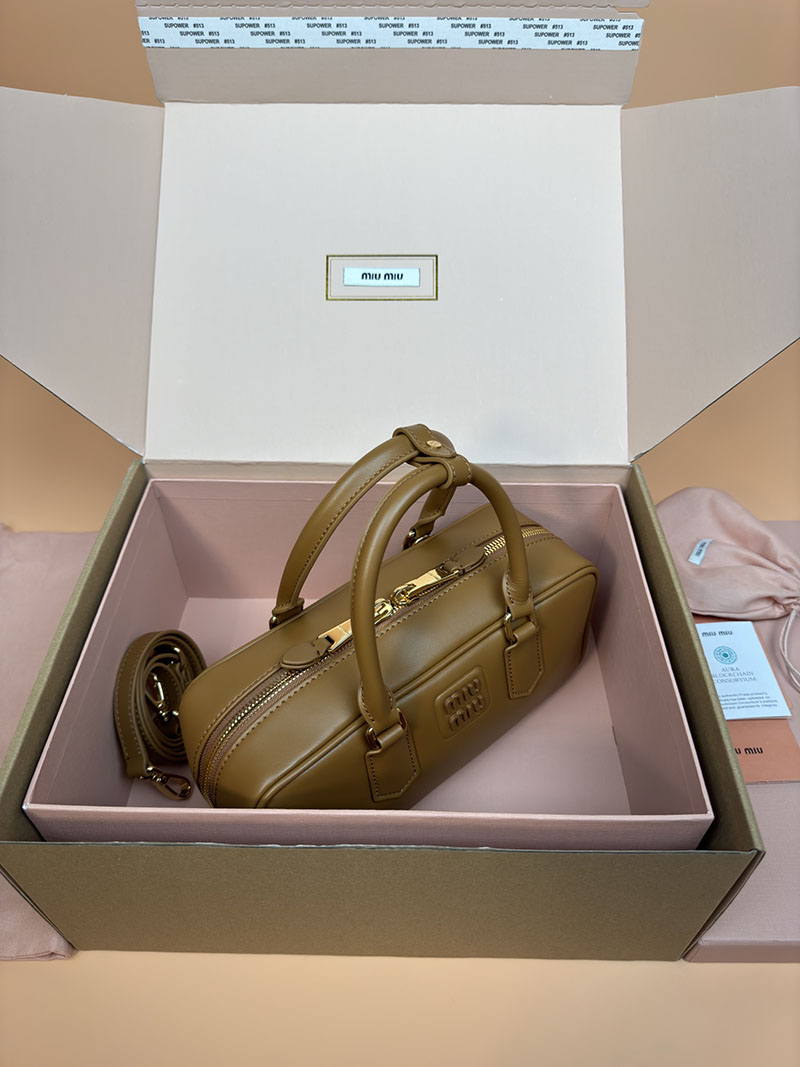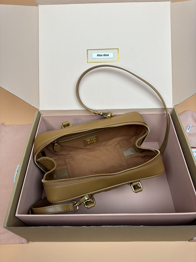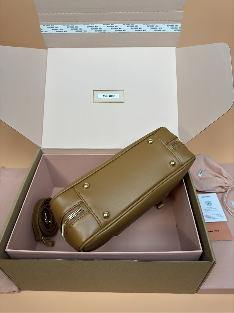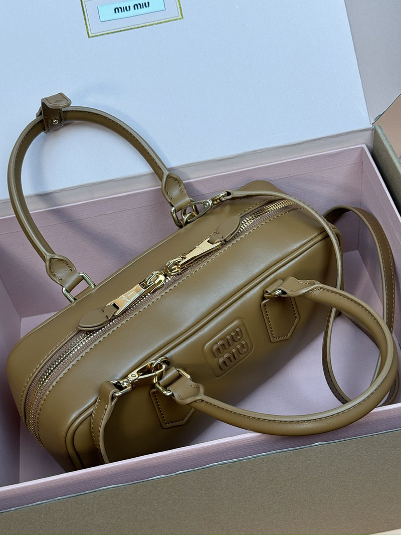 MiuMiu アルカディ レザー バッグ ブラウン 5BB148_2CR3_F0NBL_V_OON ゴールド金具 ミュウミュウ アルカディ 偽物