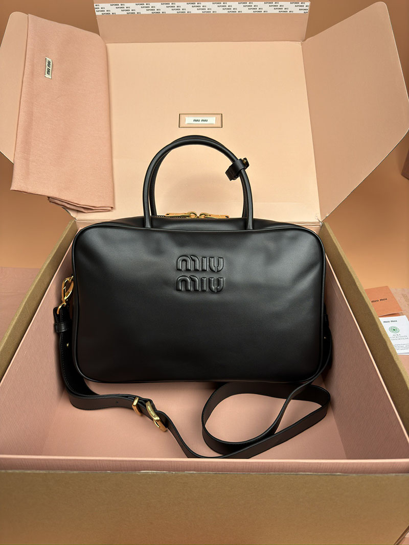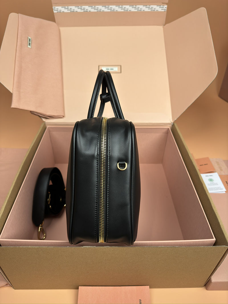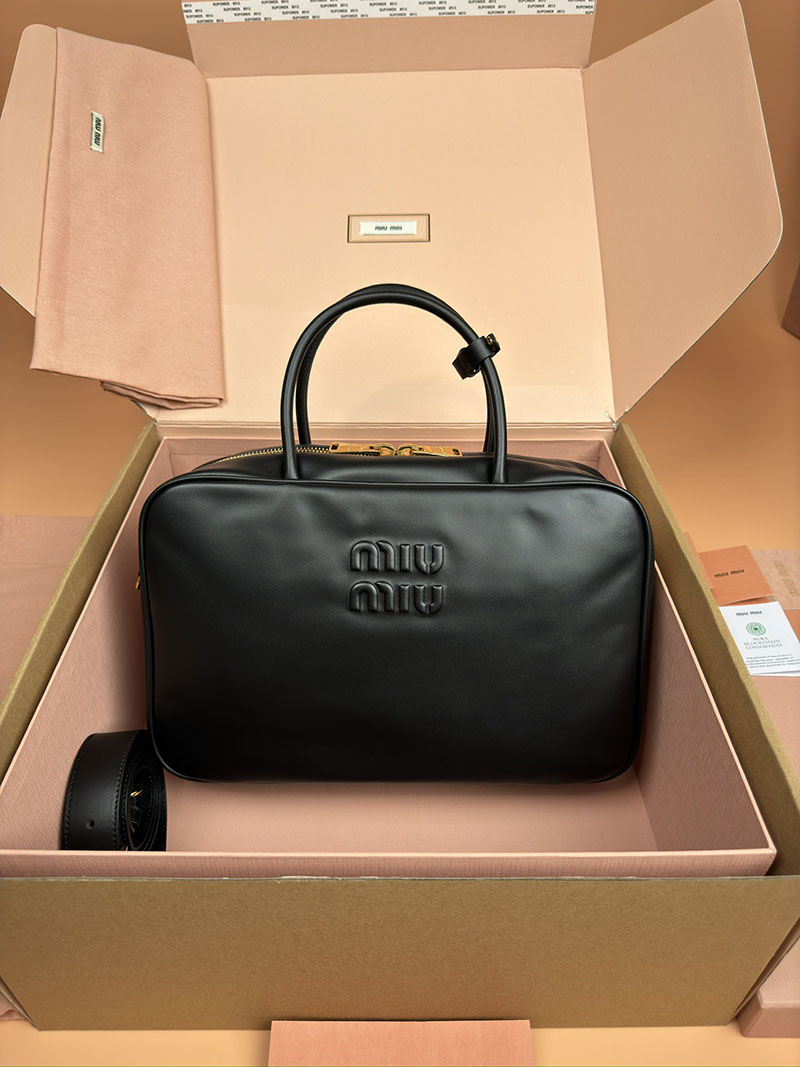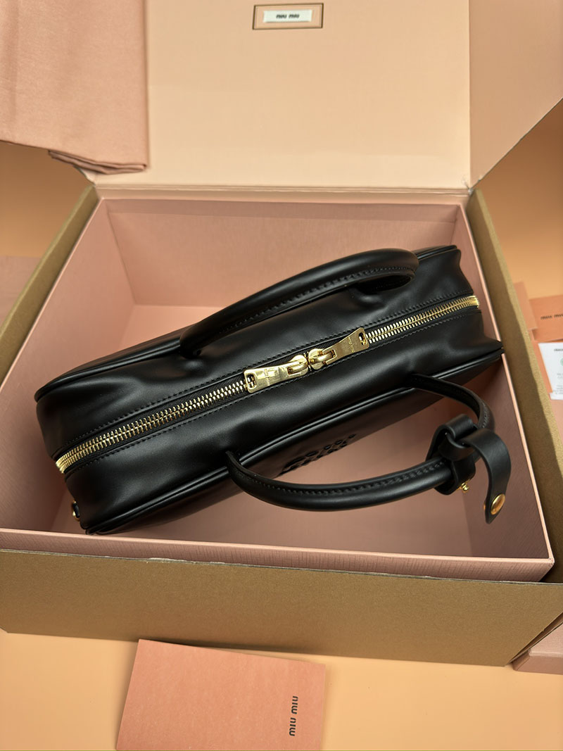 MiuMiu コーデュロイ トップハンドル ボー バッグ ブラック 5BB163_2F81_F0002_V_OOO ゴールド金具 miumiu バッグ モコモコ