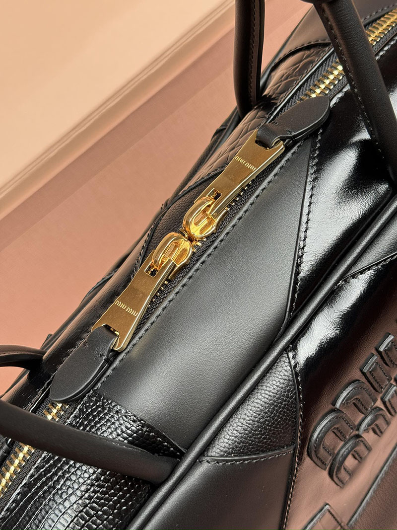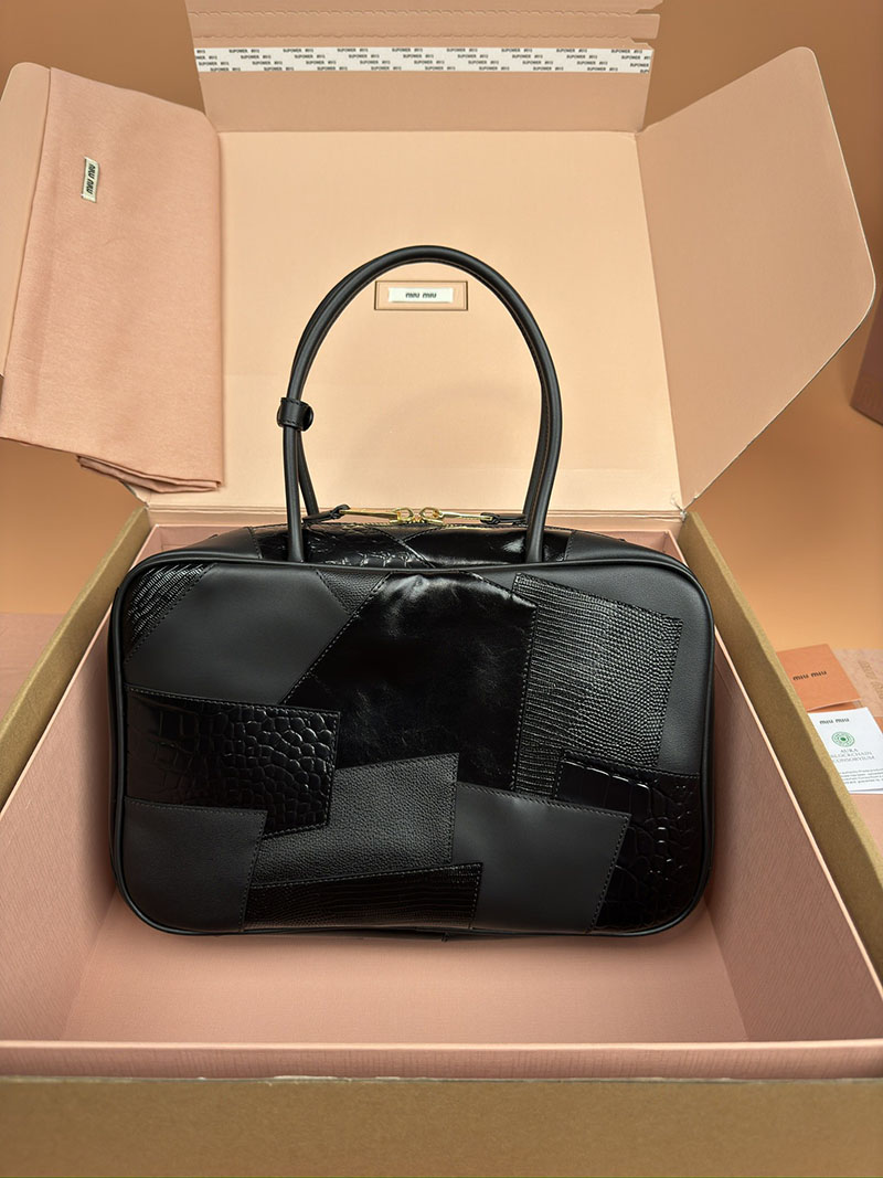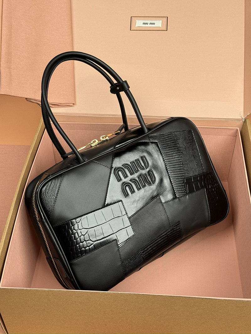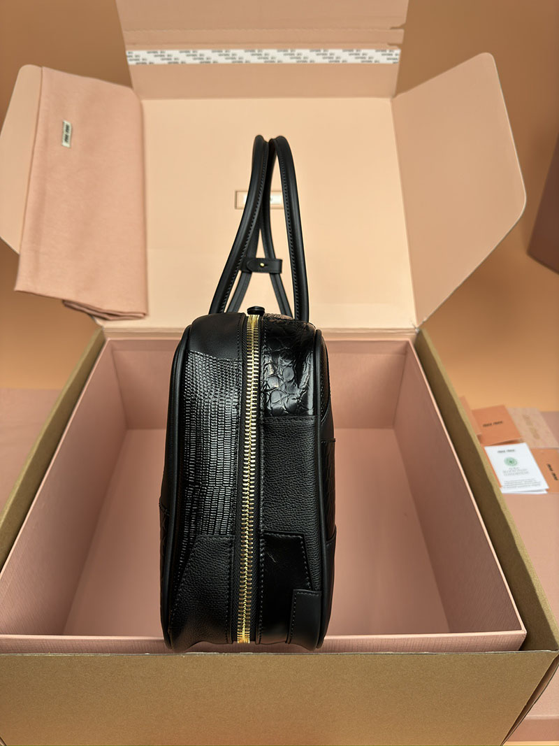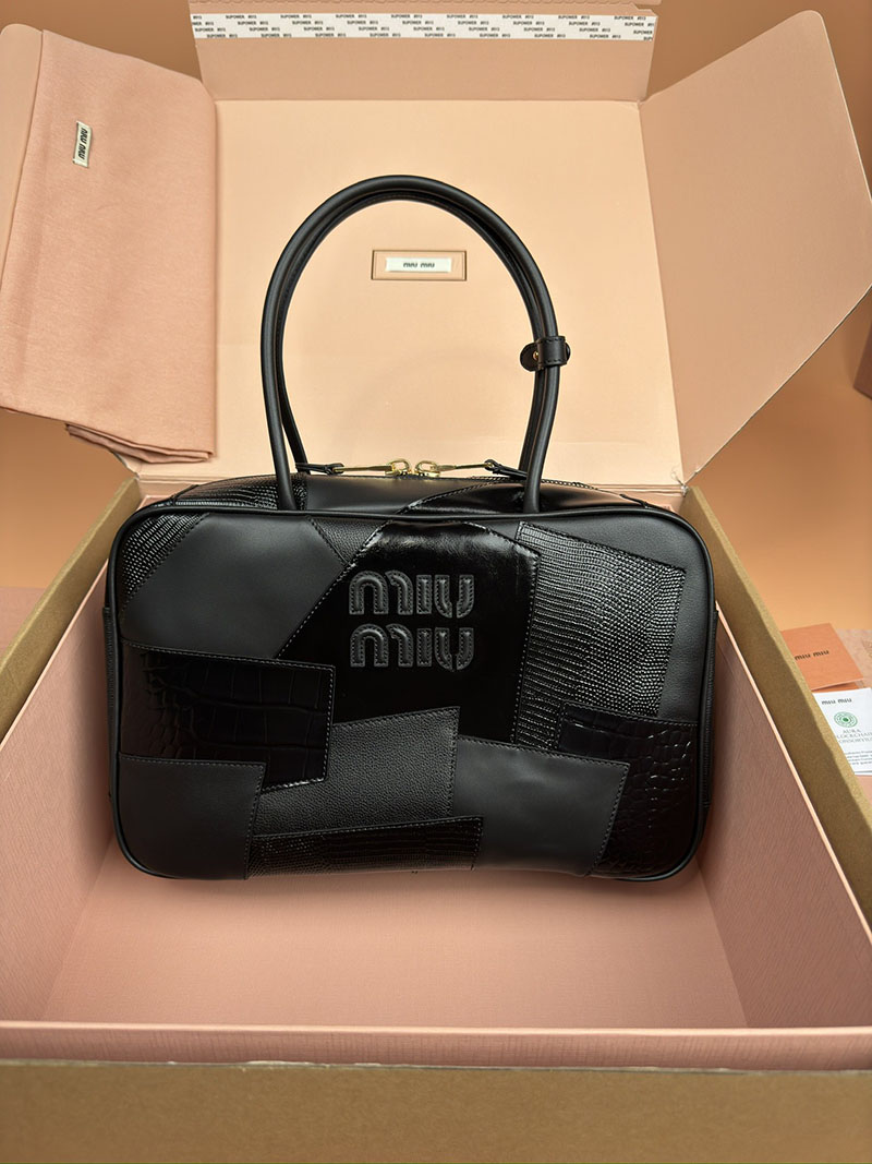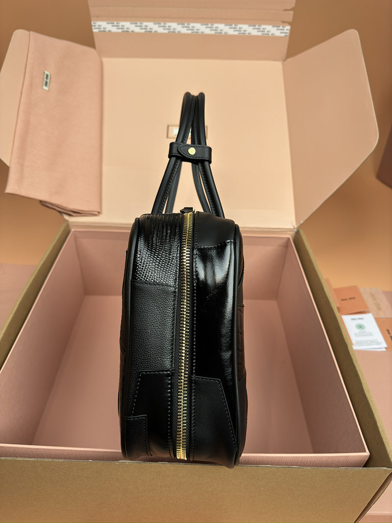 MiuMiu コーデュロイ トップハンドル ボー バッグ ブラック 5BB163_2F81_F0002_V_OOO ゴールド金具 miumiu バッグセール