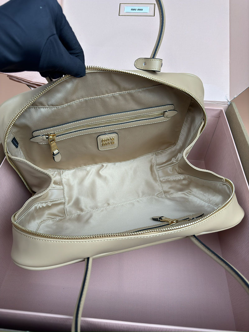 MiuMiu コーデュロイ トップハンドル ボー バッグ サンドベージュ 5BB163_2F81_F0036_V_OOO ゴールド金具 miumiu バッグ モコモコ