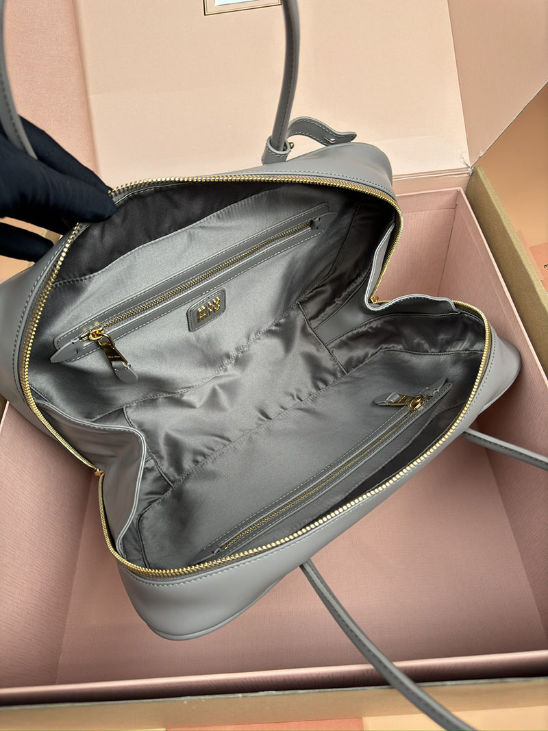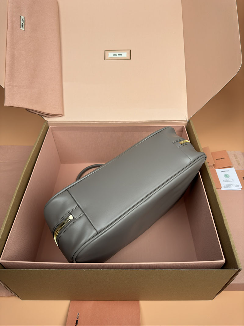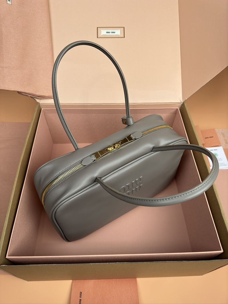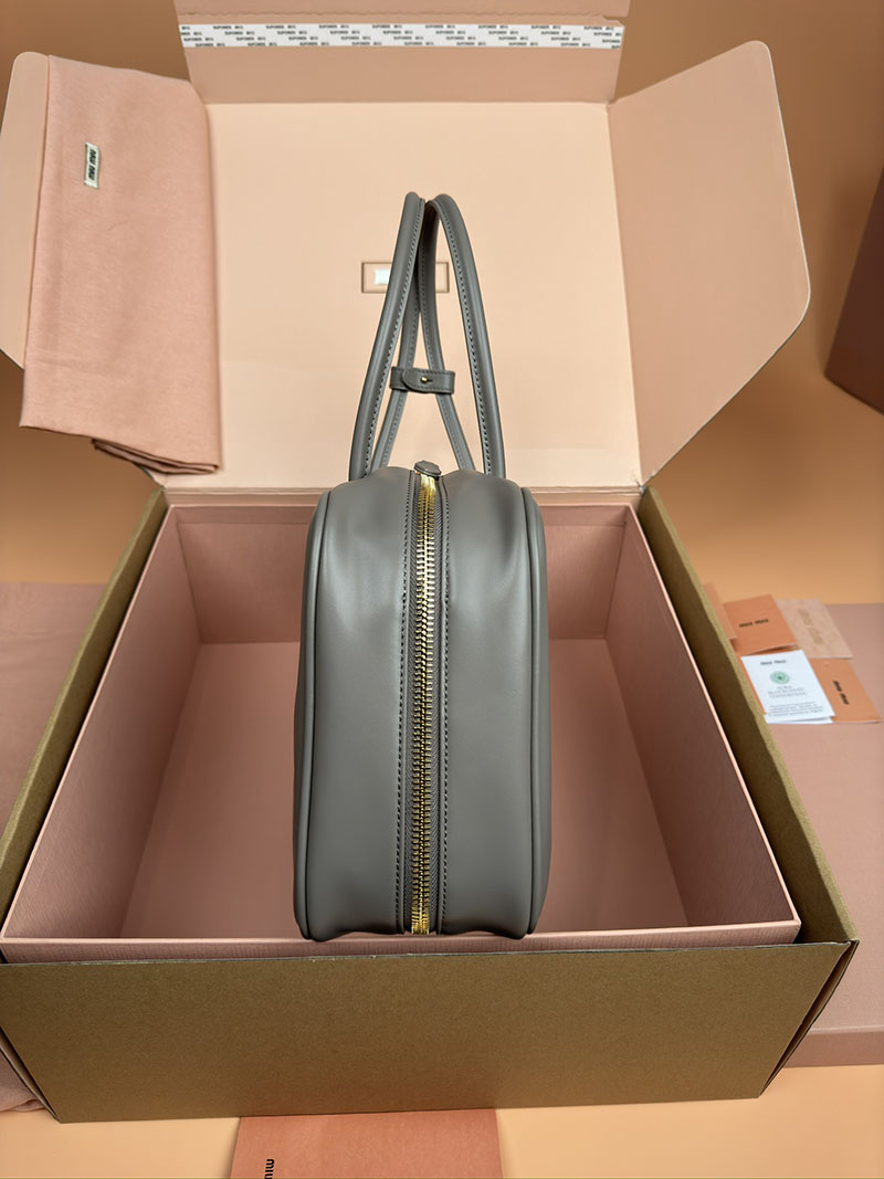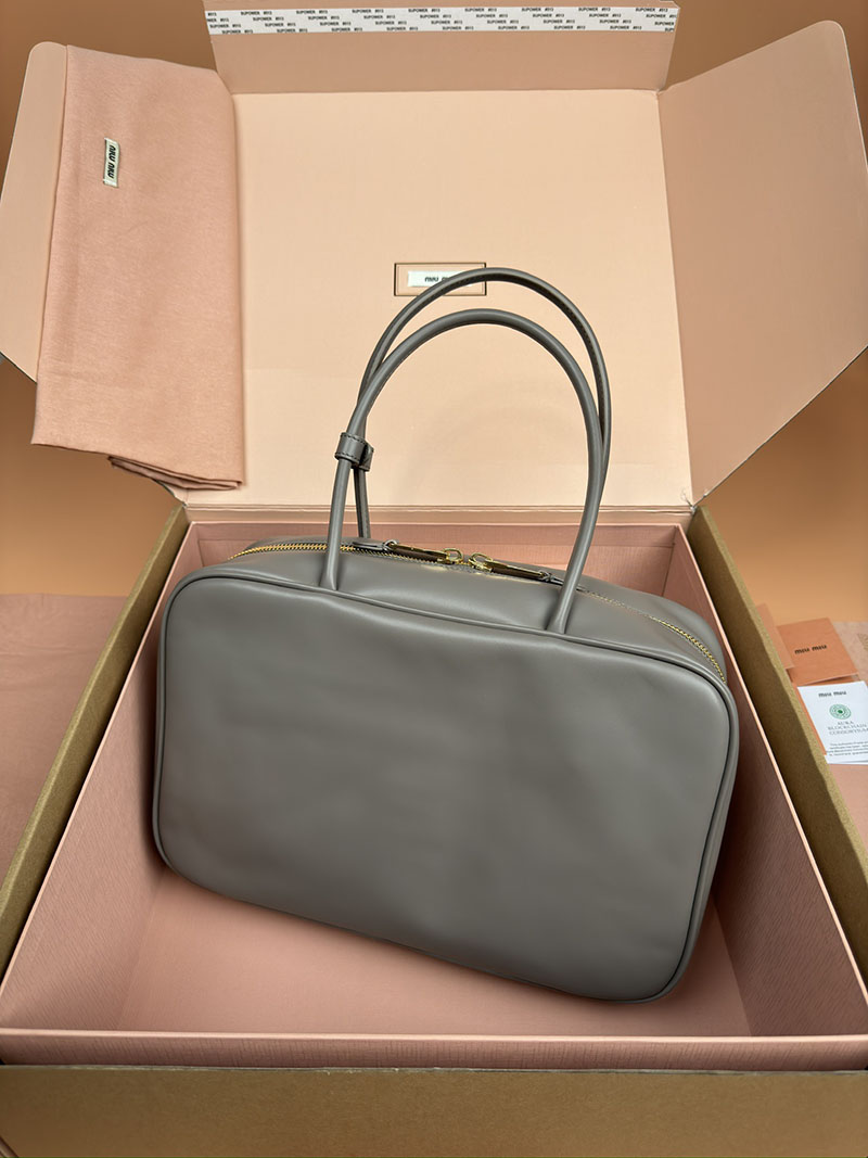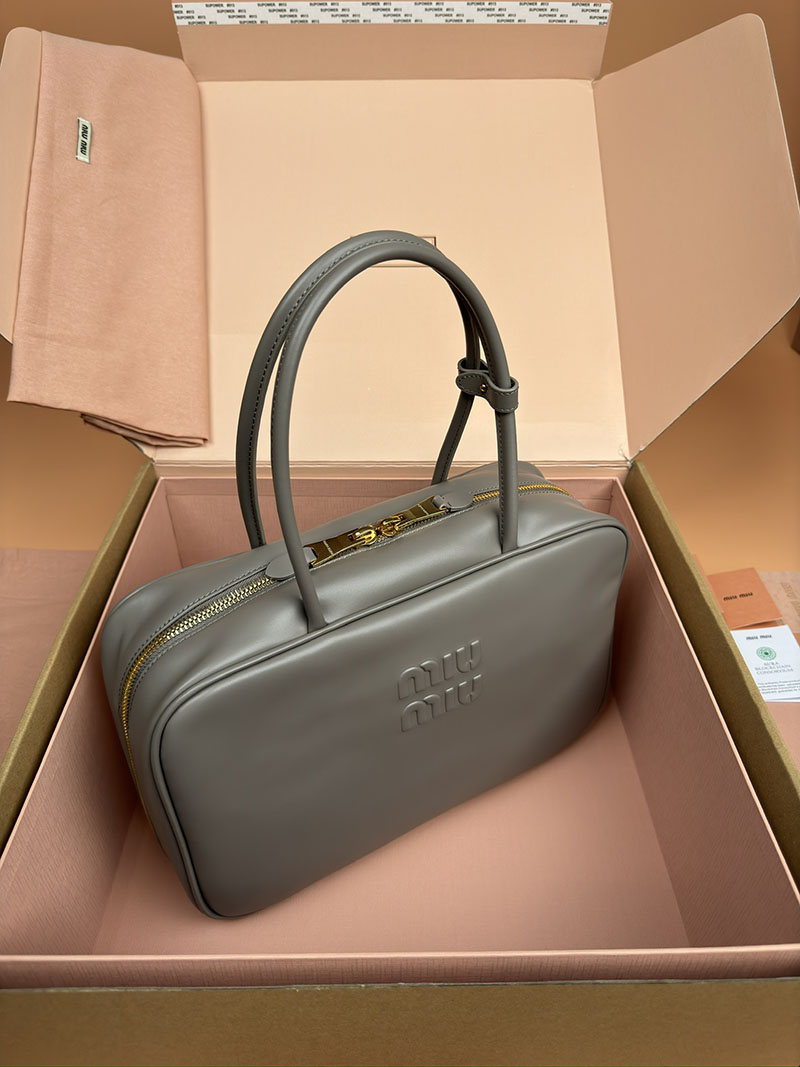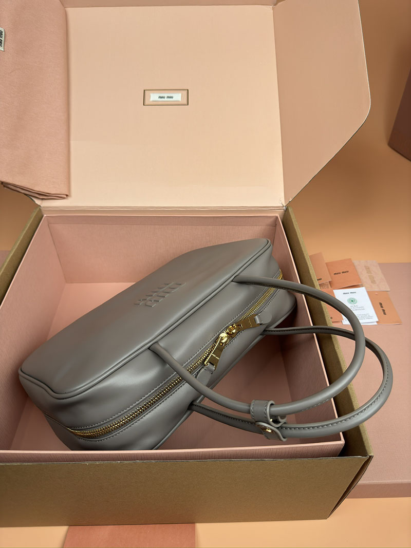 MiuMiu コーデュロイ トップハンドル ボー バッグ パールグレー 5BB163_2F81_F0164_V_OOO ゴールド金具 miumiu アウトレット 店舗