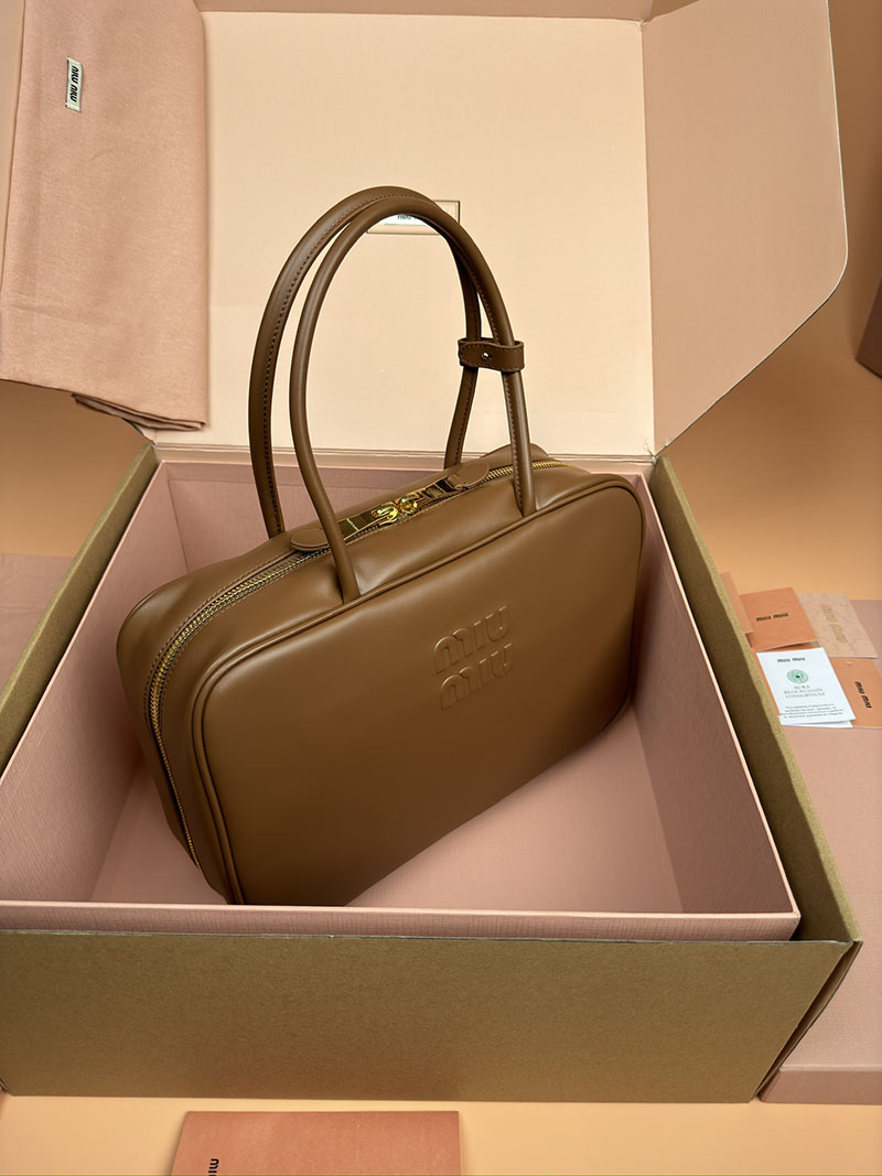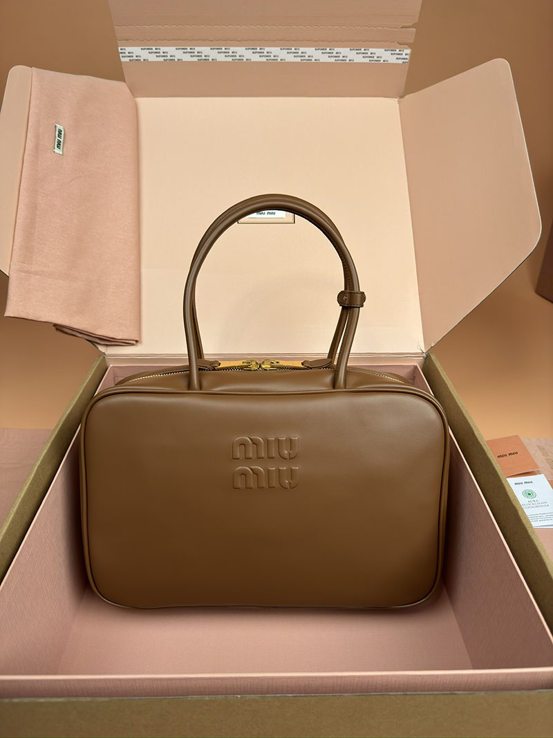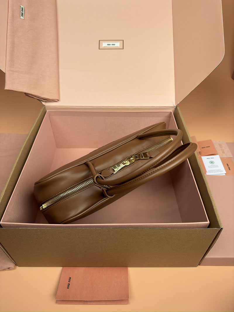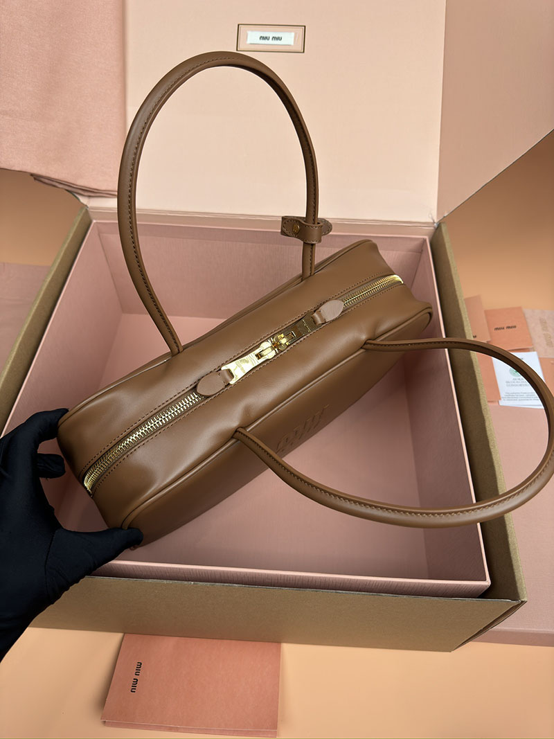 MiuMiu コーデュロイ トップハンドル ボー バッグ ブラウン 5BB163_2F81_F0316_V_OOO ゴールド金具 miumiu アウトレット 店舗