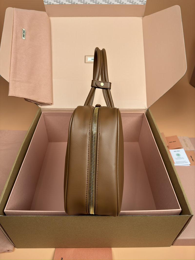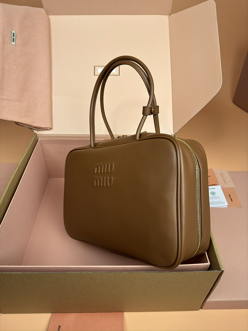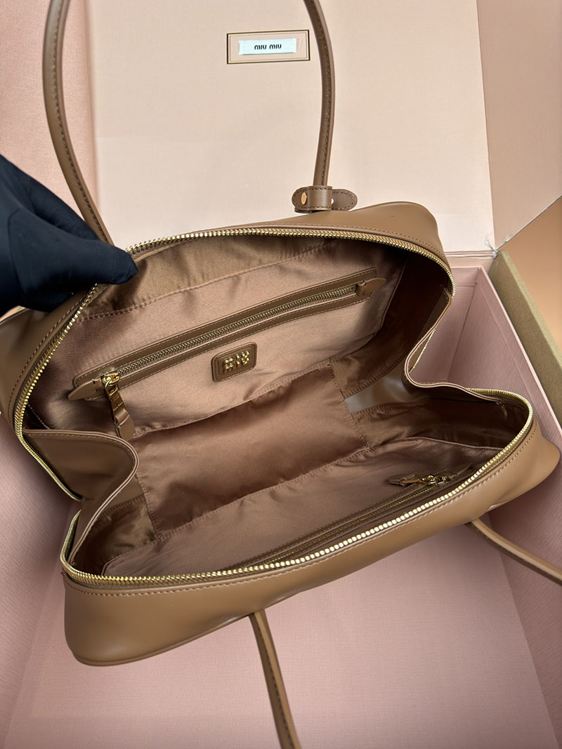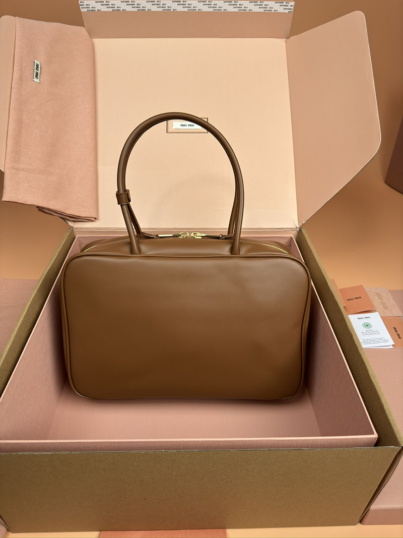 MiuMiu コーデュロイ トップハンドル ボー バッグ ブラウン 5BB163_2F81_F0316_V_OOO ゴールド金具 miumiu アウトレット 店舗