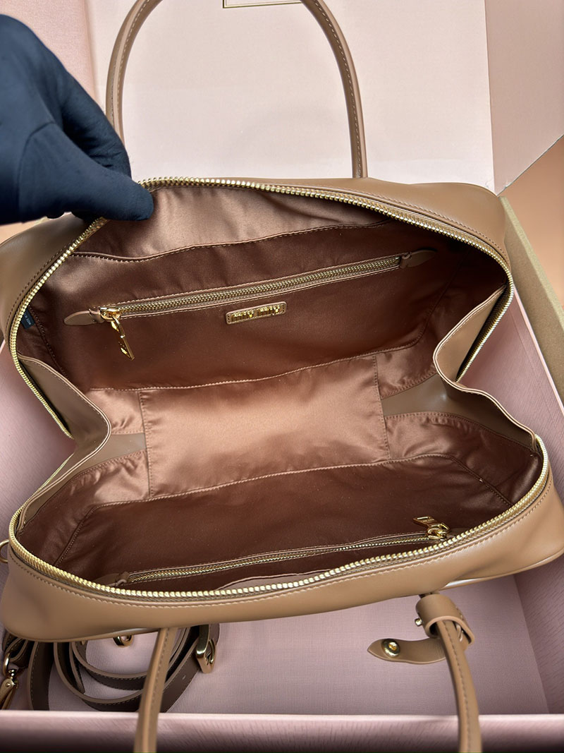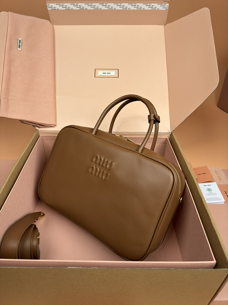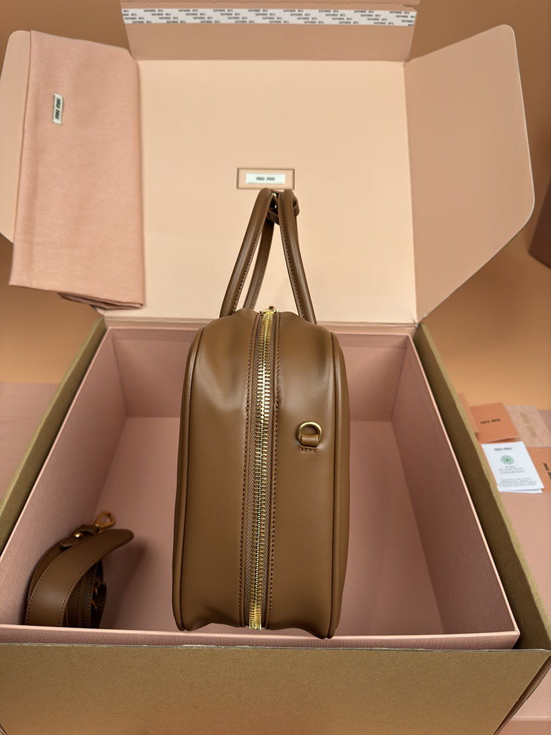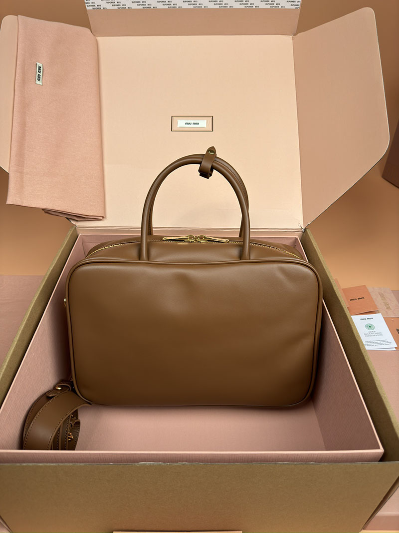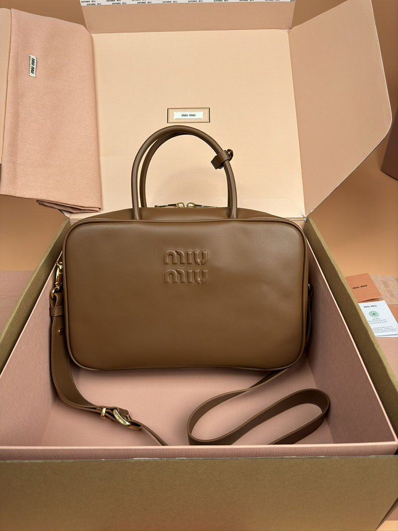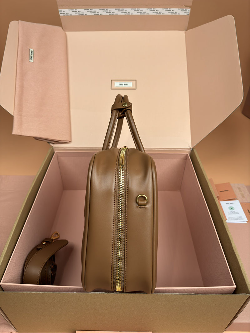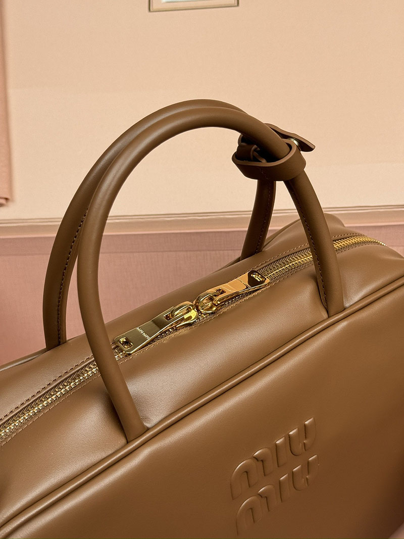 MiuMiu コーデュロイ トップハンドル ボー バッグ ブラウン 5BB163_2F81_F0316_V_OOO ゴールド金具 miumiu バッグ モコモコ