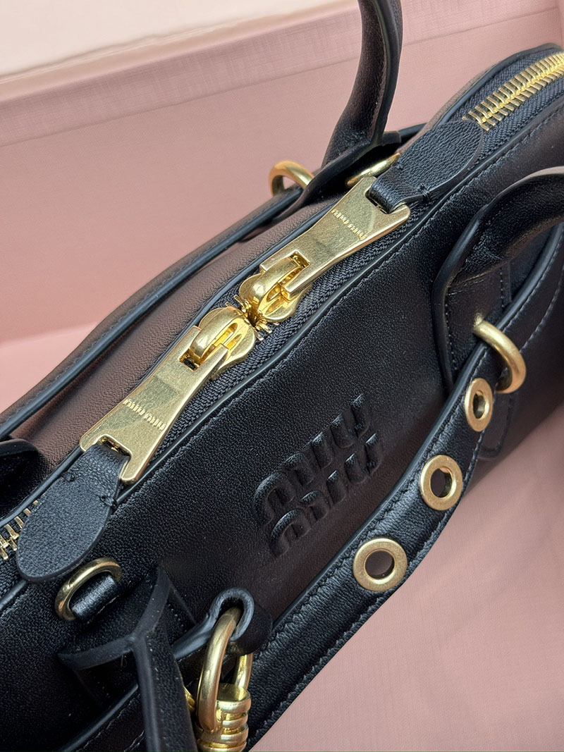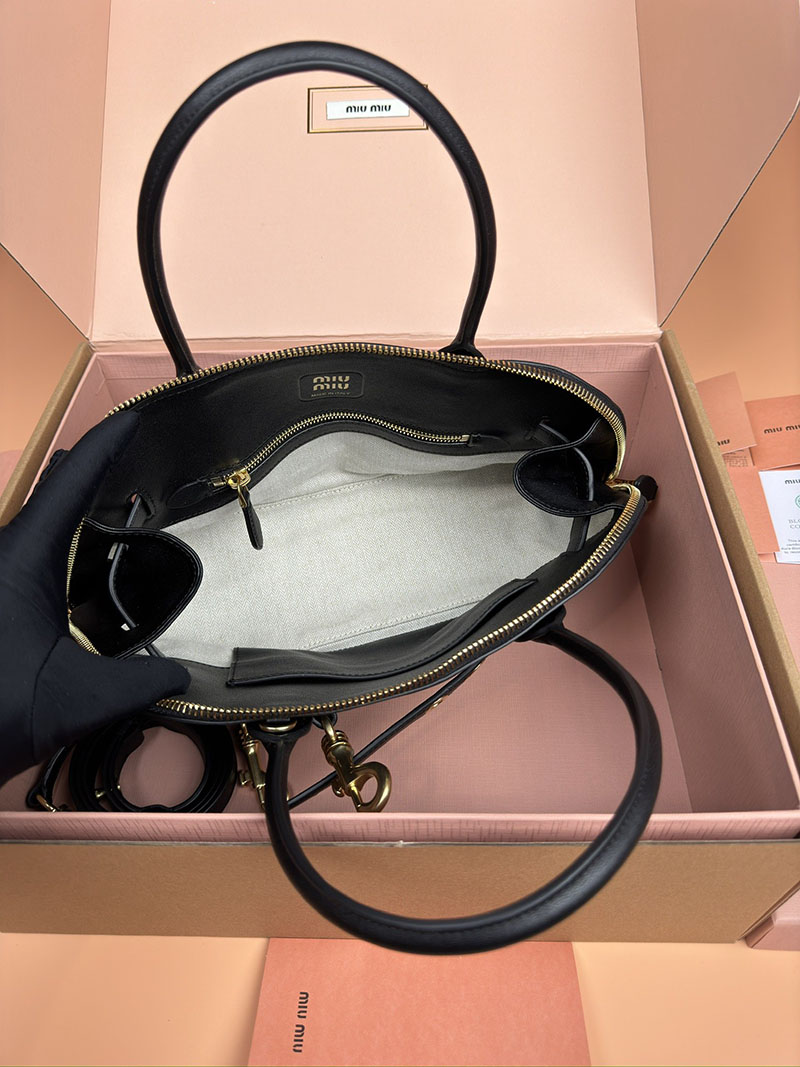 MiuMiu アバンチュール ナッパレザー トップハンドルバッグ ブラック 5BB168_2BBL_F0002_V_OOO ゴールド金具 ブランドバッグ アウトレット 激安