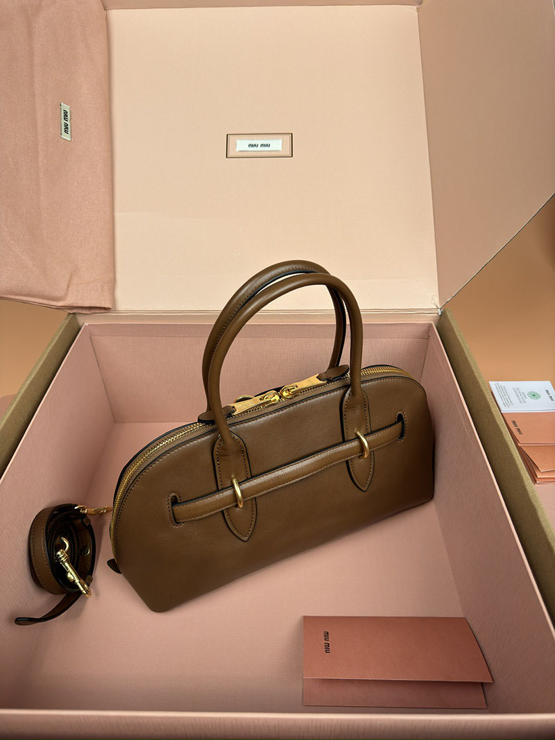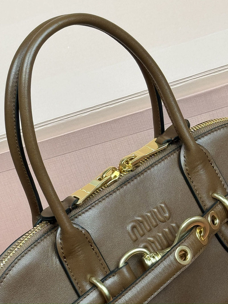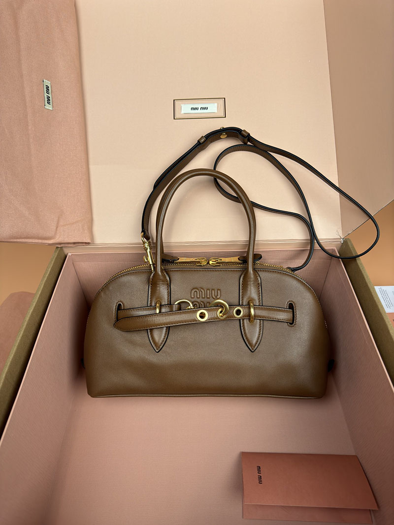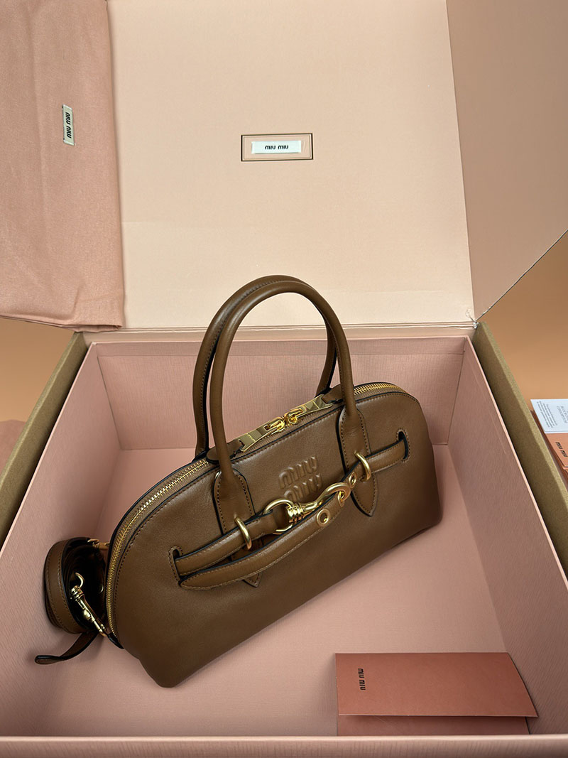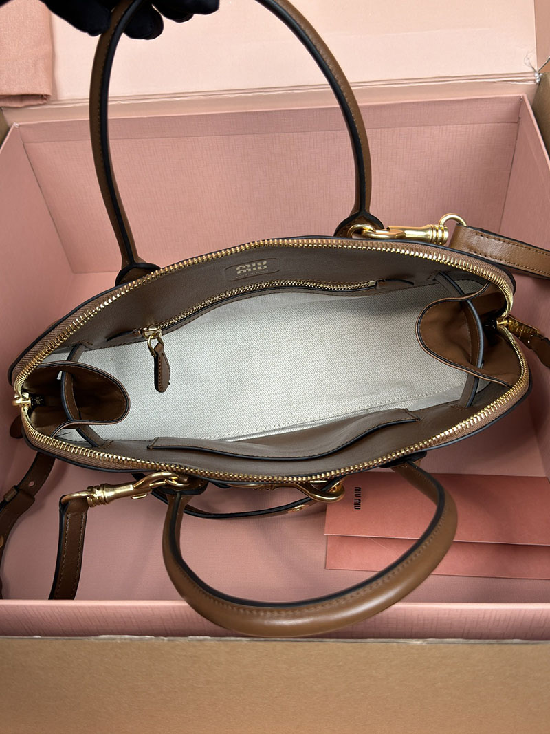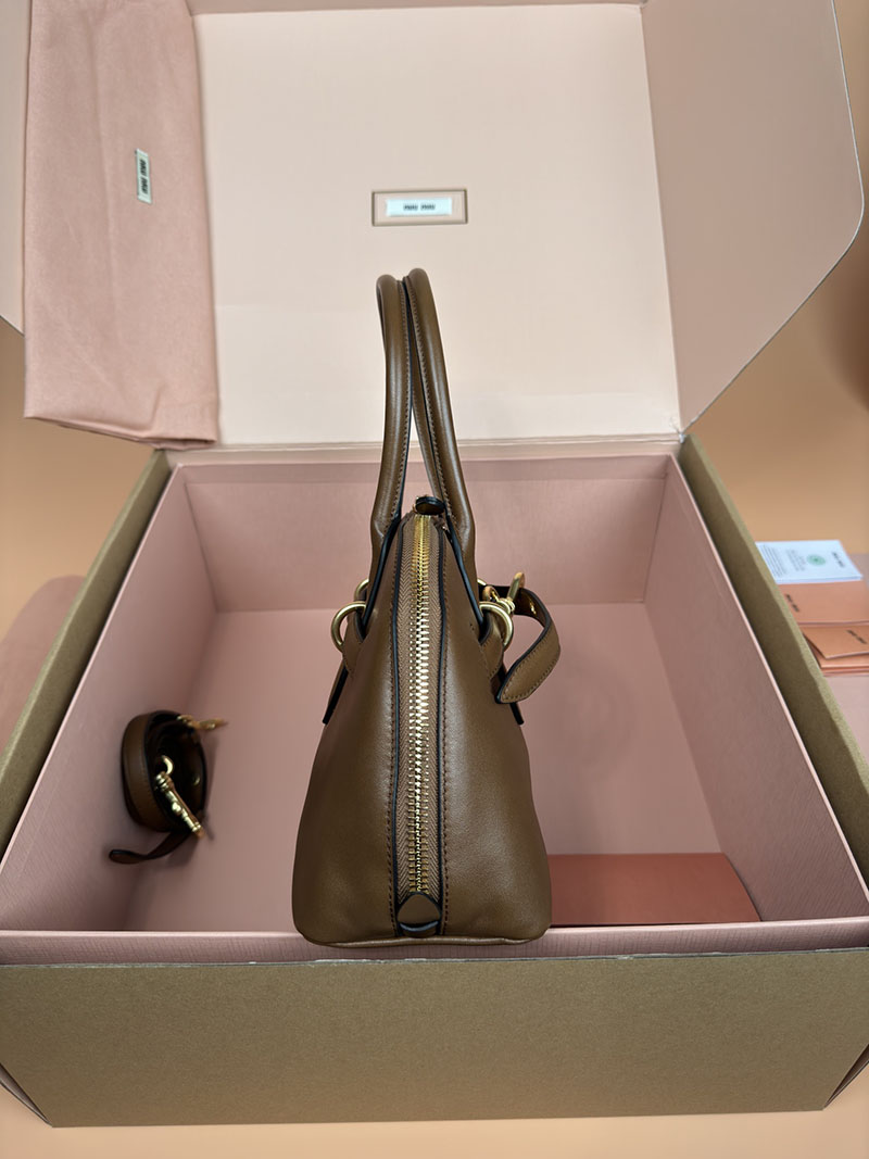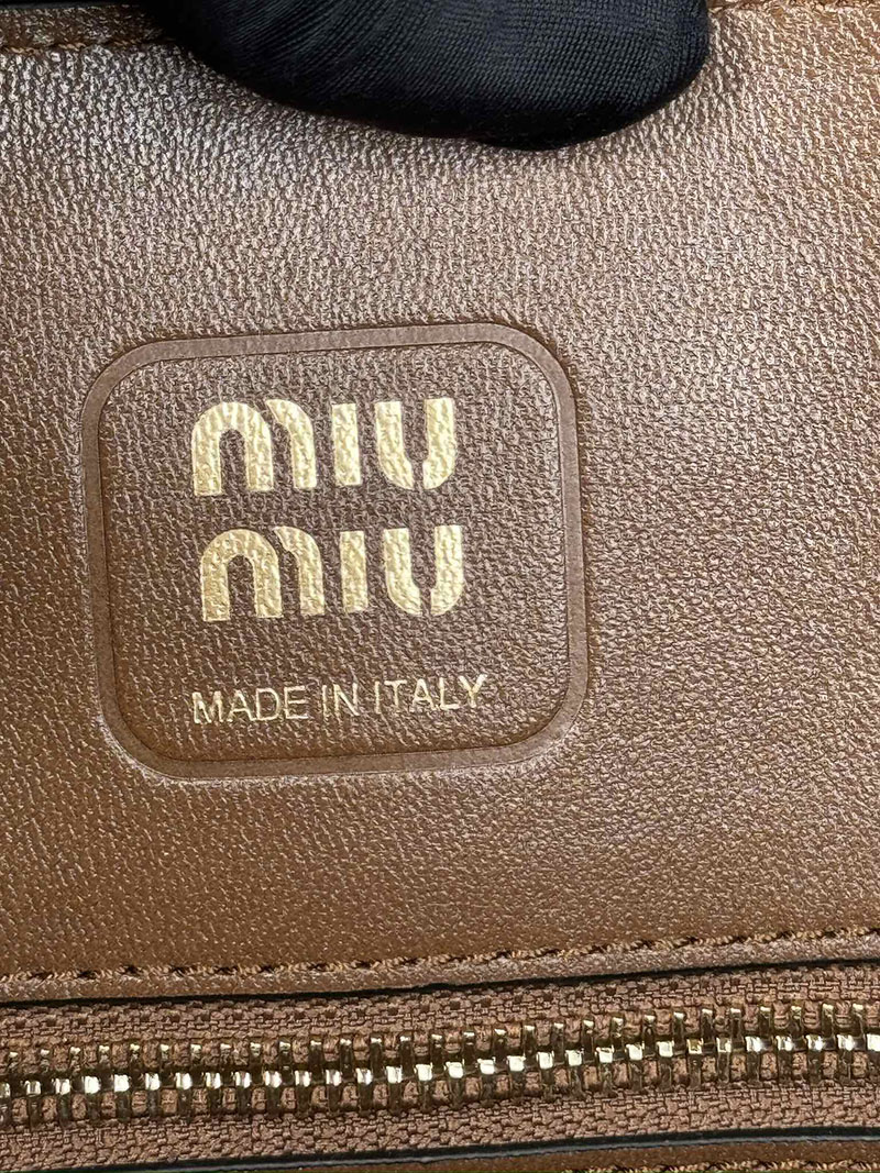MiuMiu アバンチュール ナッパレザー トップハンドルバッグ ブラウン 5BB168_2BBL_F0316_V_OOO ゴールド金具 ブランドバッグ アウトレット 激安