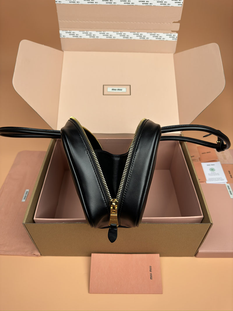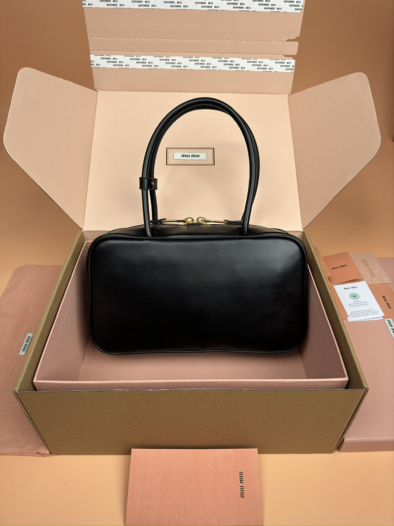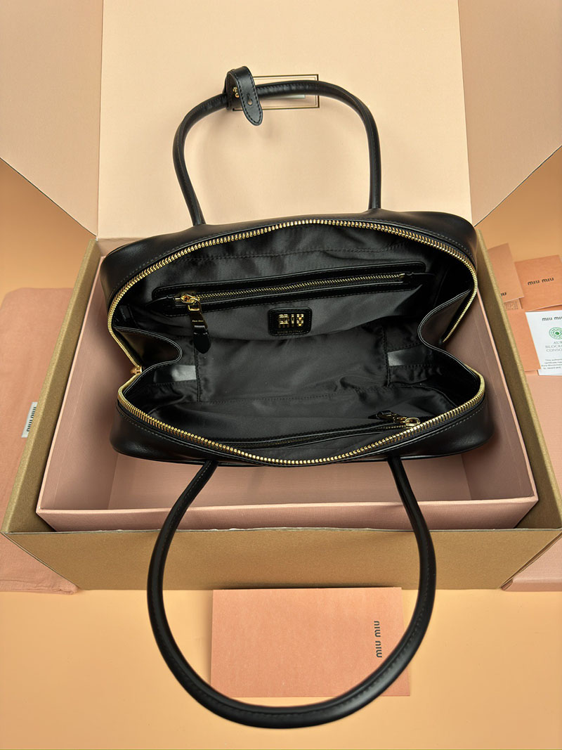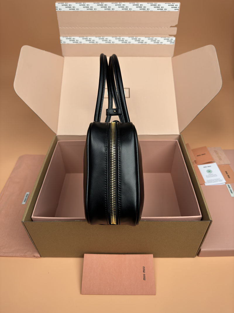 MiuMiu レザー トップハンドルバッグ ブラック 5BB172_2CRW_F0002_V_OOO ゴールド金具 ブランドバッグ アウトレット 公式