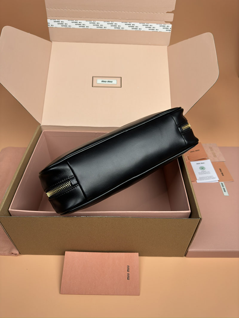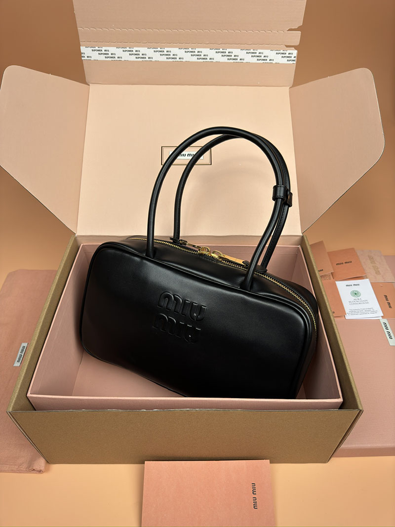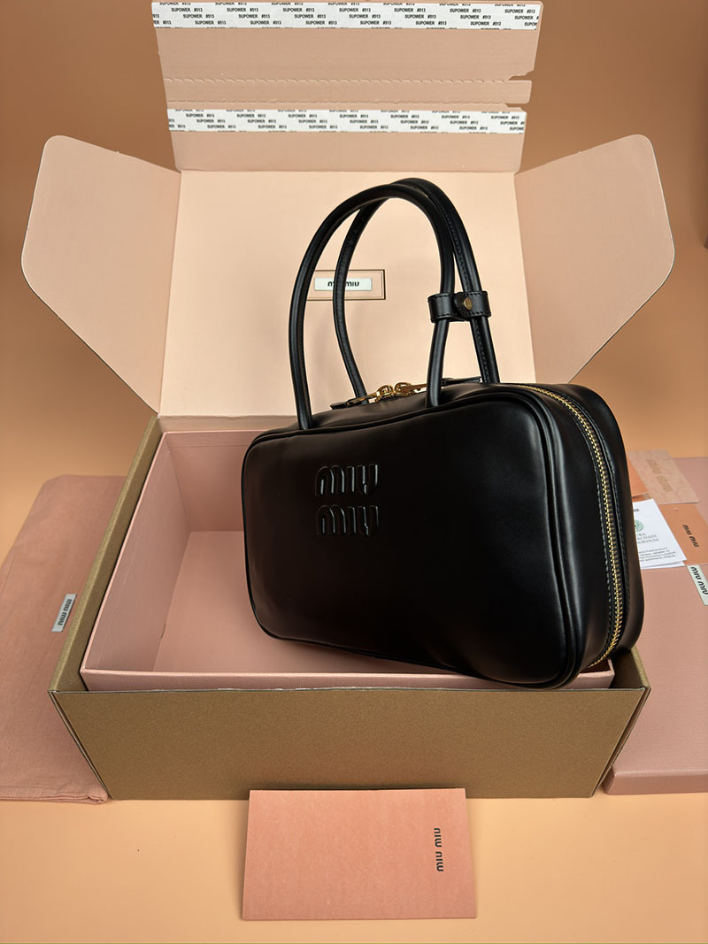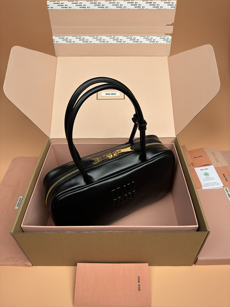 MiuMiu レザー トップハンドルバッグ ブラック 5BB172_2CRW_F0002_V_OOO ゴールド金具 ブランドバッグ アウトレット 公式