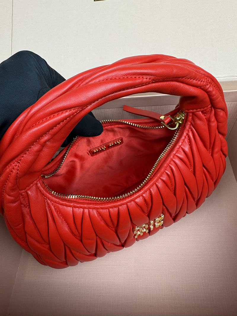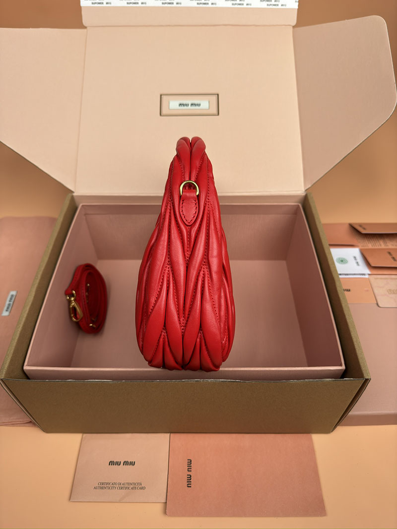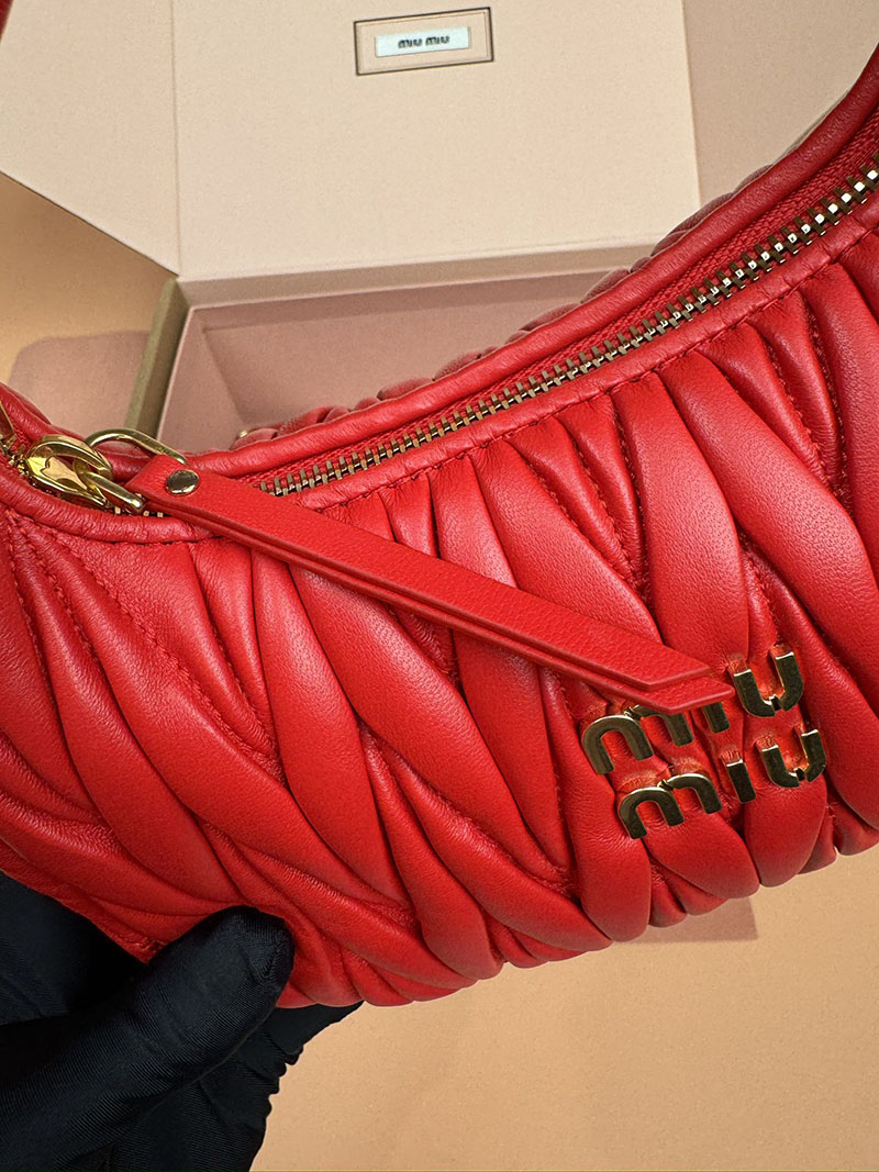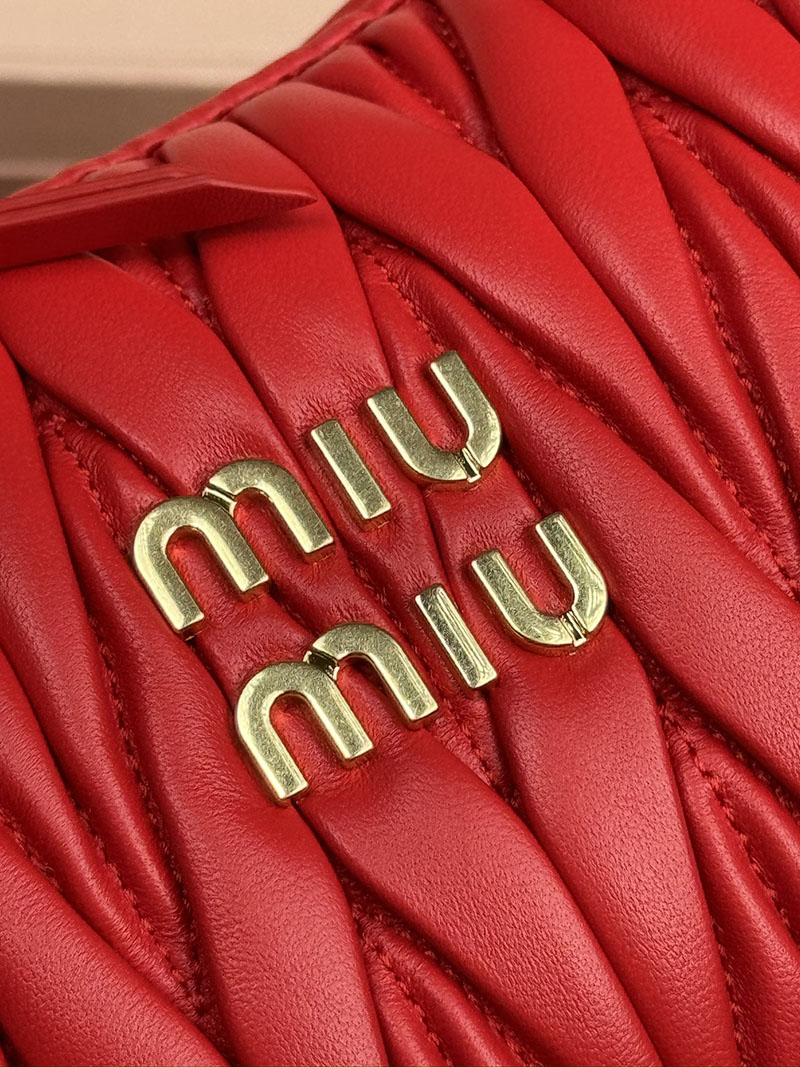 MiuMiu ワンダー マテラッセレザー ホーボーバッグ レッド 5BC125_AN88_F0011_V_OOY ゴールド金具 ミュウミュウ バッグ 芸能人