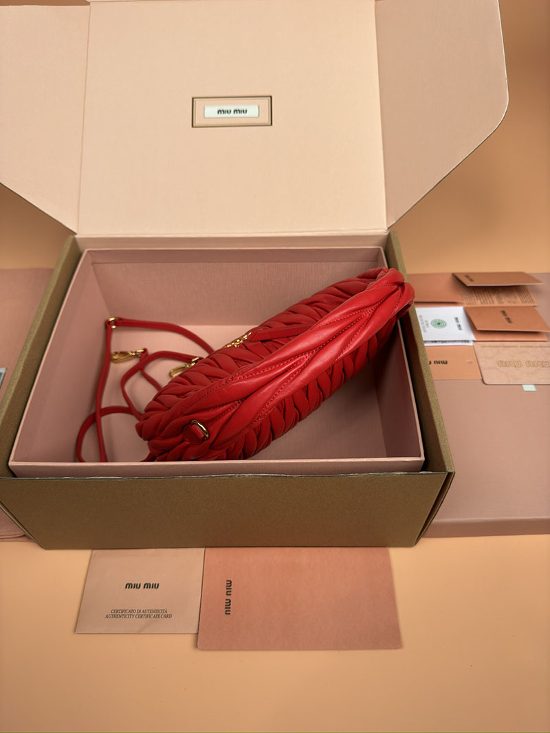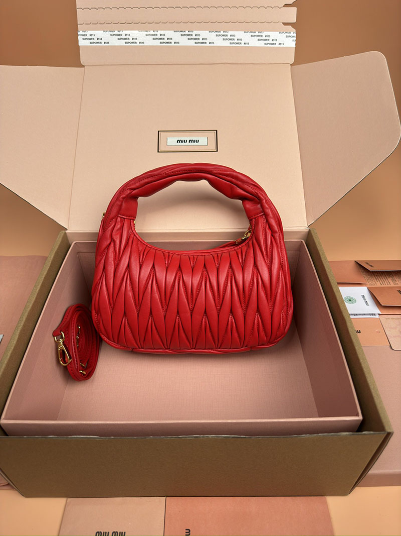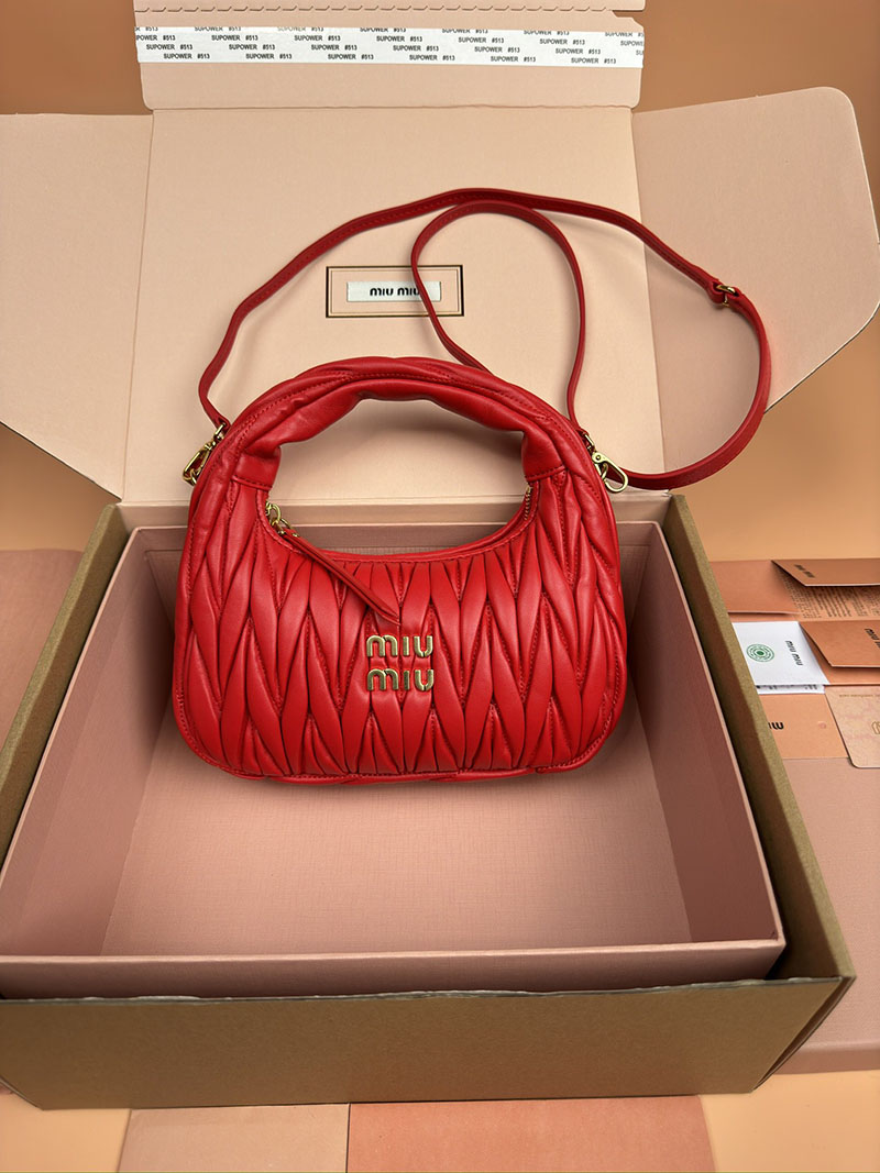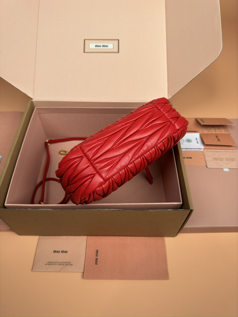 MiuMiu ワンダー マテラッセレザー ホーボーバッグ レッド 5BC125_AN88_F0011_V_OOY ゴールド金具 ミュウミュウ バッグ 芸能人