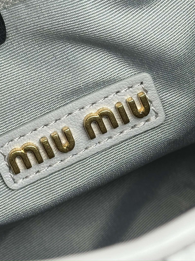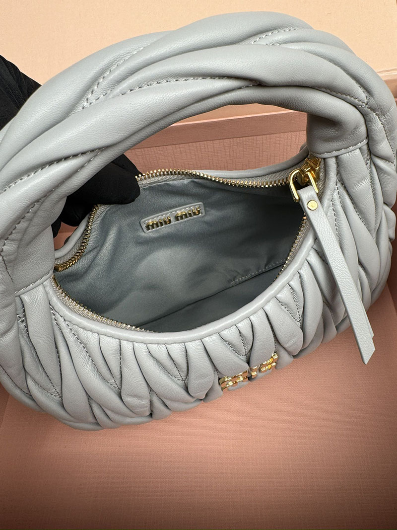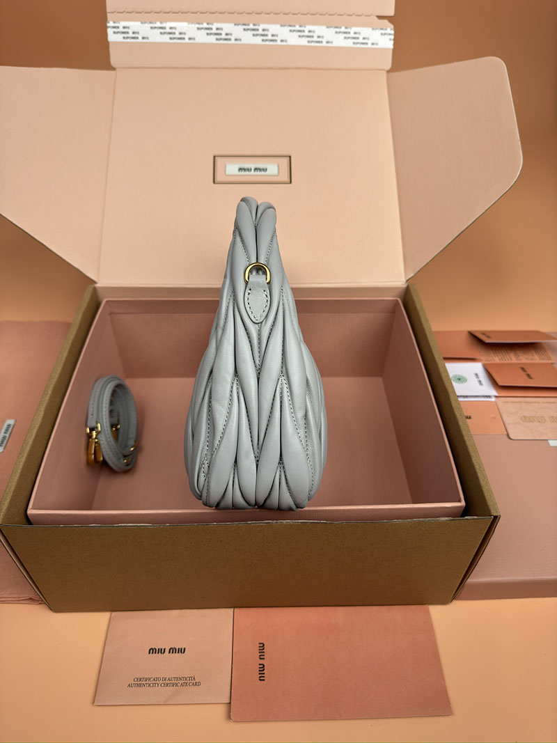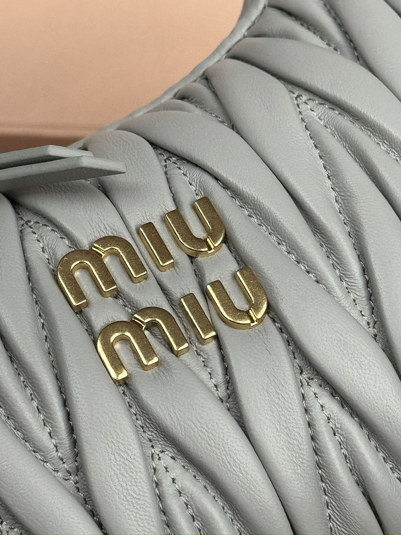 MiuMiu ワンダー マテラッセレザー ホーボーバッグ パールグレー 5BC125_AN88_F0164_V_OOY ゴールド金具 ミュウミュウ バッグ 芸能人