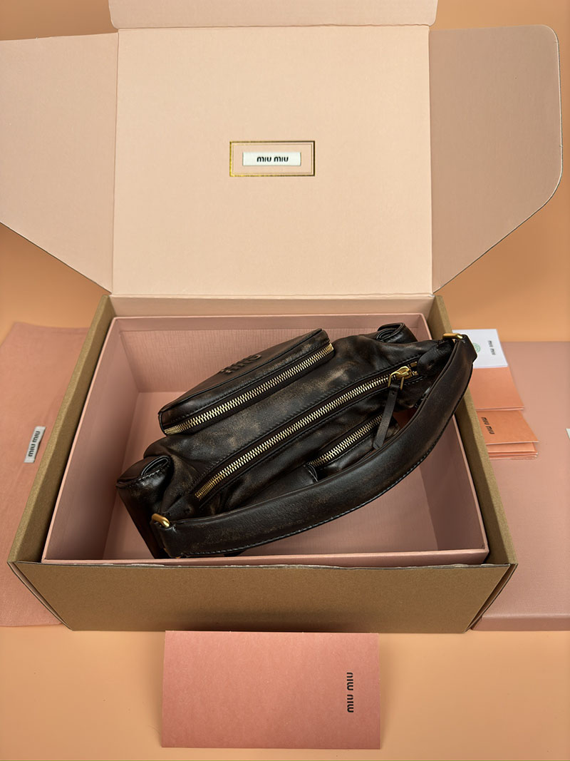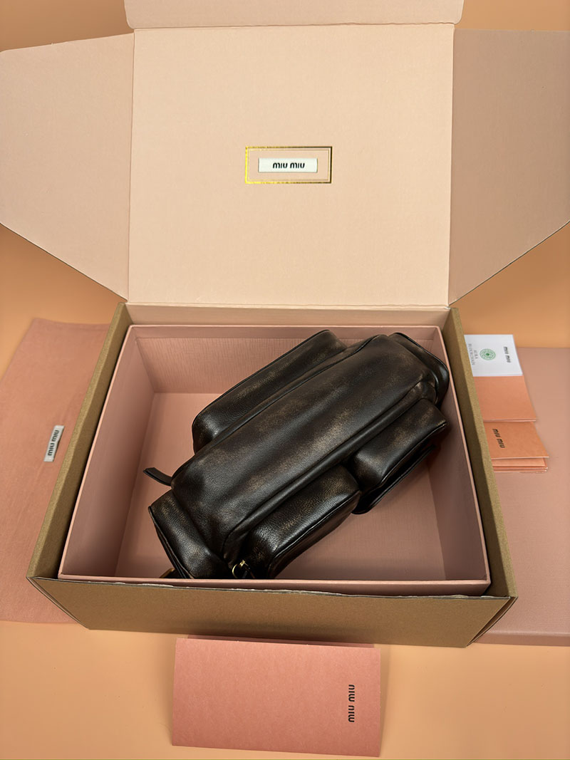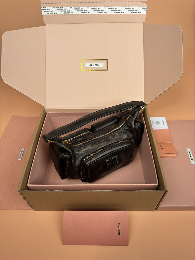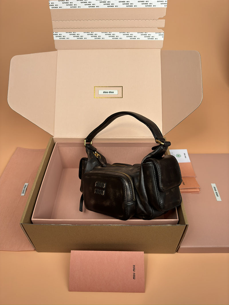MiuMiu ナッパレザー ポケットバッグ ブラック 5BC146 羊革 ゴールド金具 ブランドバッグ 人気ランキング