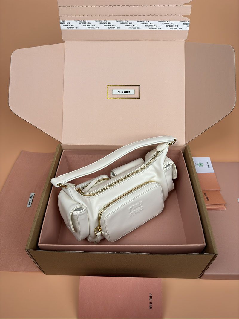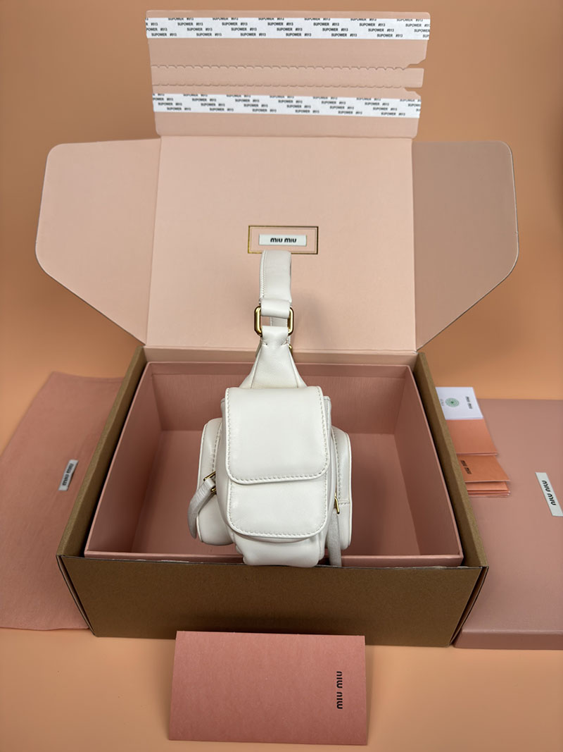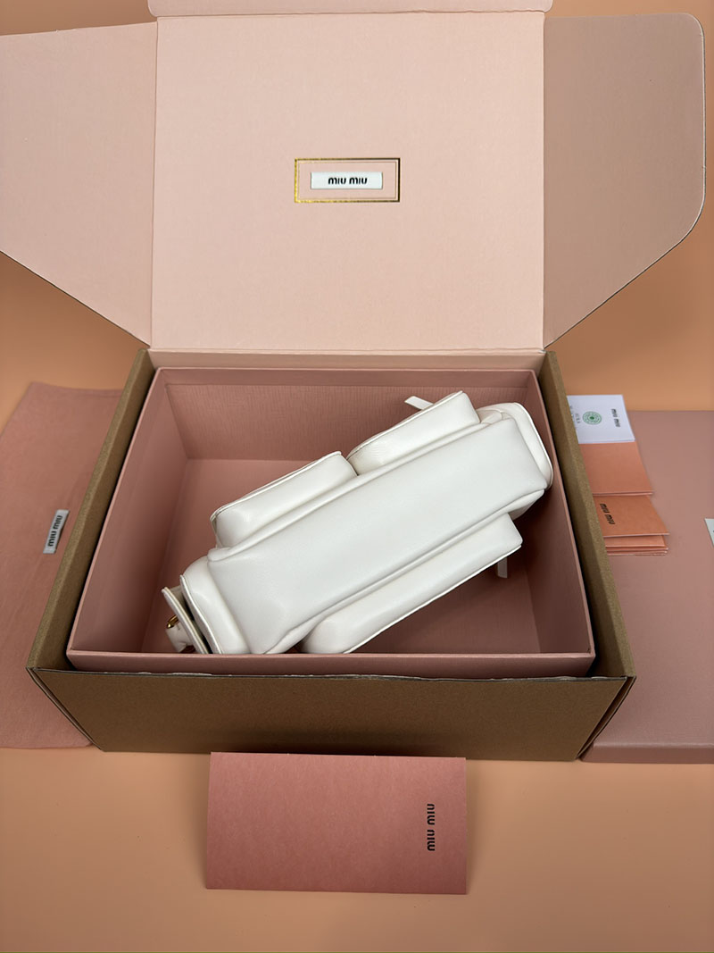 MiuMiu ナッパレザー ポケットバッグ ホワイト 5BC146_2F8N_F0009_V_OOO ゴールド金具 ブランドバッグ 人気ランキング