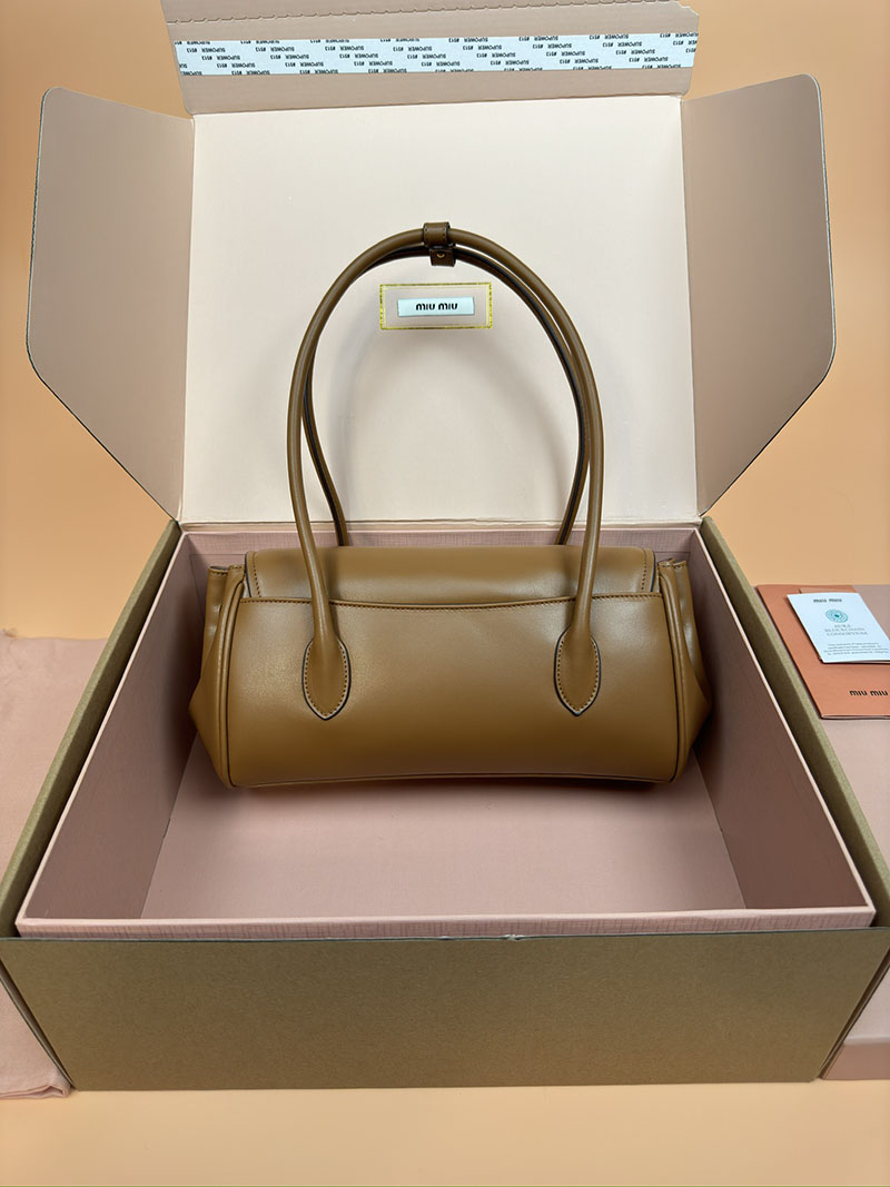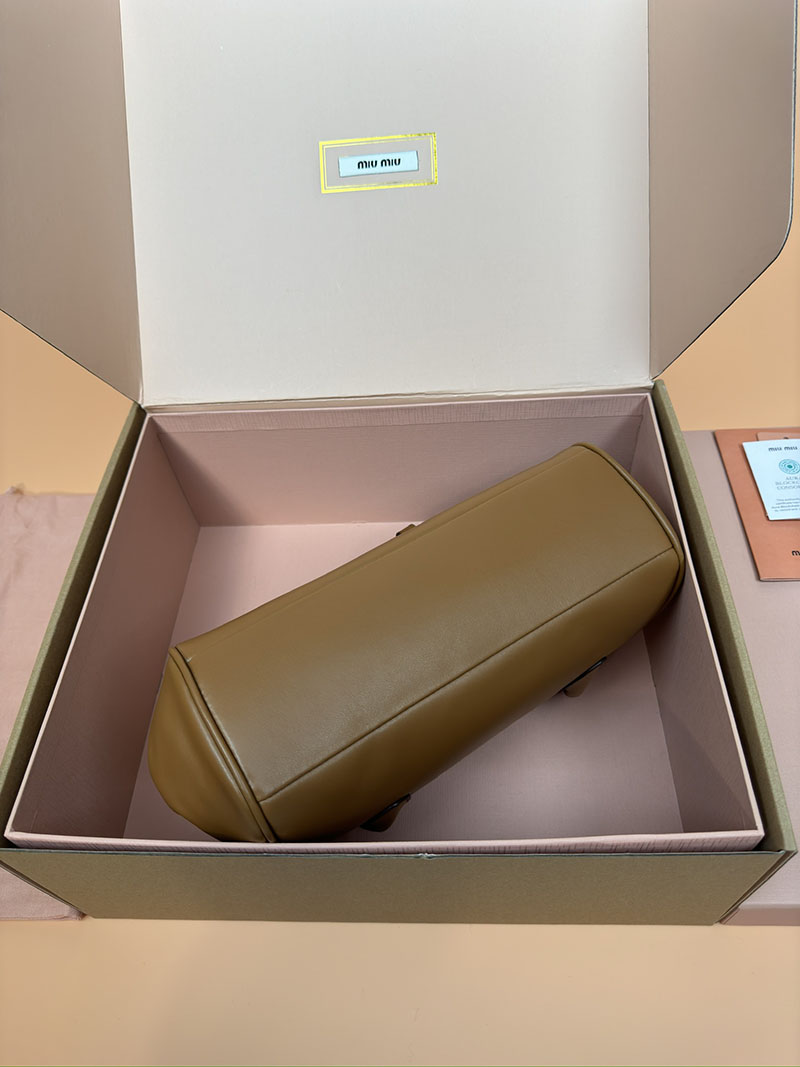 MiuMiu レザー ショルダーバッグ ブラウン 5BD265_2CRM_F0316_V_OOO ゴールド金具 ホーボーバッグ レディース