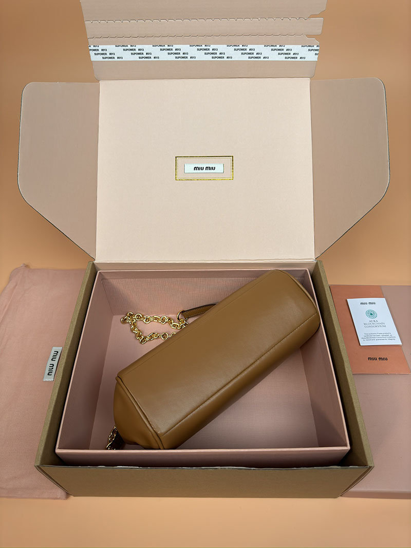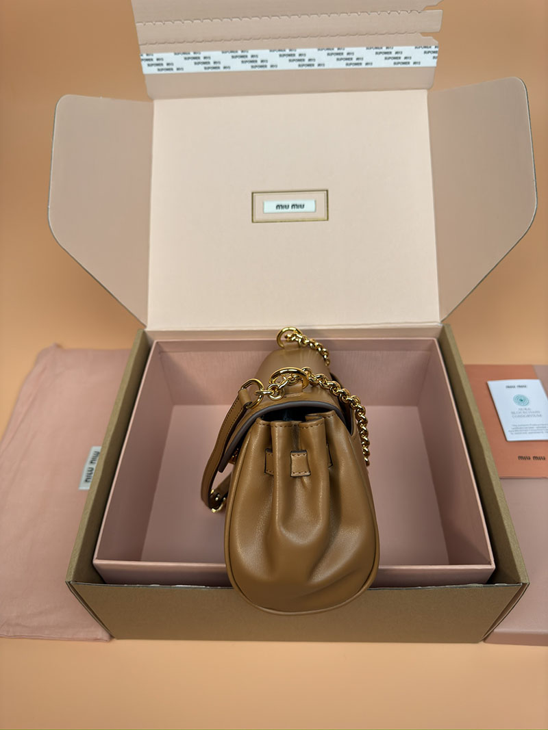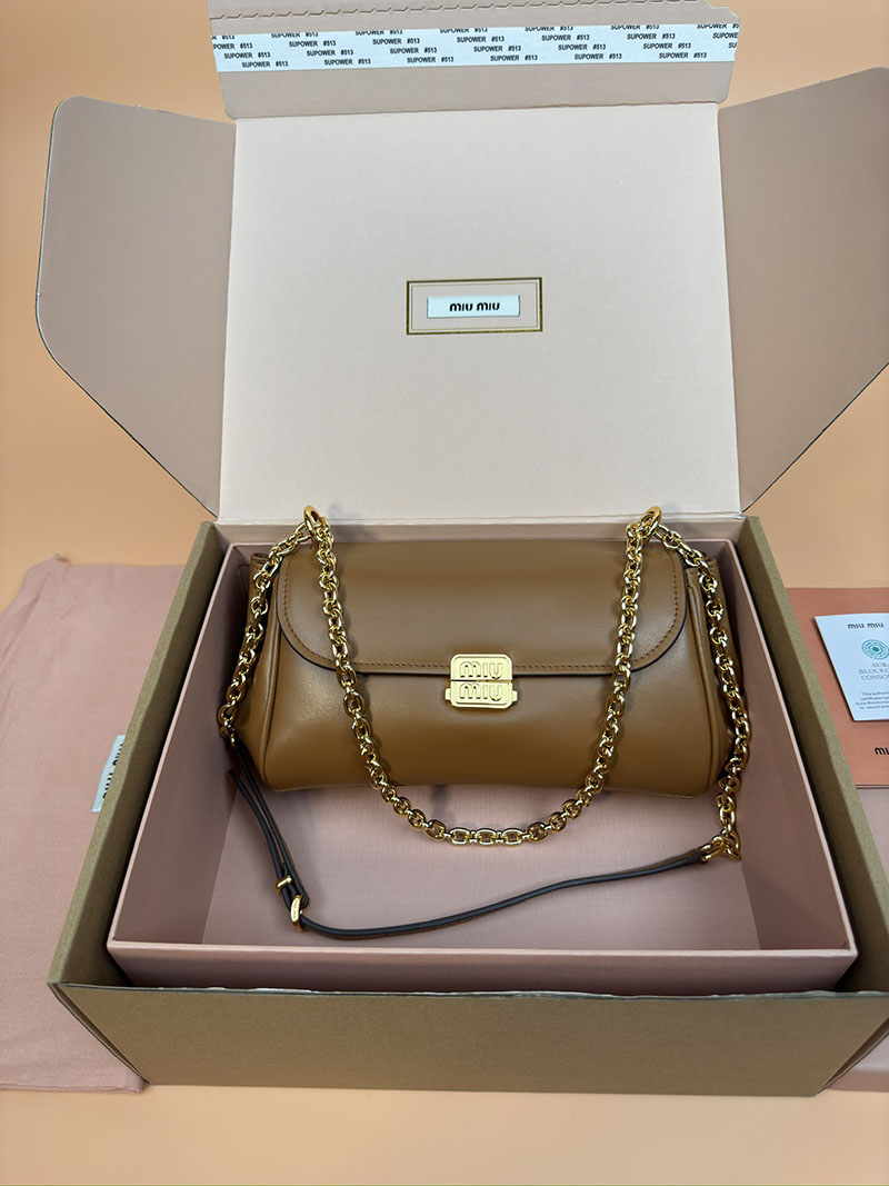MiuMiu レザー ショルダーバッグ ブラウン 5BD266_2CRM_F0316_V_OOO ゴールド金具 miumiu ショルダーバッグ アウトレット