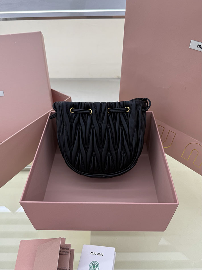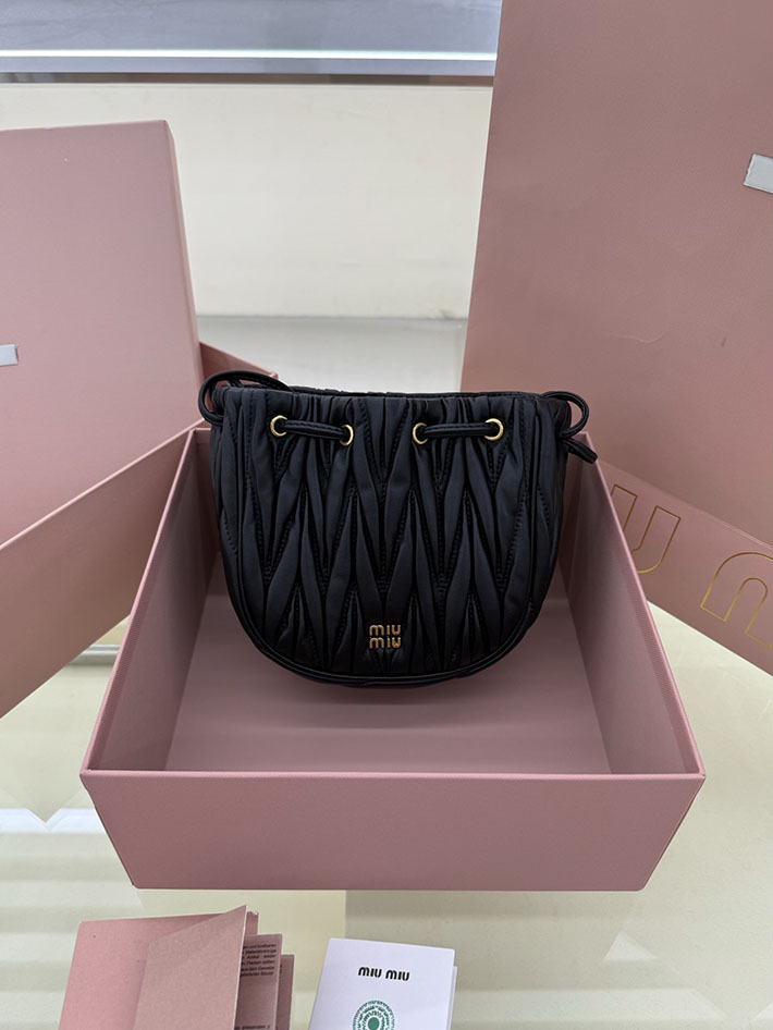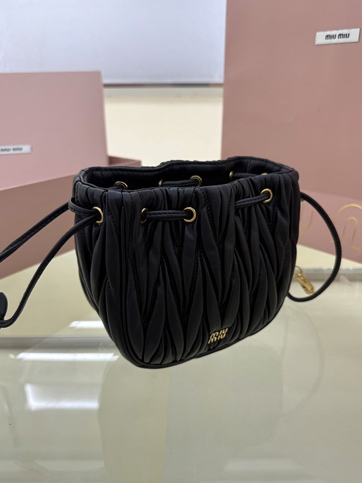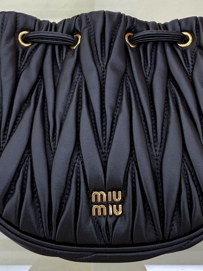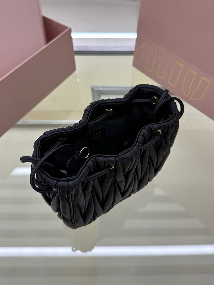 最高級MiuMiuスーパーコピー ミュウミュウ マトラッセ レザー バケット バッグ ブラック 5ND022_AFPP_F0002 ミュウミュウ バッグ アウトレット