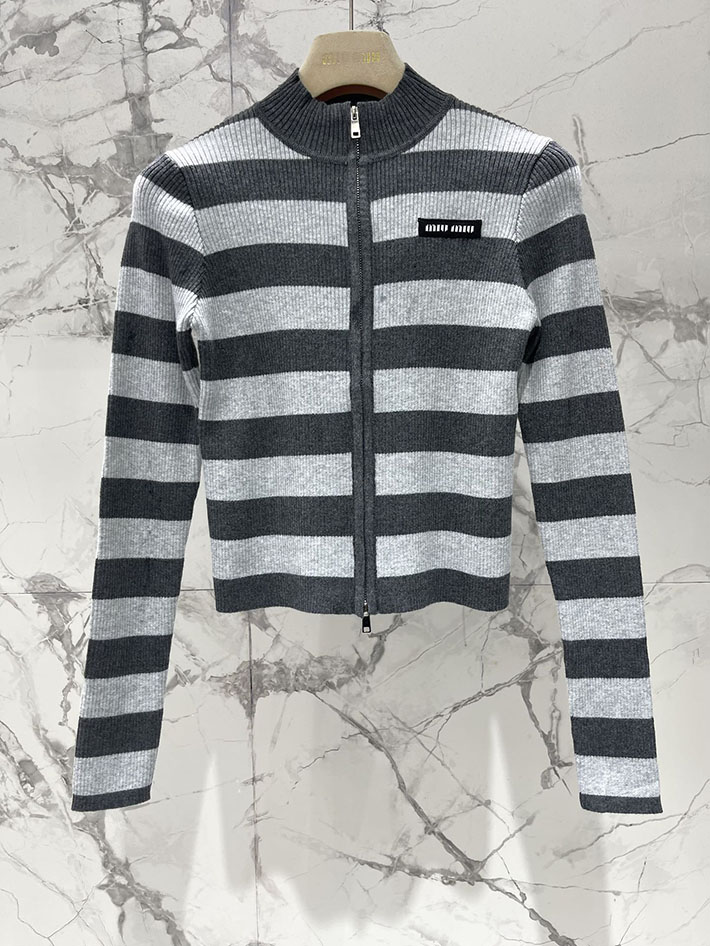 最高級MiuMiuスーパーコピー ミュウミュウ服コピー Wジップコンパクトニットカーデ トップス カーディガン 2523099 miumiu ニットカーディガン