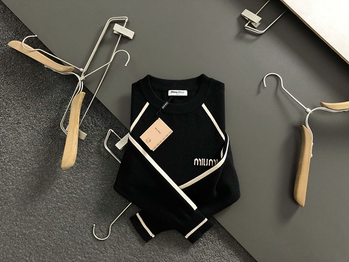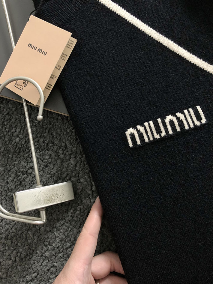 最高級MiuMiuスーパーコピー MiuMiu セーター シェリーライン クルーネック 長袖 ブラック 2524929 MiuMiu トレーナー メンズ