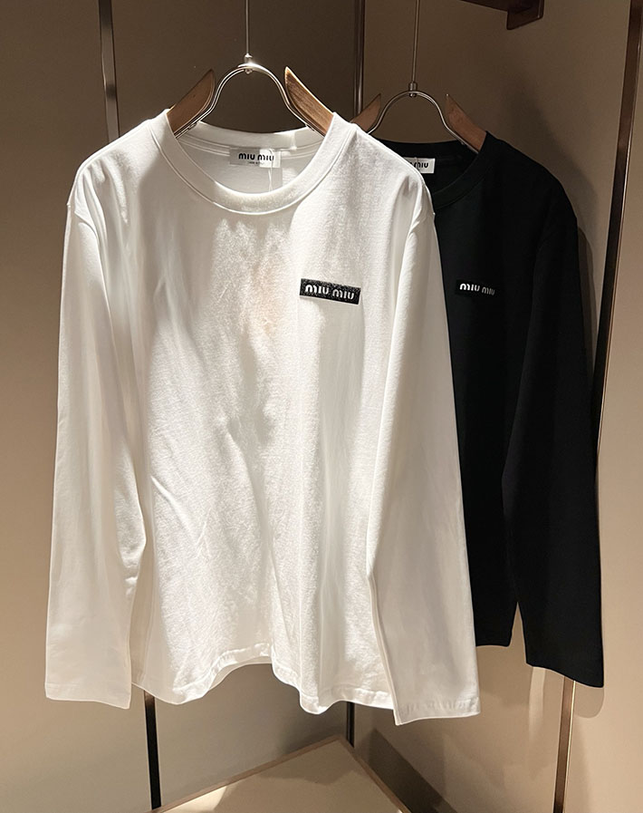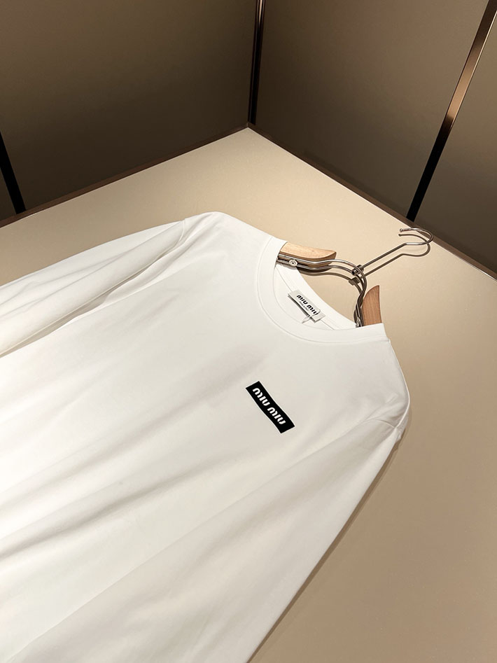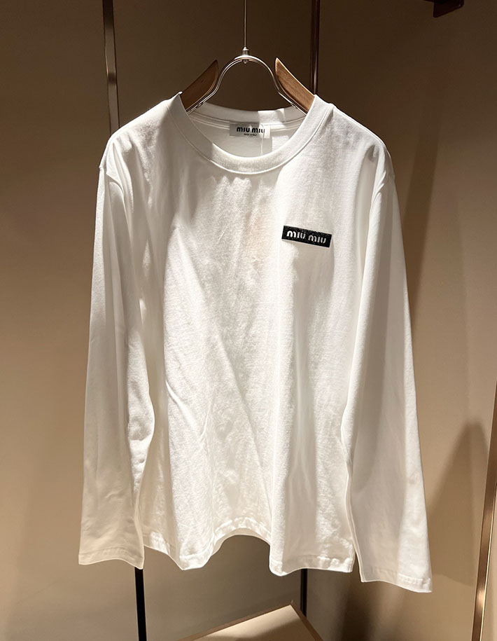 最高級MiuMiuスーパーコピー MiuMiu 長袖 ジャージー Tシャツ トレーナー ホワイト 2524972 MiuMiu トレーナー メンズ