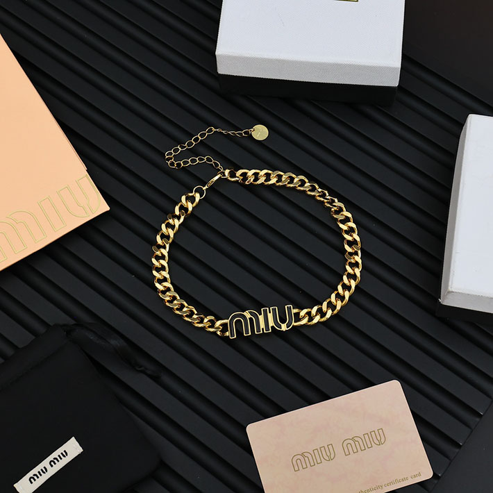最高級MiuMiuスーパーコピー ミュウミュウネックレスコピー チョーカー ロゴ メタル チェーン リンク ネックレス 2523357 レディース ミュウミュウ ネックレス