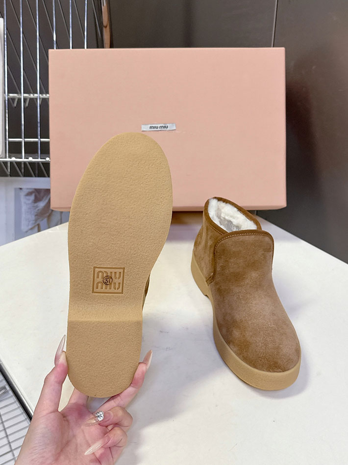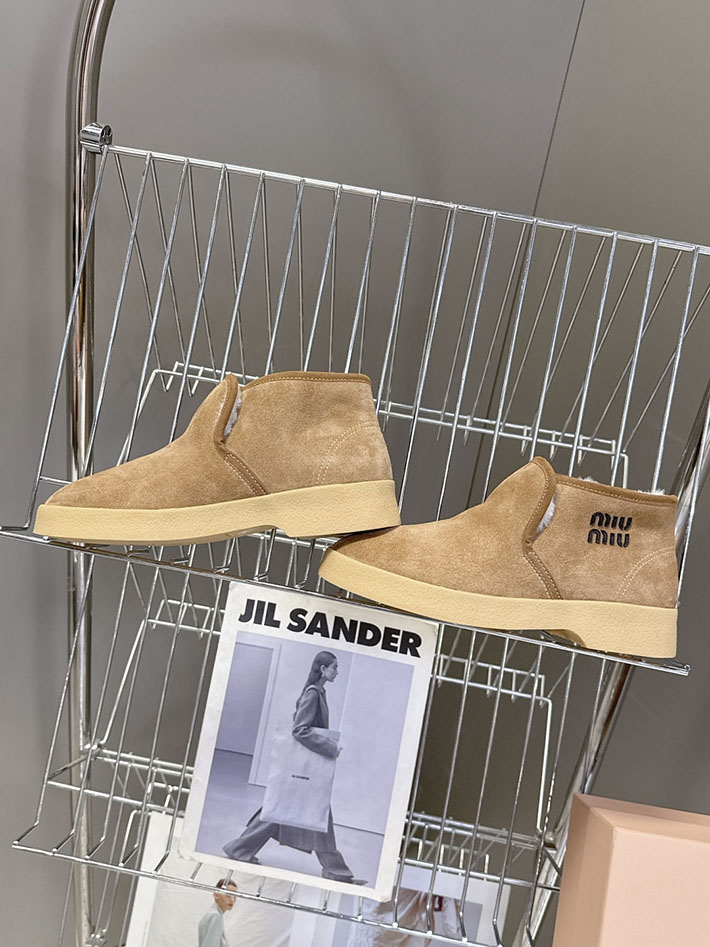 最高級MiuMiuスーパーコピー ミュウミュウ ロゴ シアリング スエード アンクルブーツ 2627130 Miumiu 靴 レディース