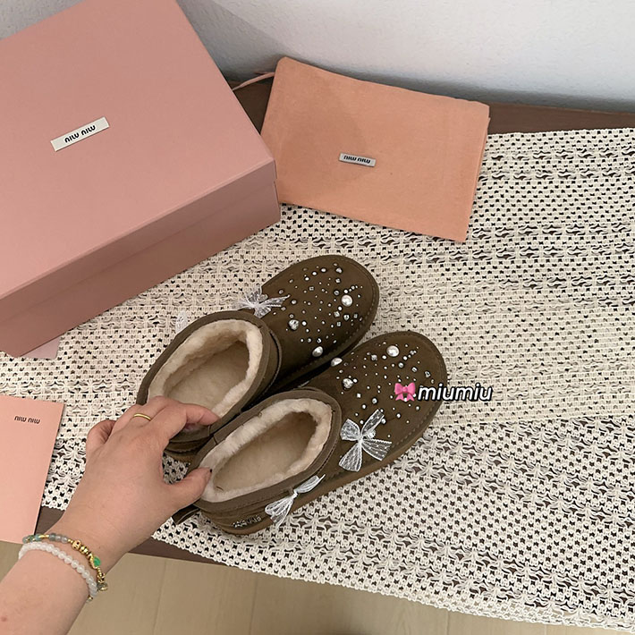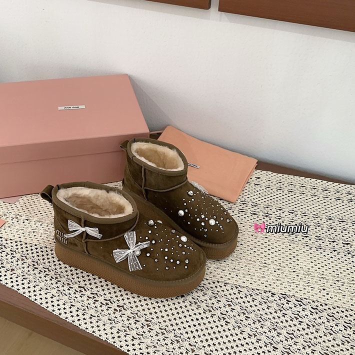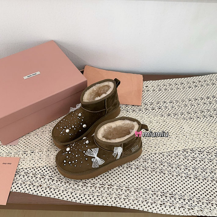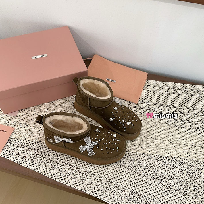 最高級MiuMiuスーパーコピー ミュウミュウ スエードとシアリング ブーティー 2627346 ミュウミュウ ブーツ アウトレット