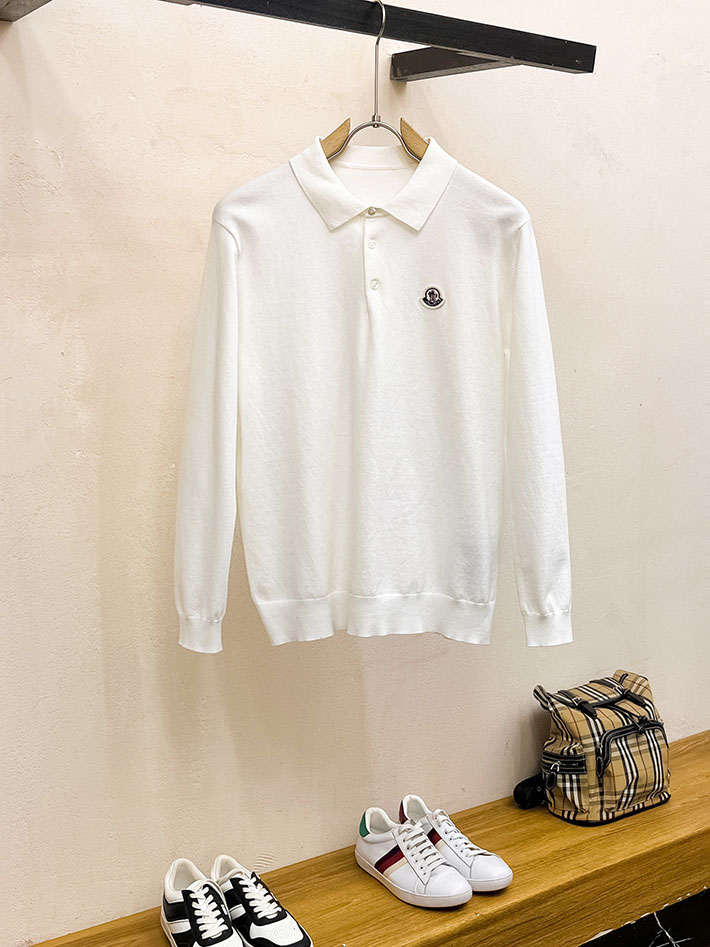 最高級モンクレールスーパーコピー MONCLER ワンポイント ポロシャツ 長袖 ホワイト 2524881 モンクレール ポロシャツ メンズ