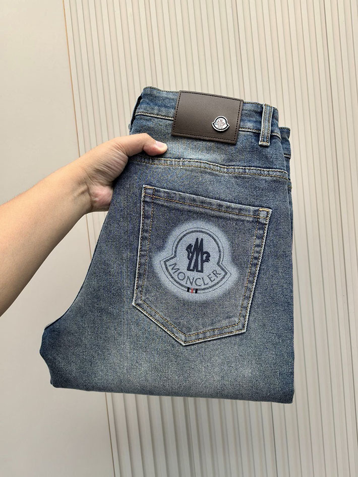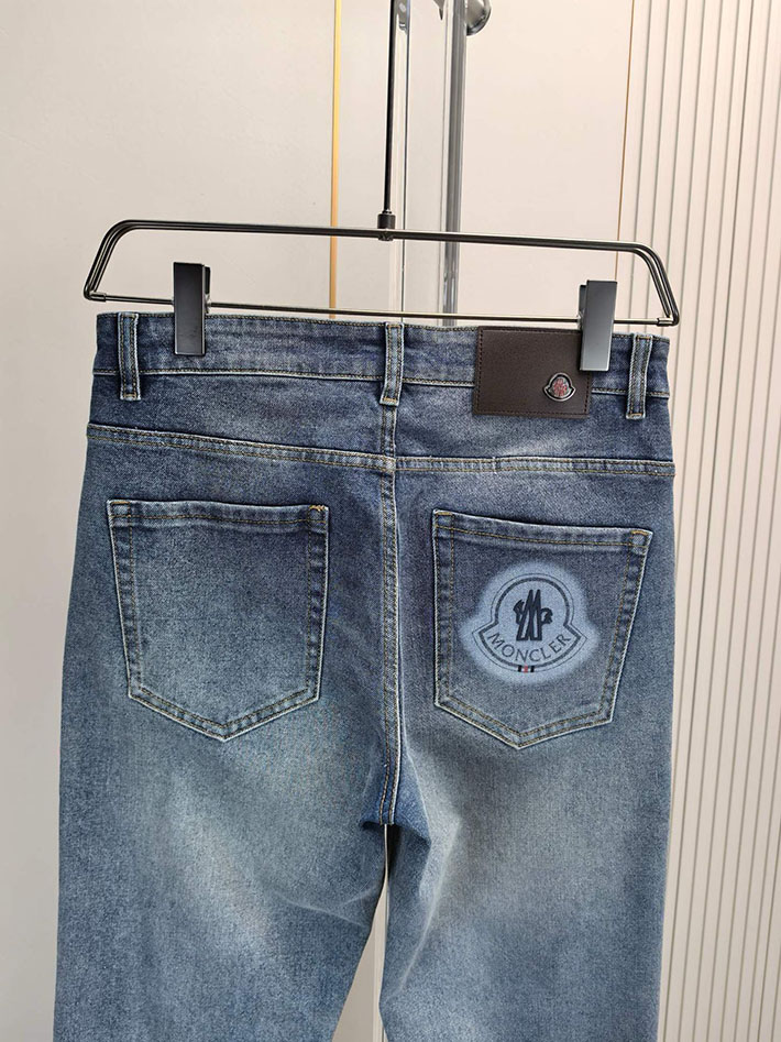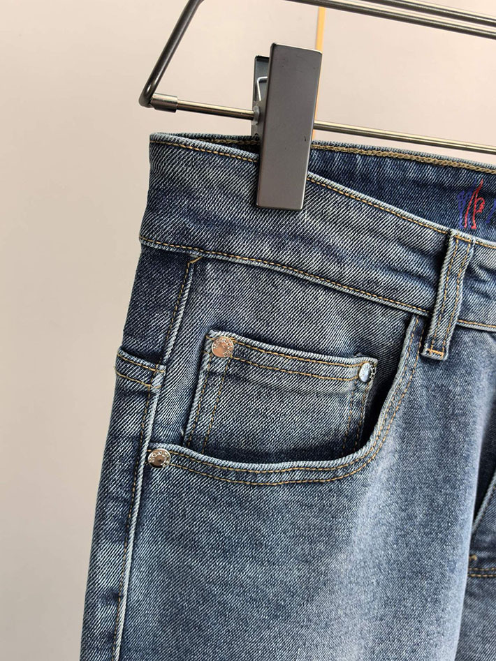 最高級モンクレールスーパーコピー フラグメント ロゴ刺繍 テーパードデニムパンツ ジーンズ インディゴ 2525338 モンクレール デニムパンツ