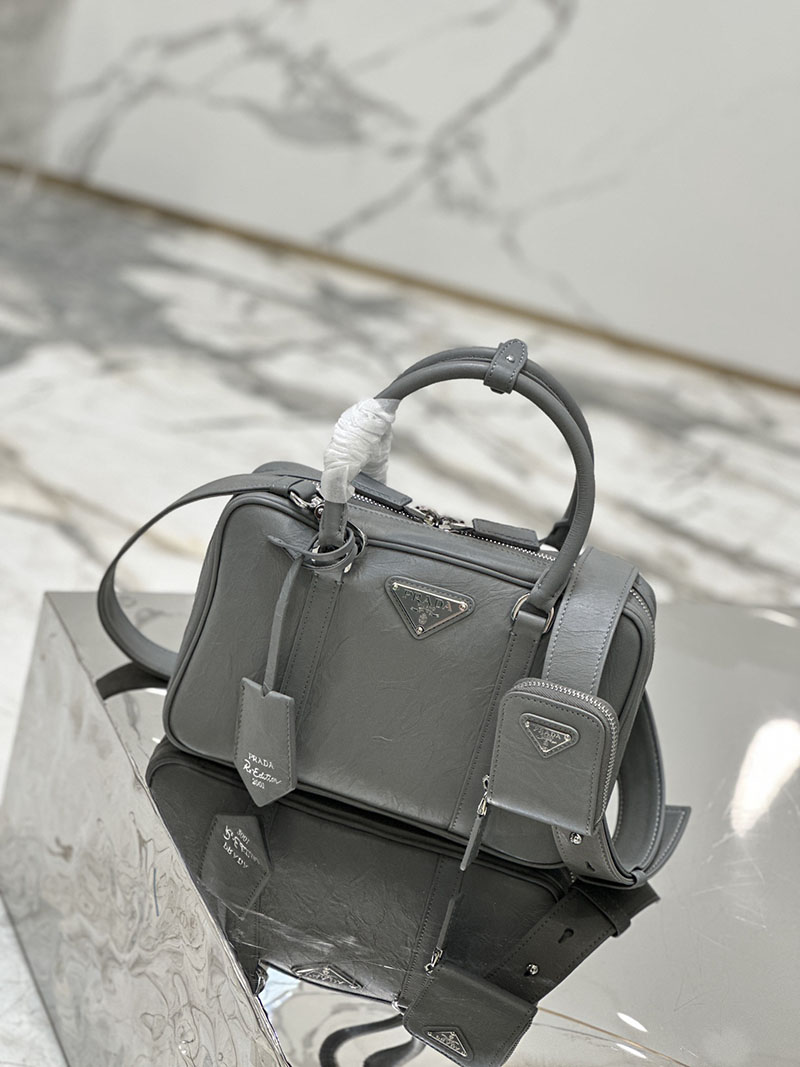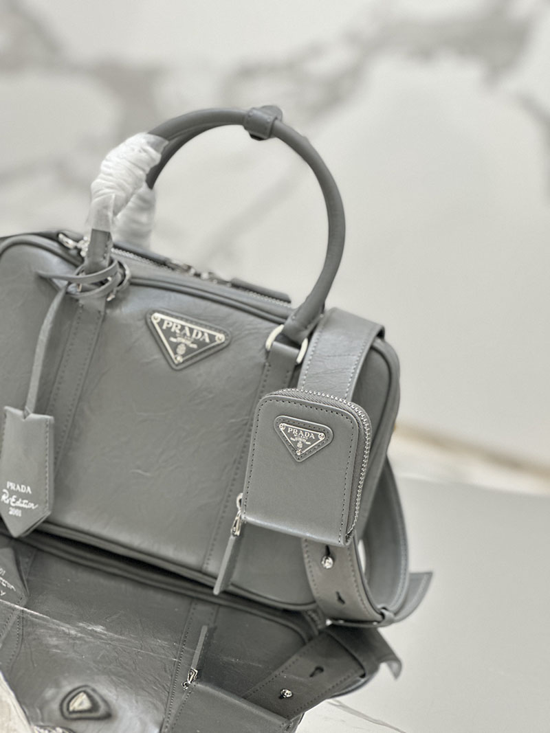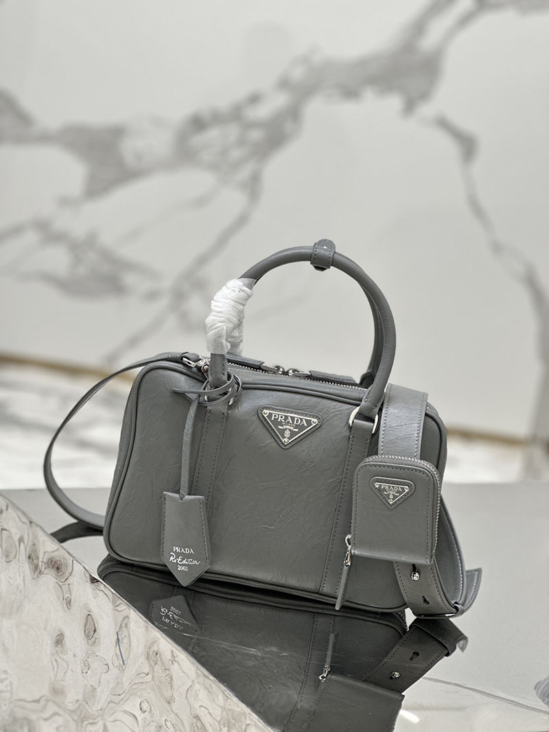 プラダ アウトレット PRADA 新作ナッパアンティークトップハンドルバッグ 1BB092_UVL_F0480_V_T2O グレー H品 プラダ アウトレット バッグ 新作