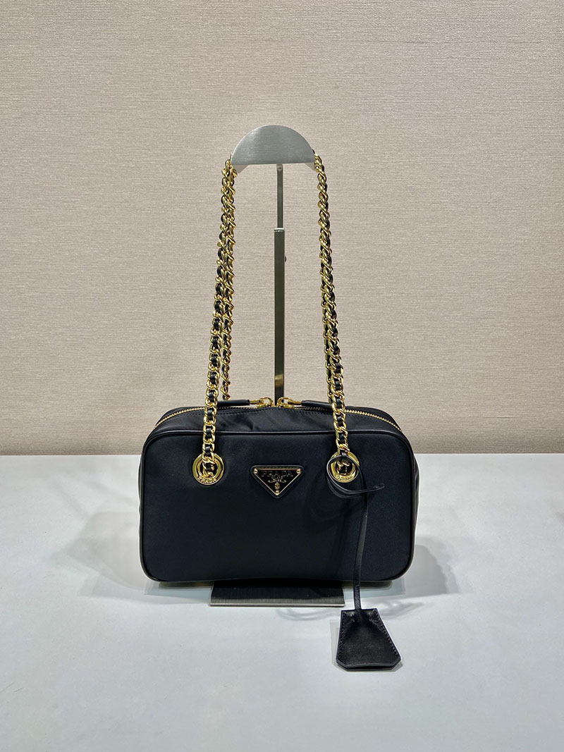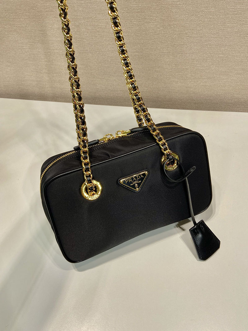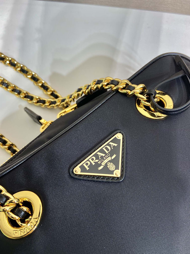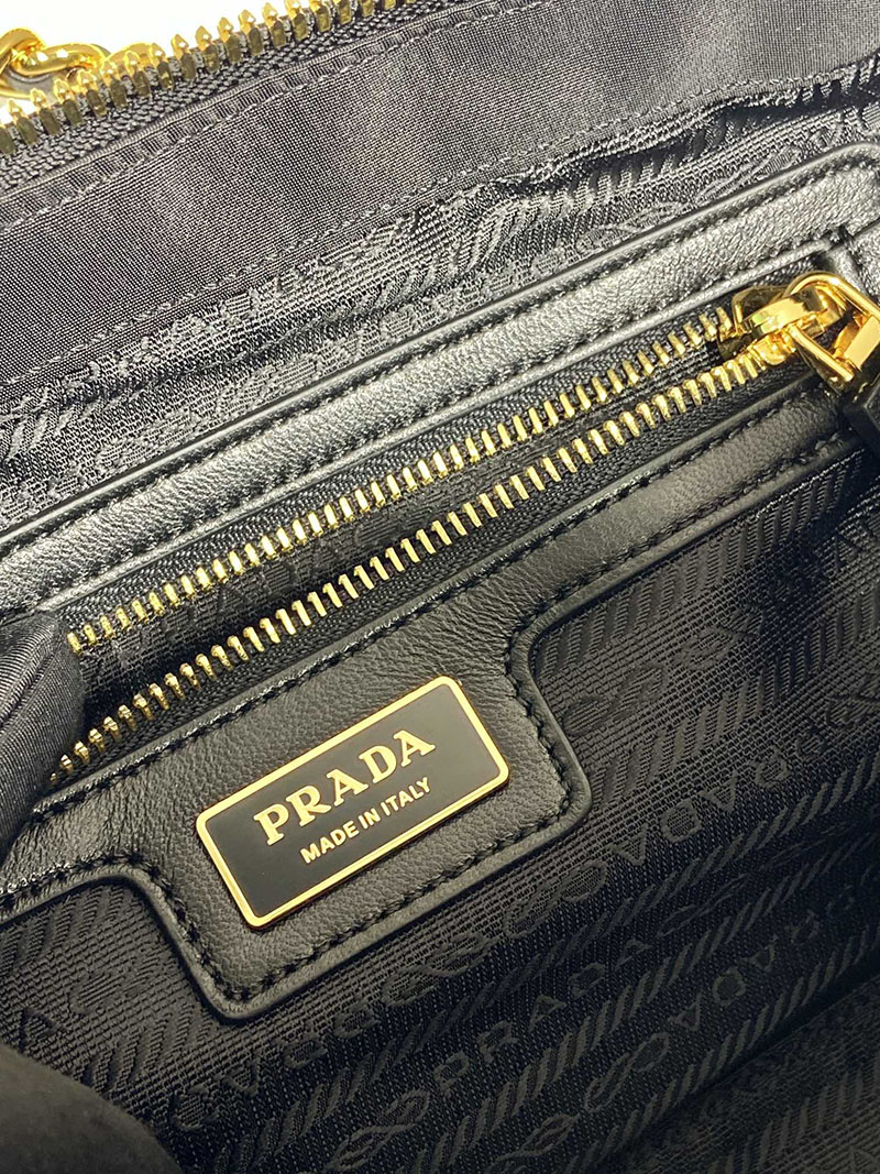プラダ アウトレット PRADA テスート+サフィアーノ ナイロン ハンドバッグ 1BB121_RUKW_F0002 ブラック H品 プラダ ナイロン バッグ 値段