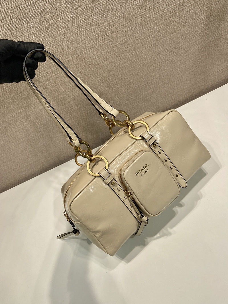 プラダ アウトレット PRADA ダングル ミディアム レザー トップハンドルバッグ 1BB138_2CYR_F0236_V_OOO ベージュ H品 プラダレディースバッグ