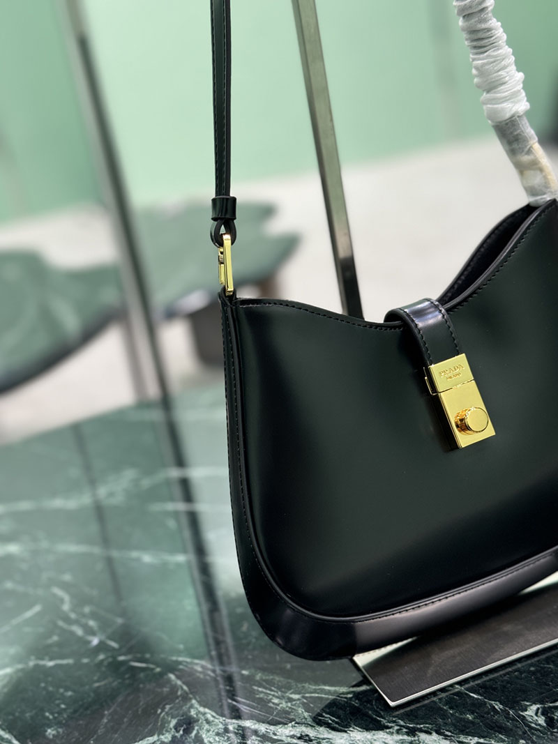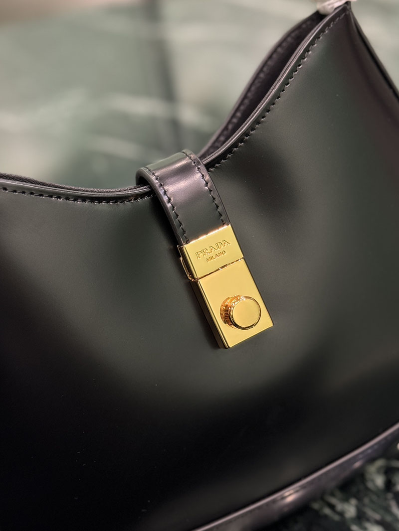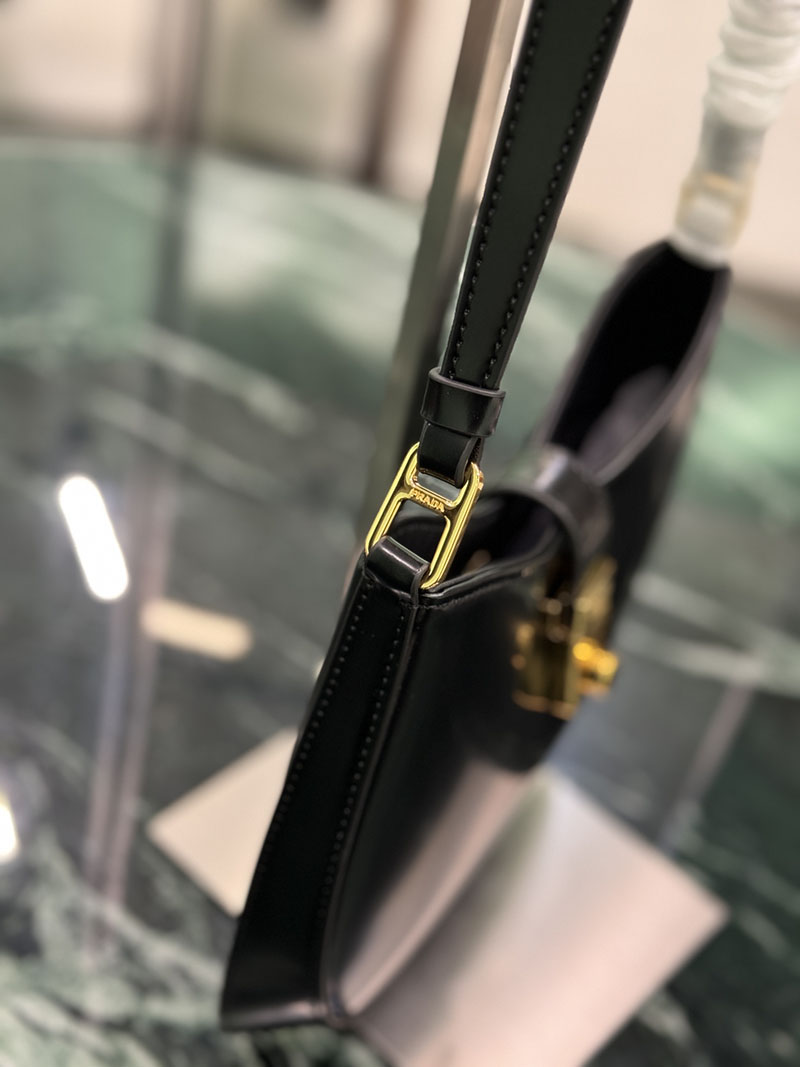 プラダ アウトレット PRADA クレオ クラスプ付 ブラッシュドレザー ショルダーバッグ 1BC169_ZO6_F0632_V_MEO ブラック H品 プラダ ショルダーバッグ 人気