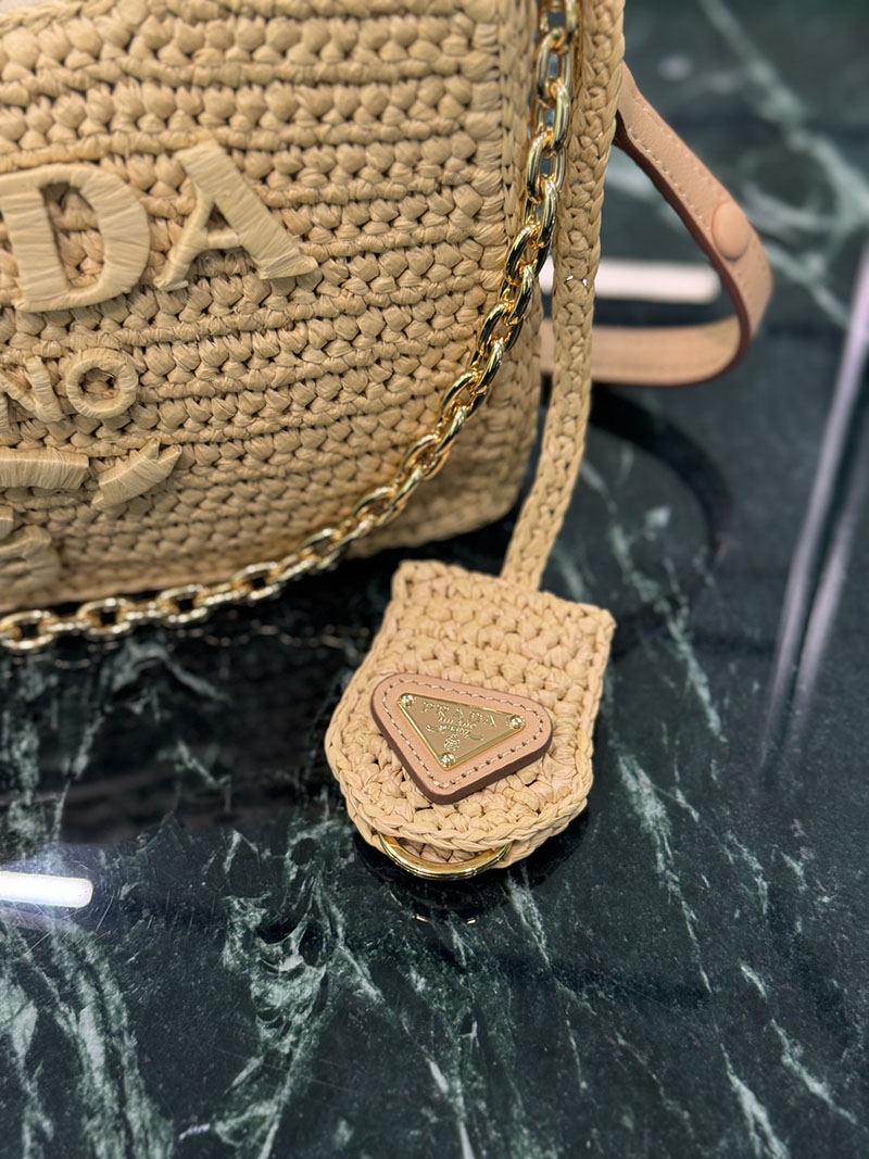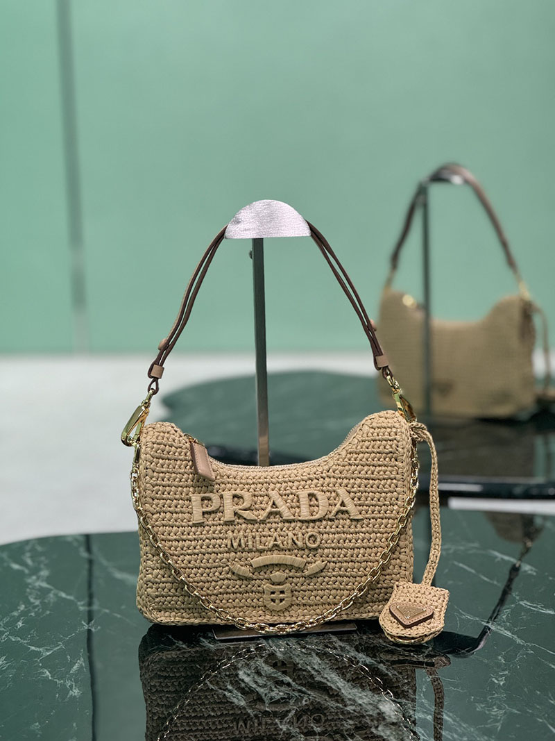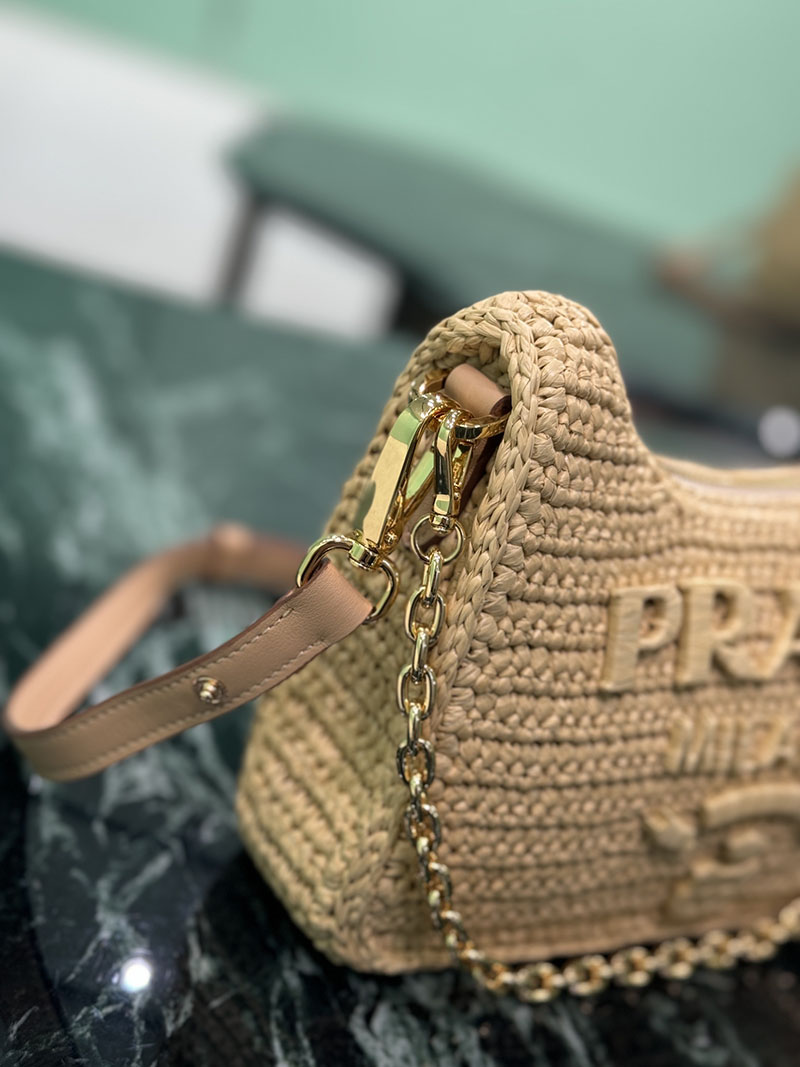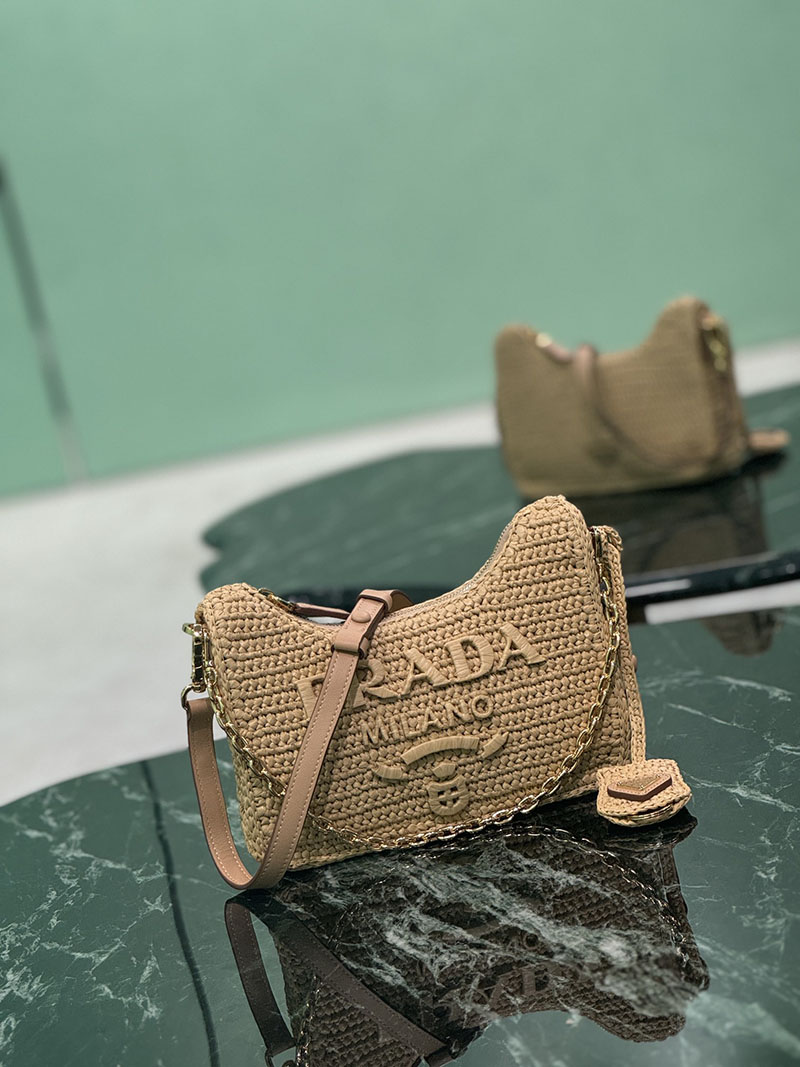 プラダ アウトレット PRADA Re-Edition クロシェ ミニバッグ 1BC204_2M2T_F0018_V_JUO ナチュラル H品 プラダ ミニバッグ チェーン